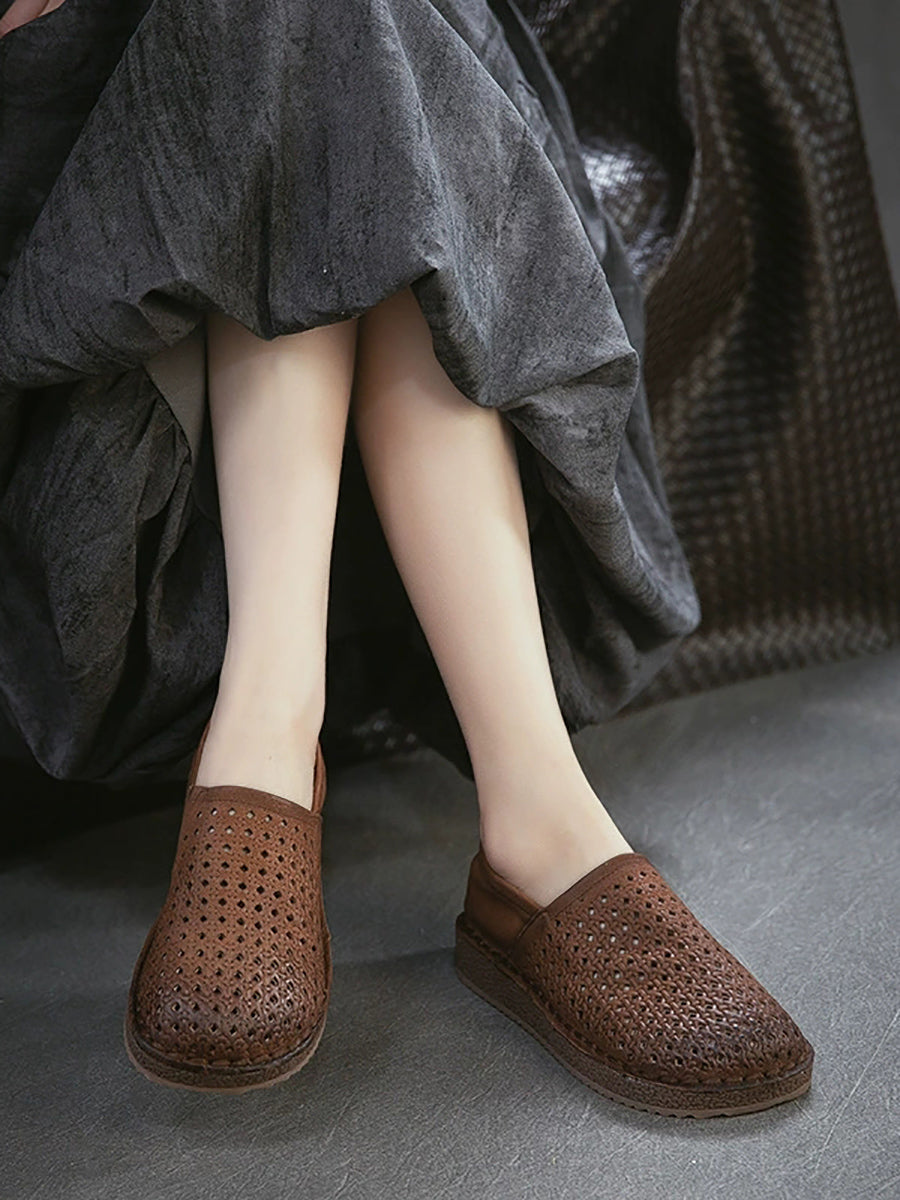 Dámské letní měkké kožené duté ploché boty