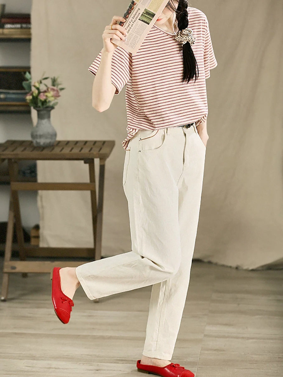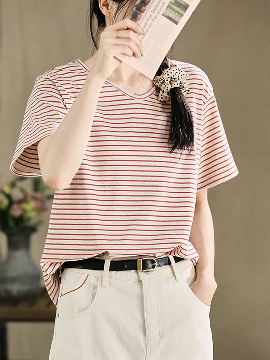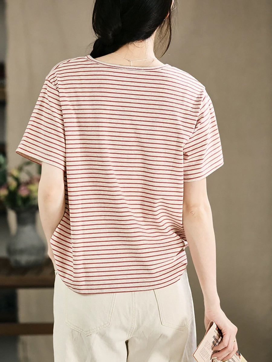 Dámské letní pruhované tričko s výstřihem do O-neck, 100% bavlna