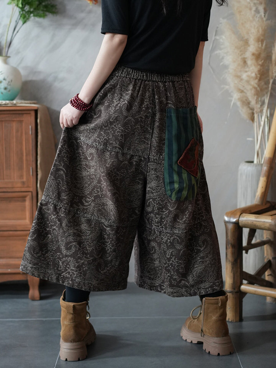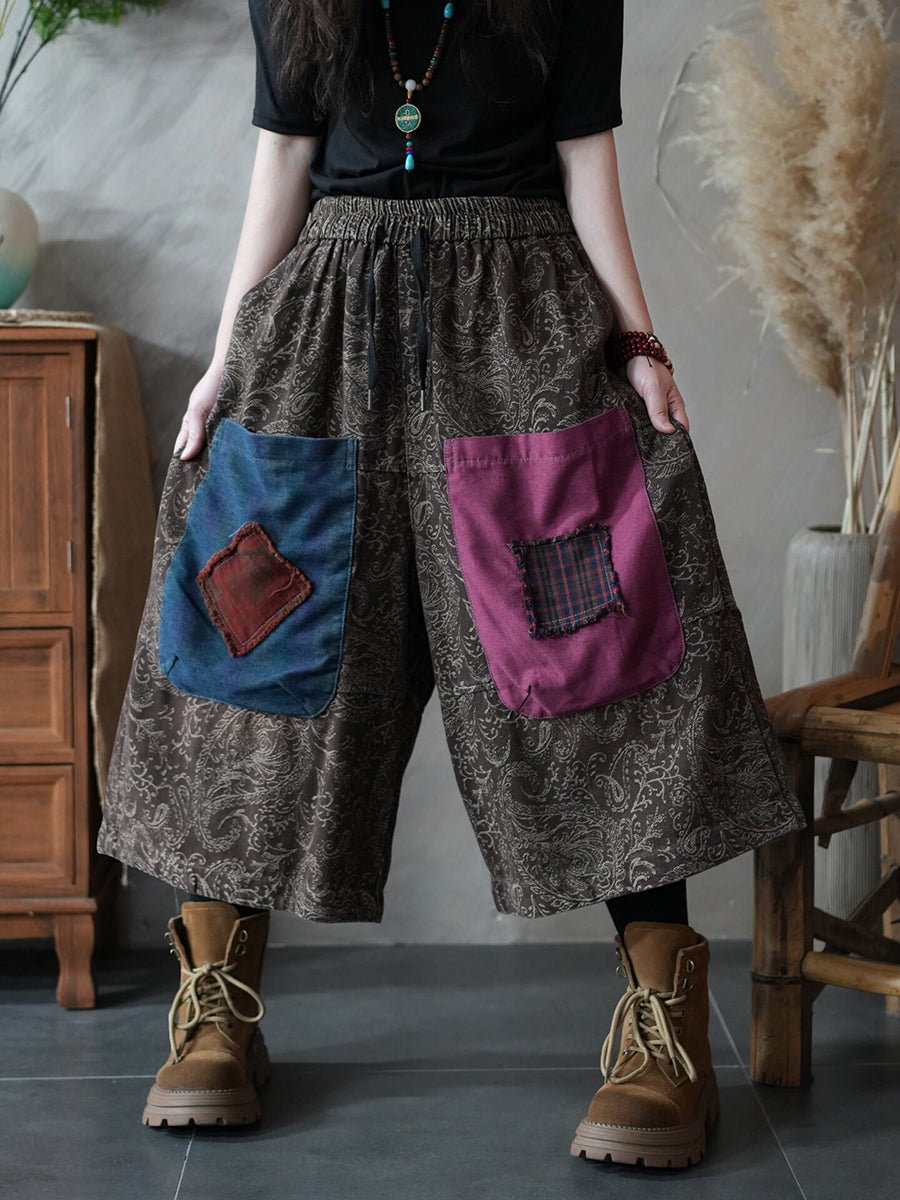 Dámské letní vintage džínové patchworkové kalhoty s širokými nohavicemi