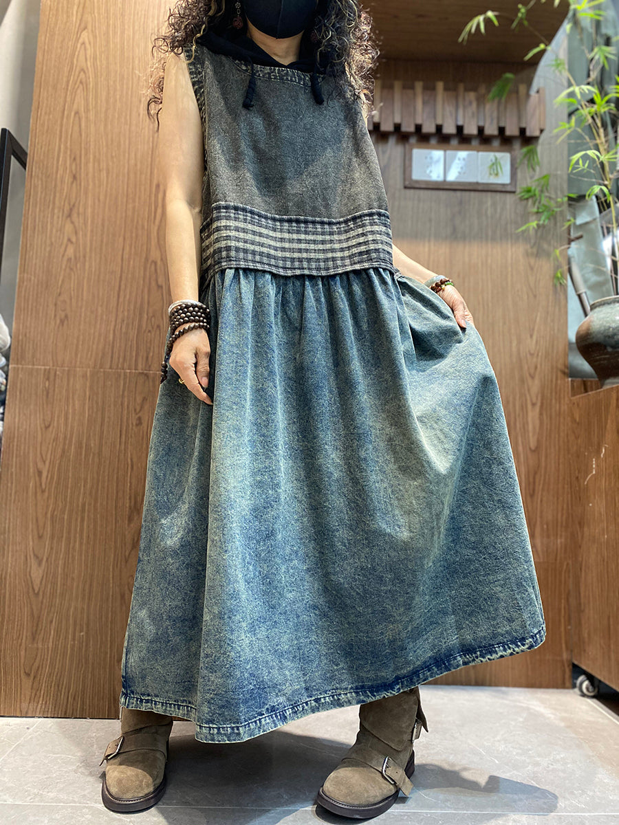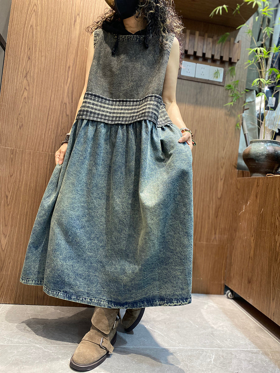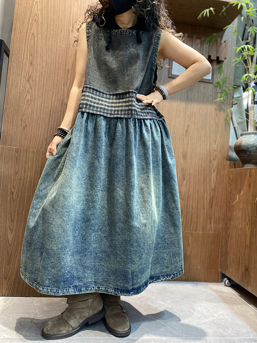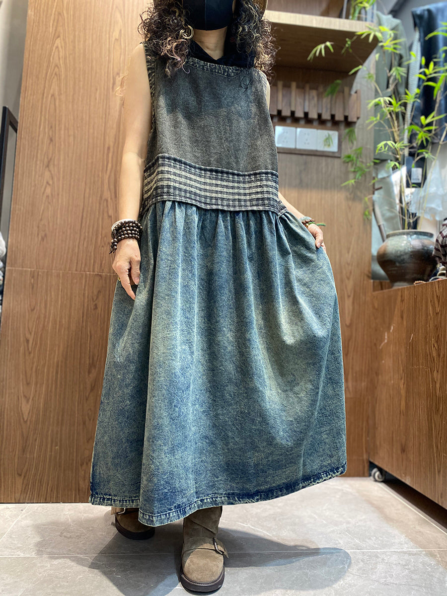 Dámské letní vintage džínové šaty s výstřihem do O-neck