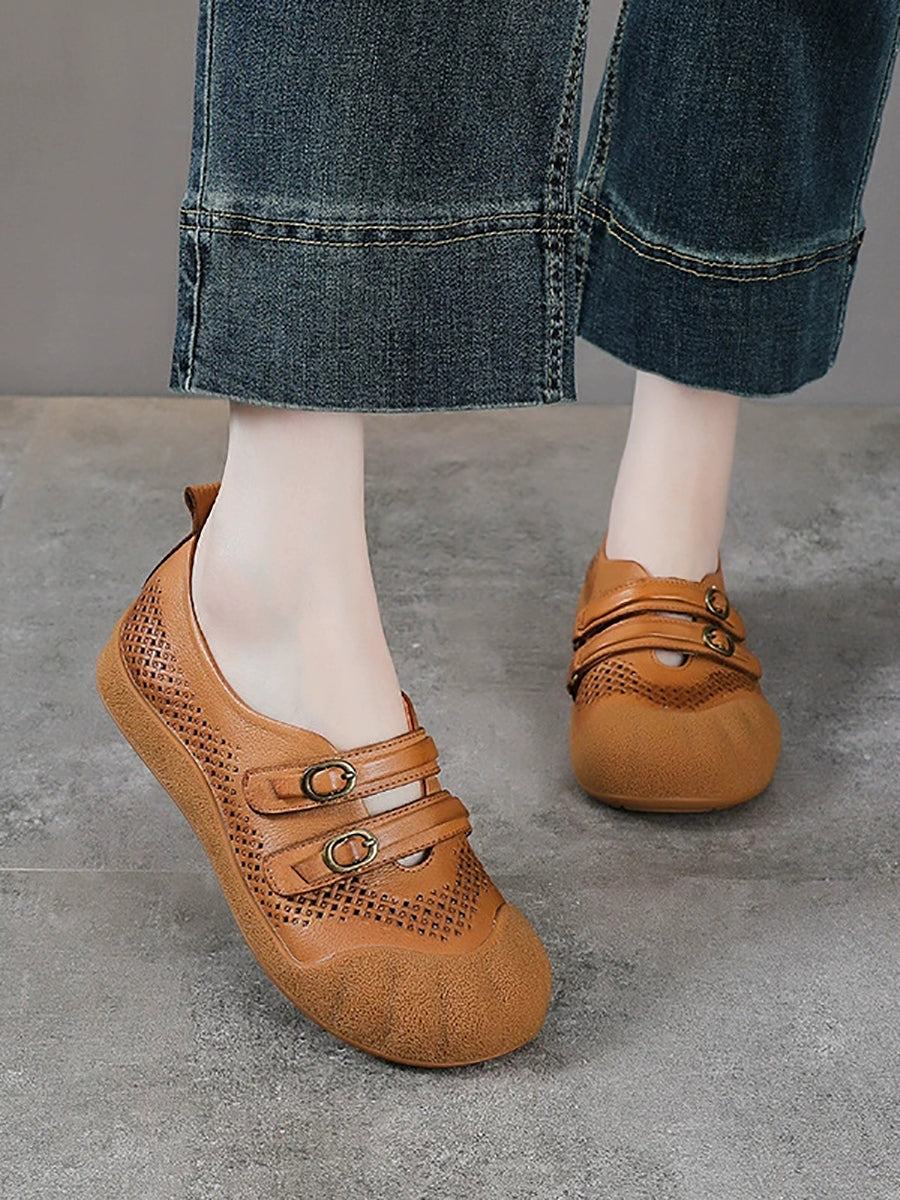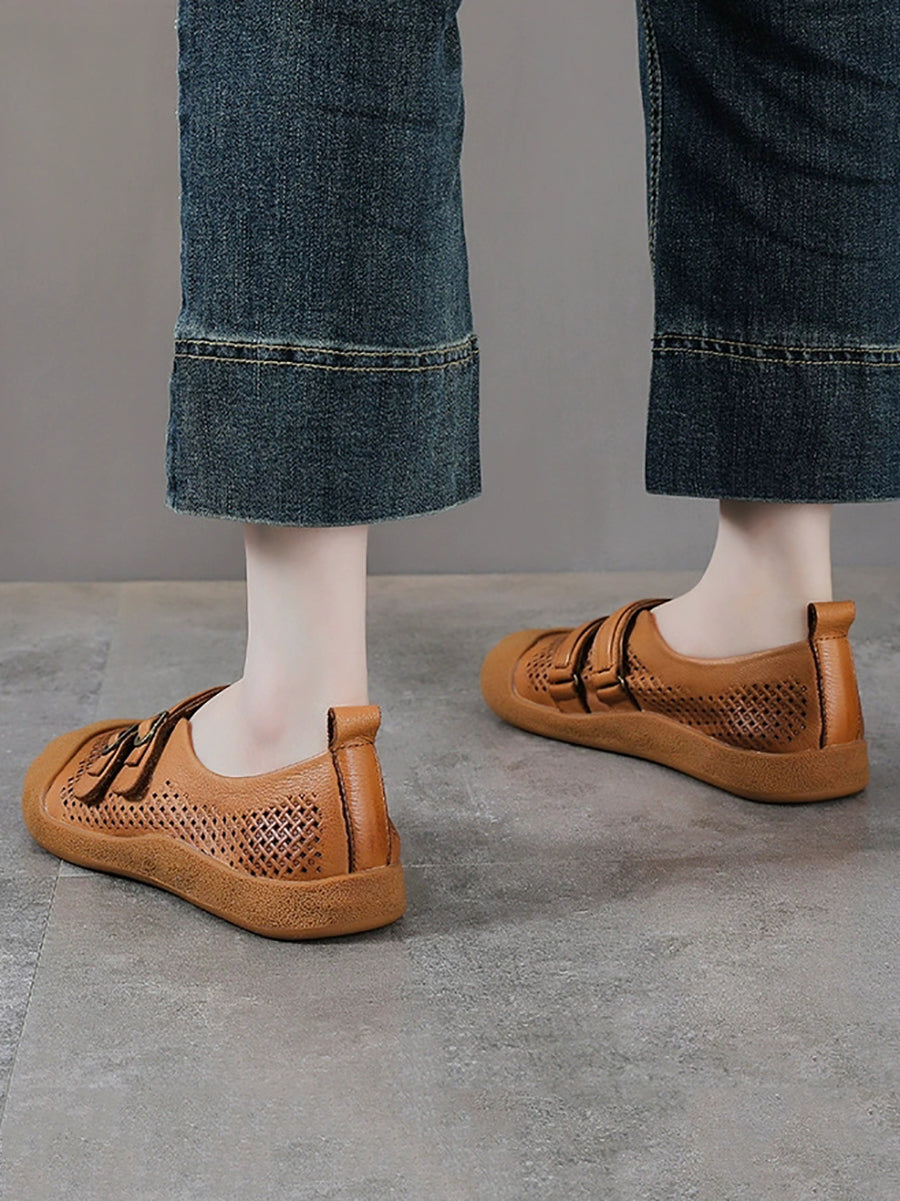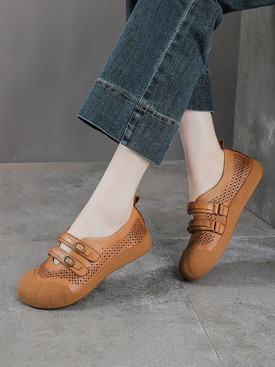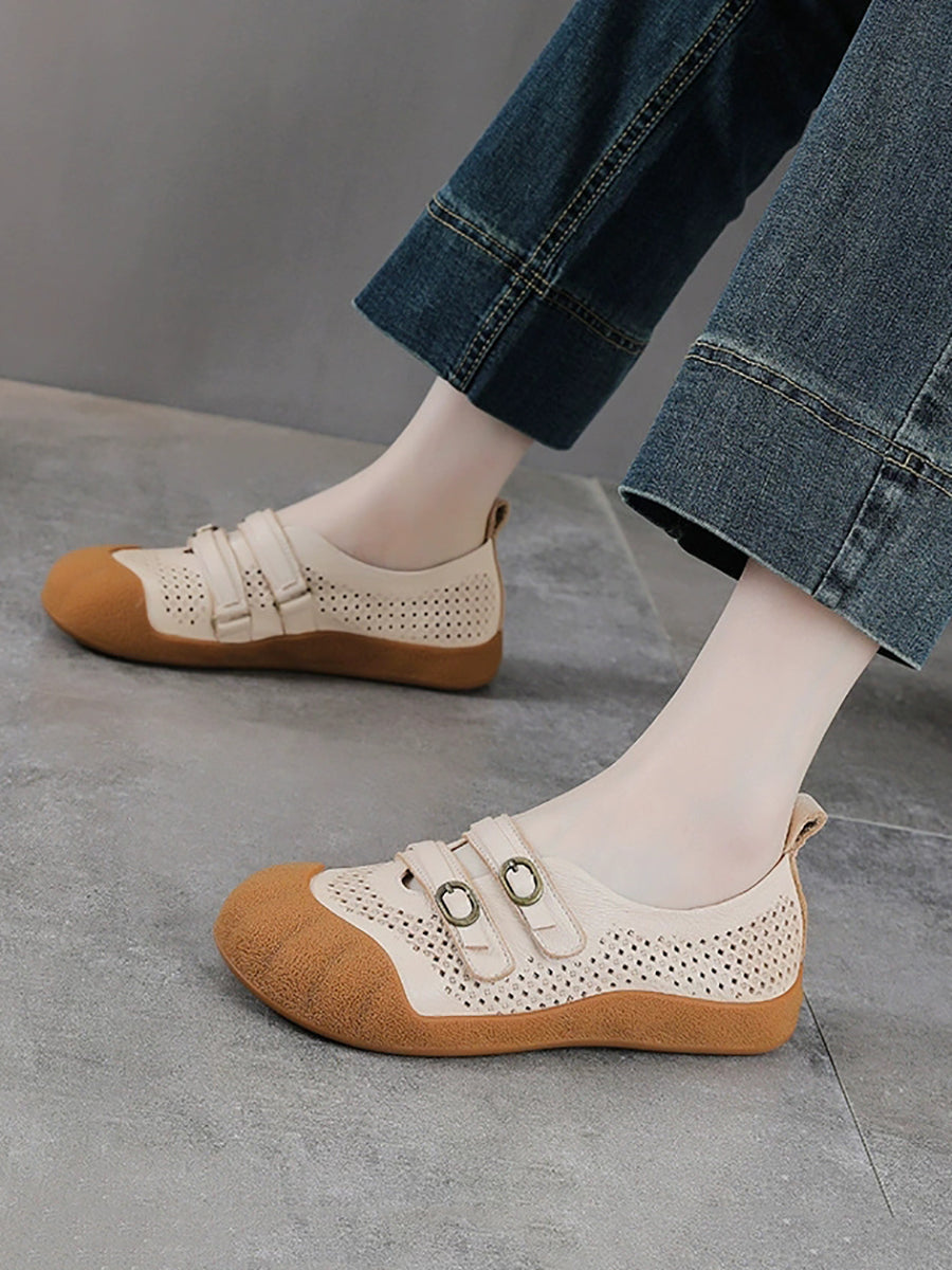 Dámské letní vintage kožené ploché boty s otvorem