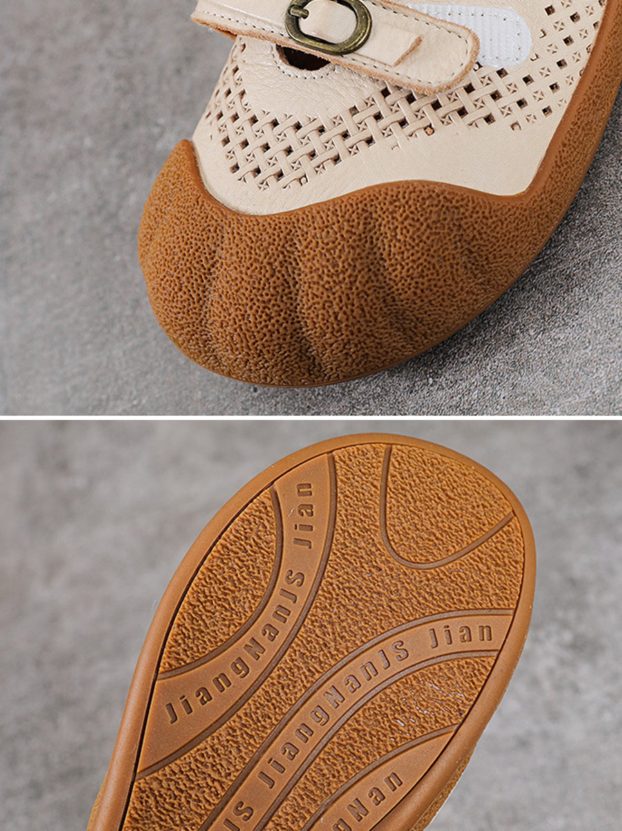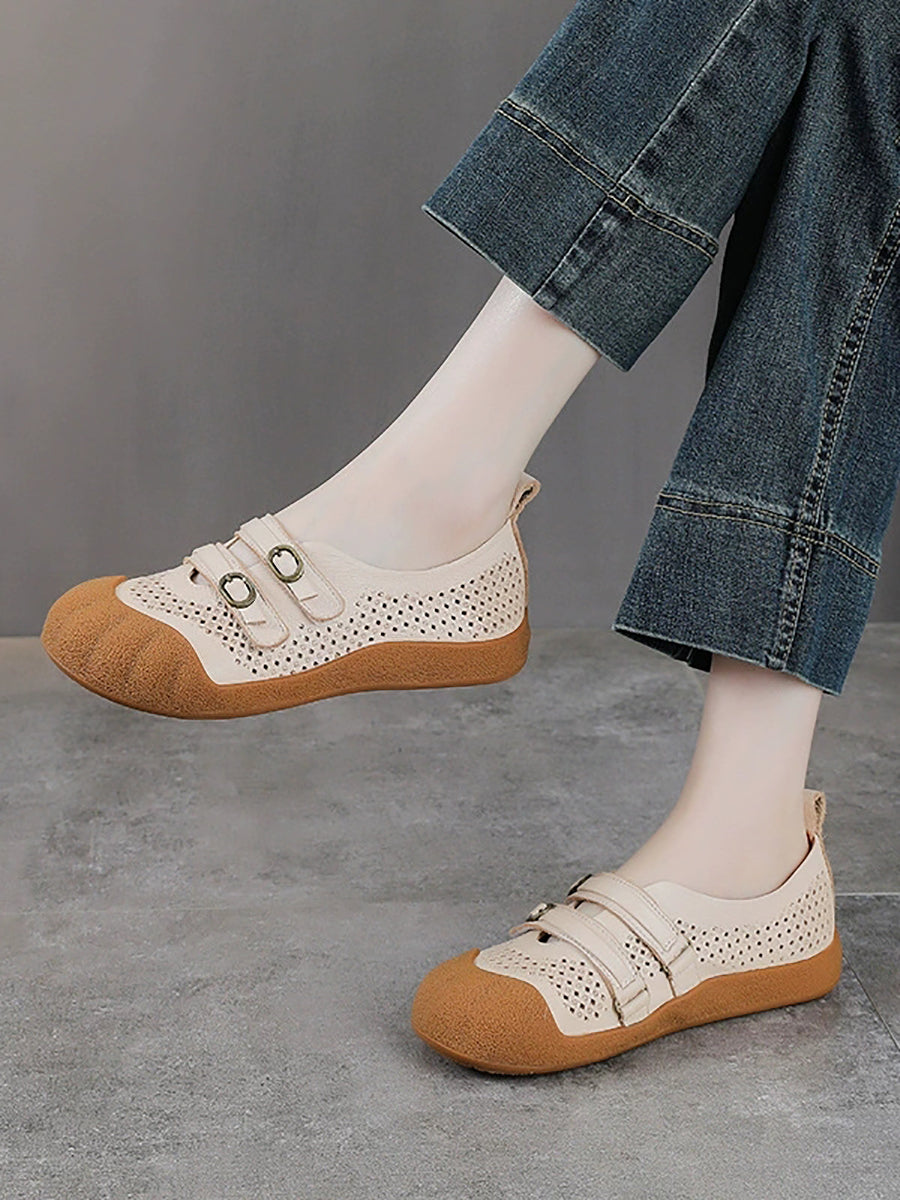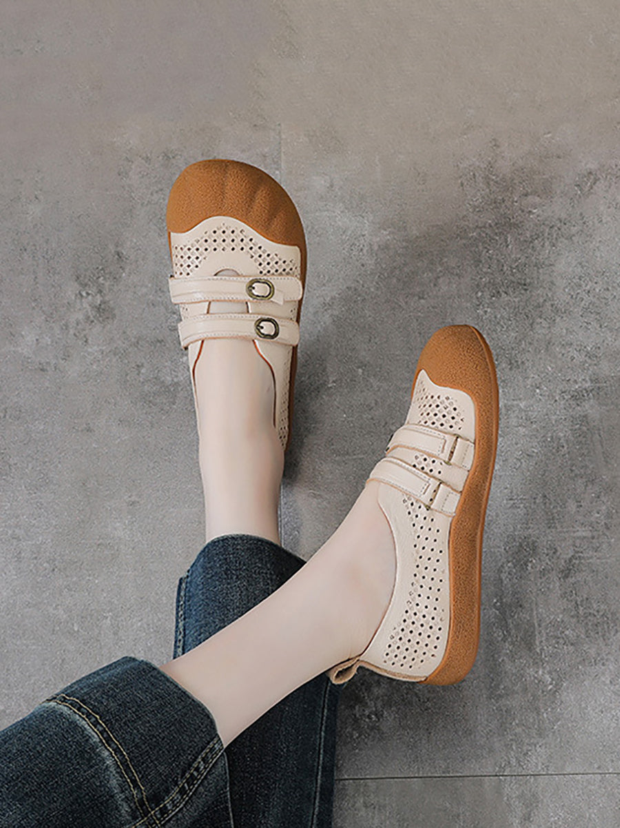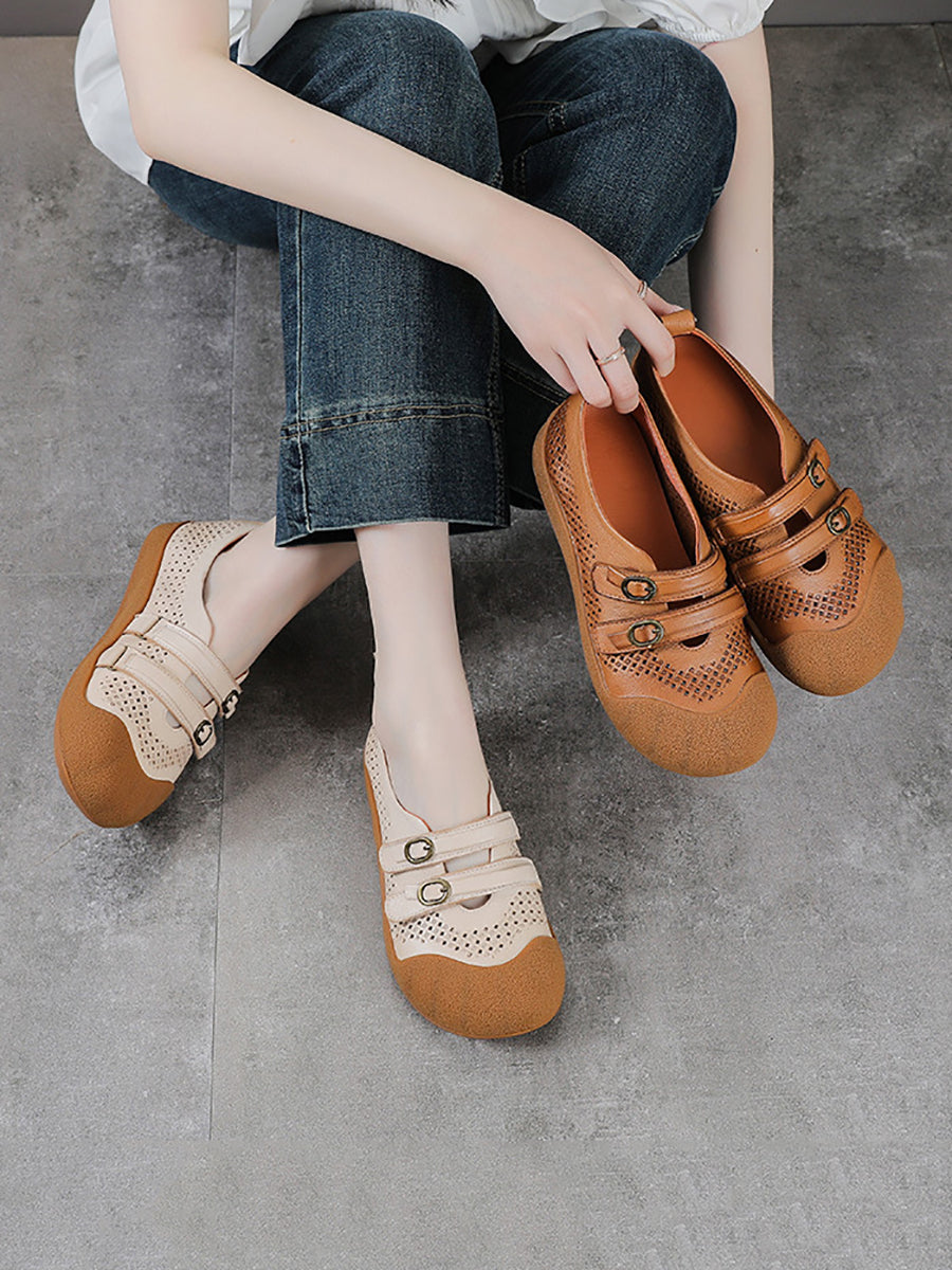 Dámské letní vintage kožené ploché boty s otvorem