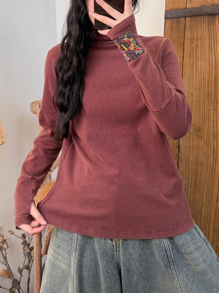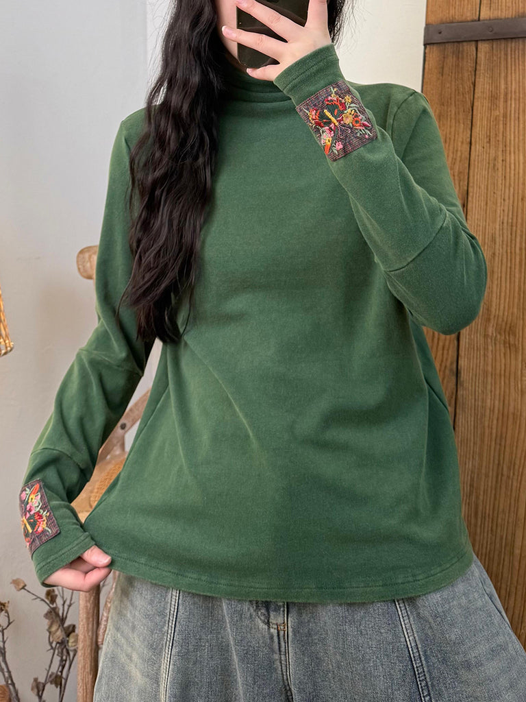 Dámská vintage podzimní výšivka Patch rolák bavlněná halenka