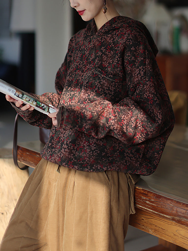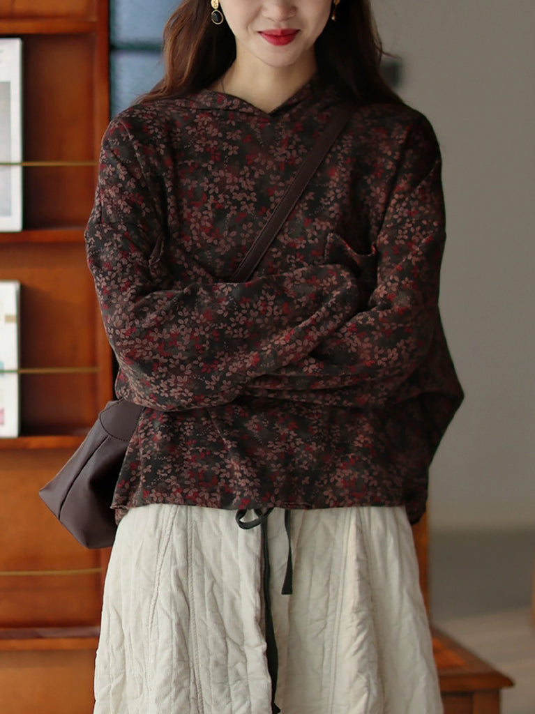 Dámská vintage podzimní květinová mikina s fleecovou podšívkou
