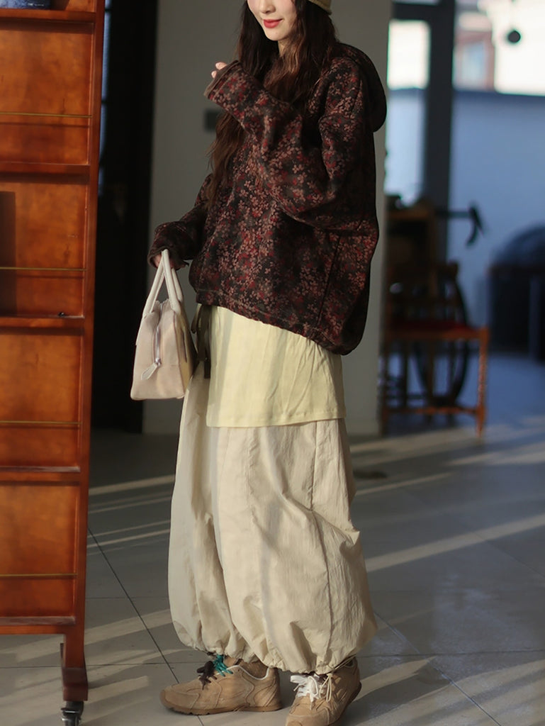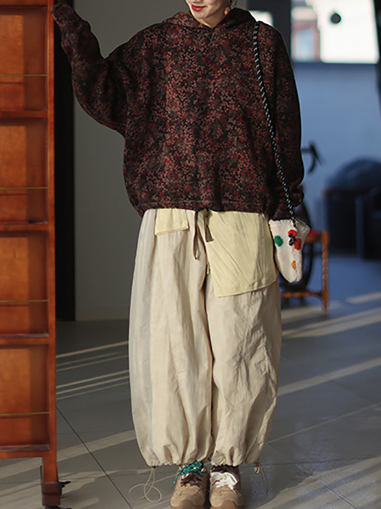 Tato mikina s kapucí je vyrobena z bavlny s květinovým vzorem a kapucí na límci. Je navržena s plnými raglánovými rukávy v retro stylu a je ideální na podzimní a zimní nošení. Flísová podšívka zajišťuje větší teplo a pohodlí v chladnějších ročních obdobích.