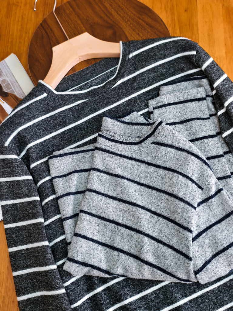 Dámská vintage podzimní pruhovaná halenka s výstřihem do O-neck