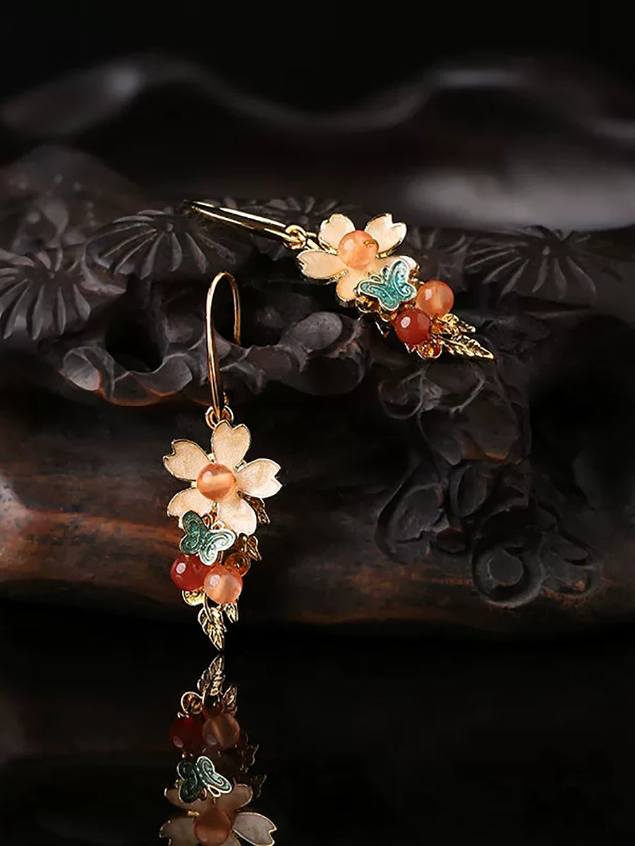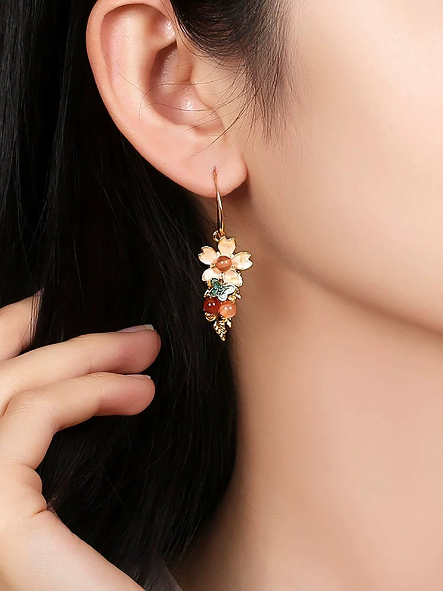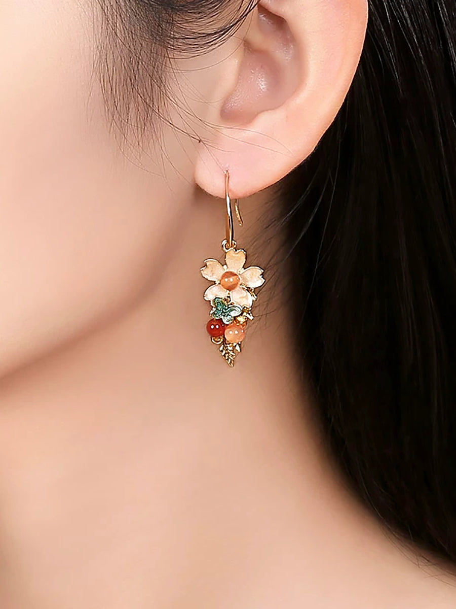 Dámské vintage kloisonne květinové nefritové náušnice