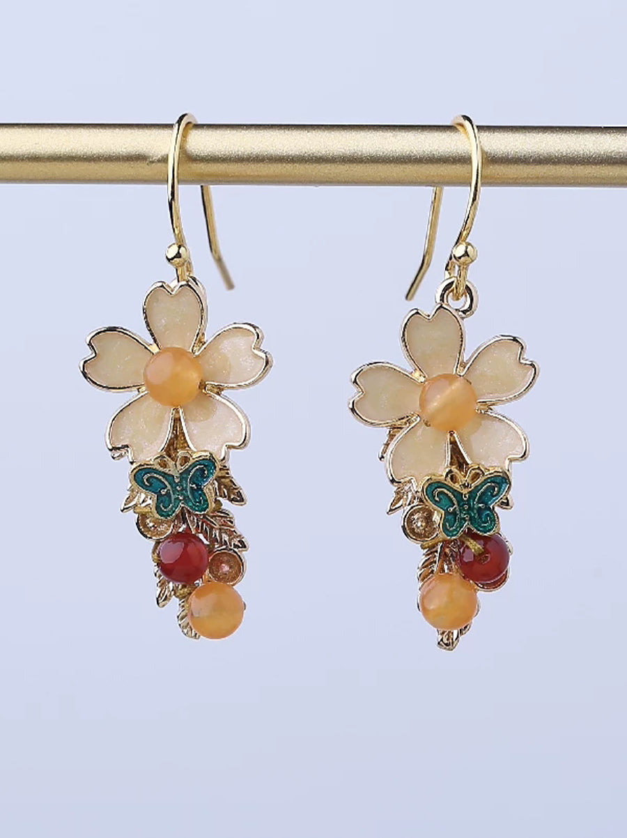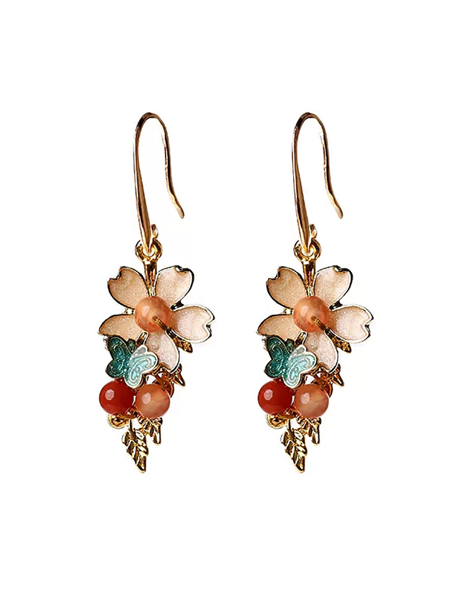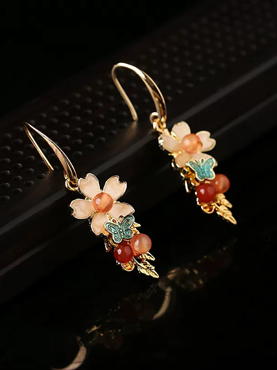 Dámské vintage kloisonne květinové nefritové náušnice