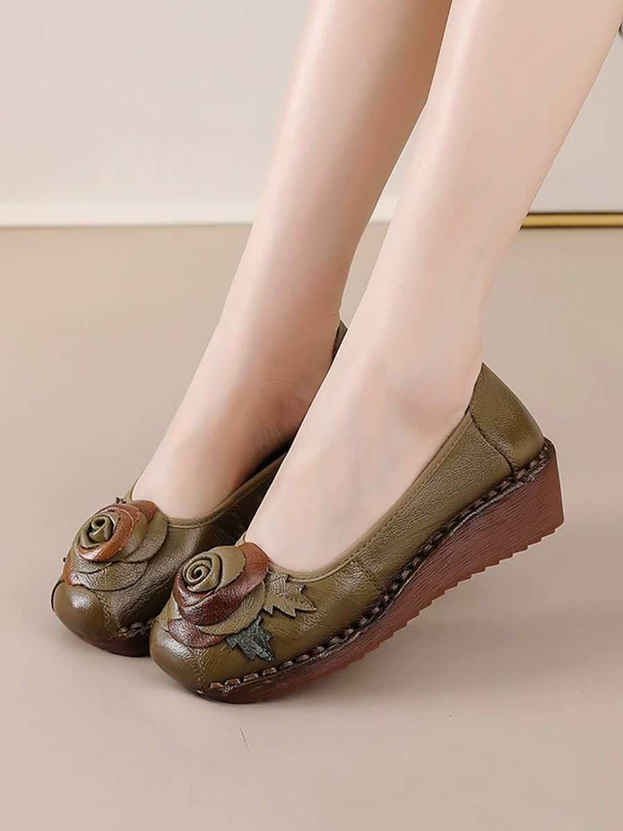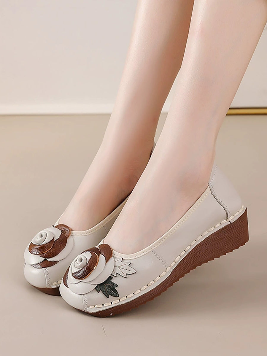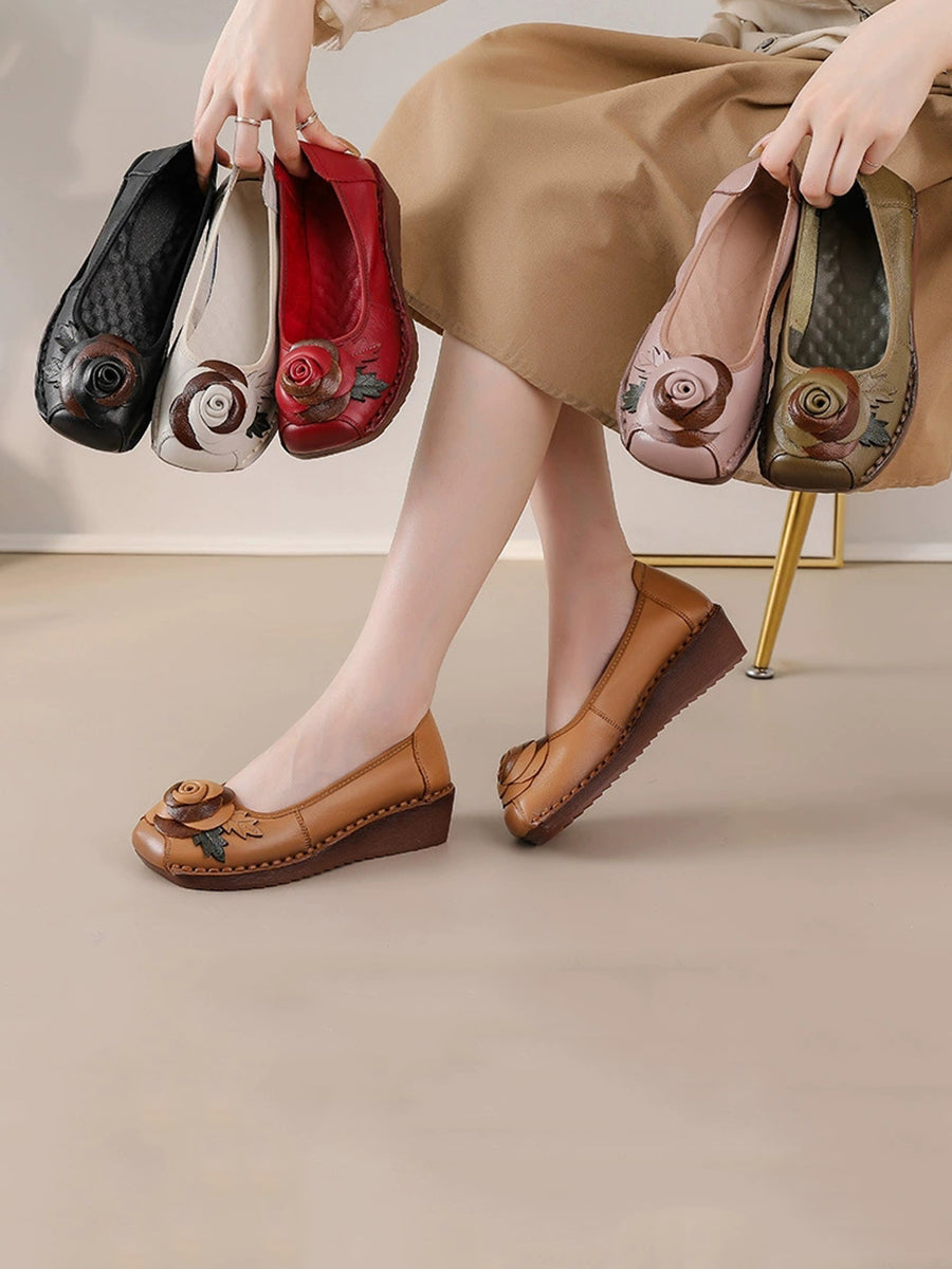 Dámské vintage boty na platformě z pravé kůže s květinovým vzorem