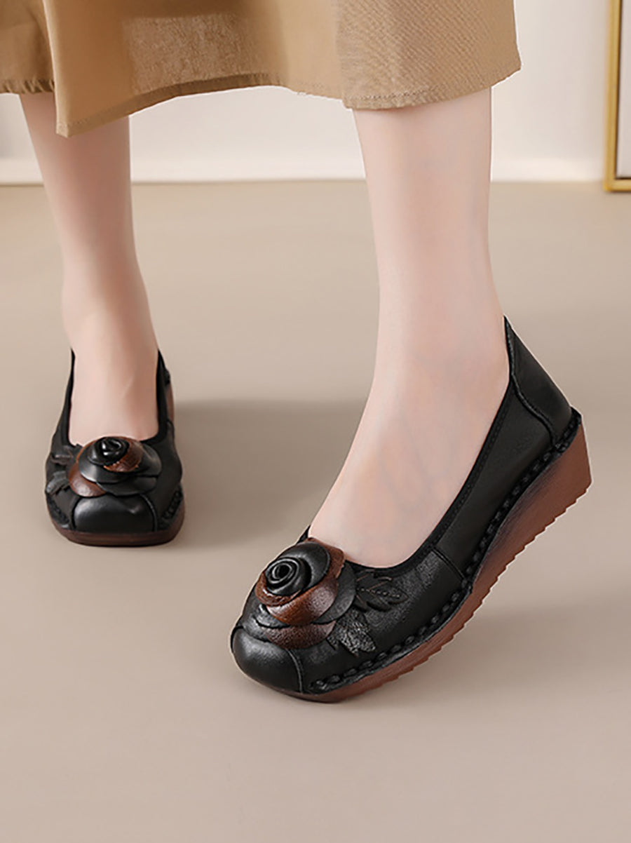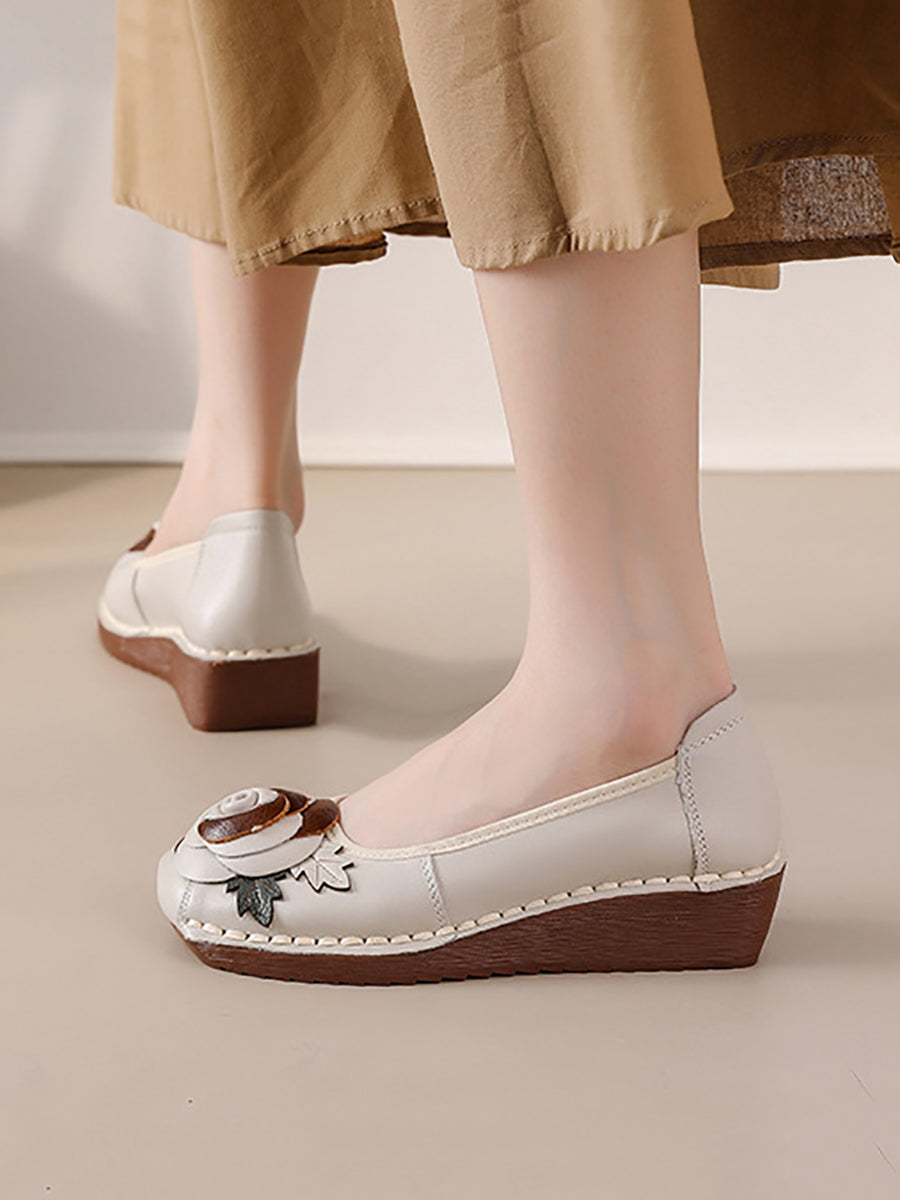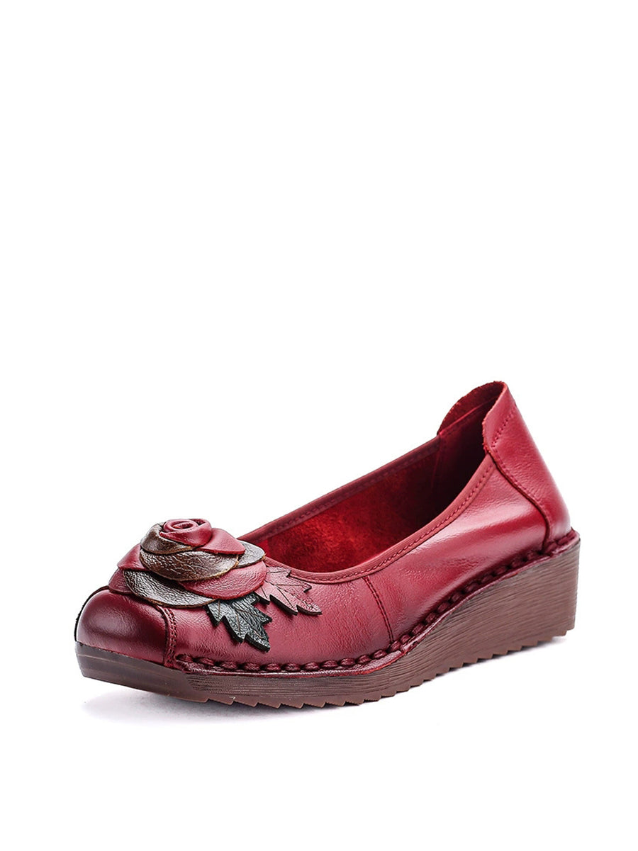 Dámské vintage boty na platformě z pravé kůže s květinovým vzorem