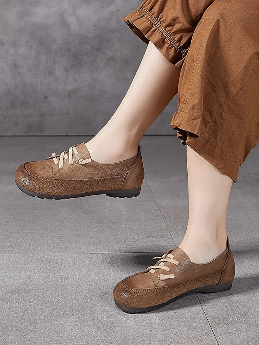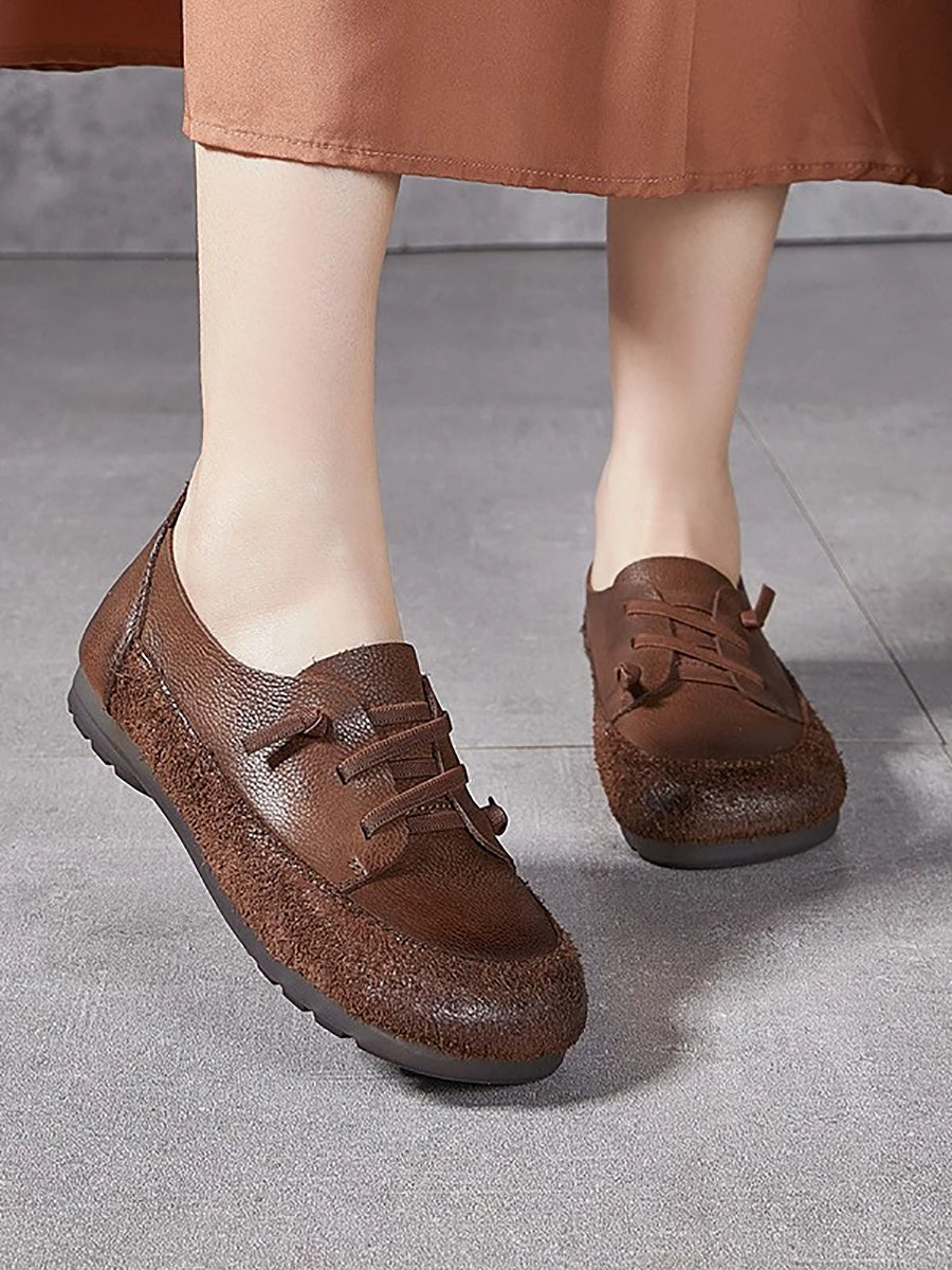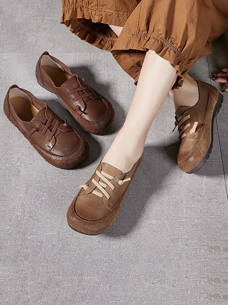 Dámské vintage boty z pravé kůže na nízkém podpatku