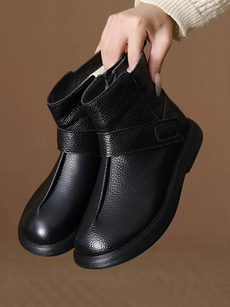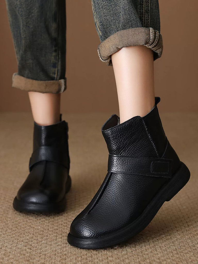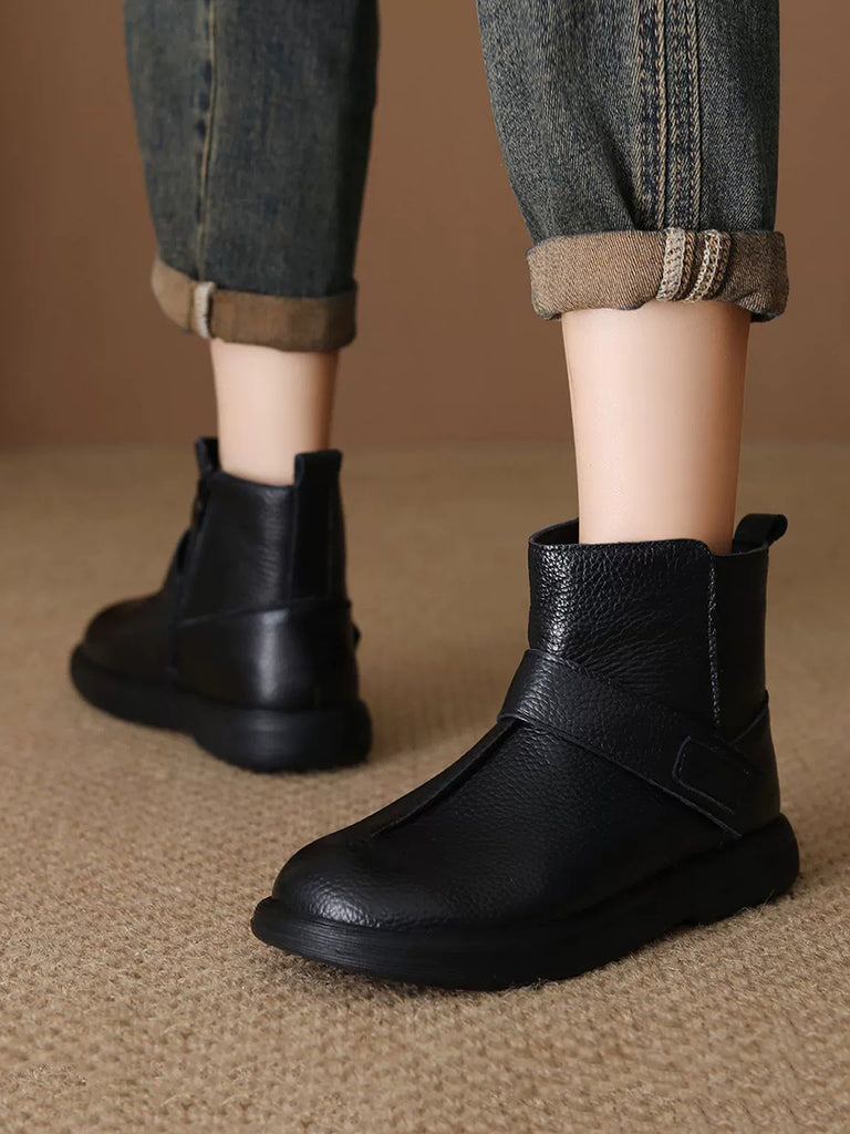 Dámské vintage kotníkové boty z pravé kůže s fleecovou podšívkou
