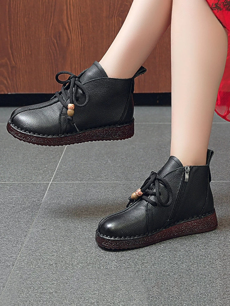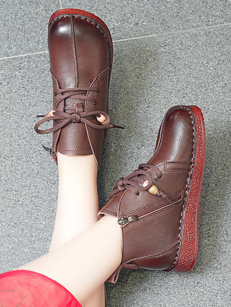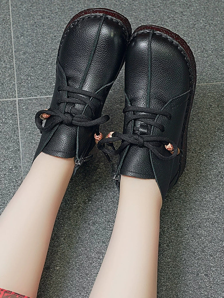 Dámské vintage boty z pravé kůže na nízkém podpatku