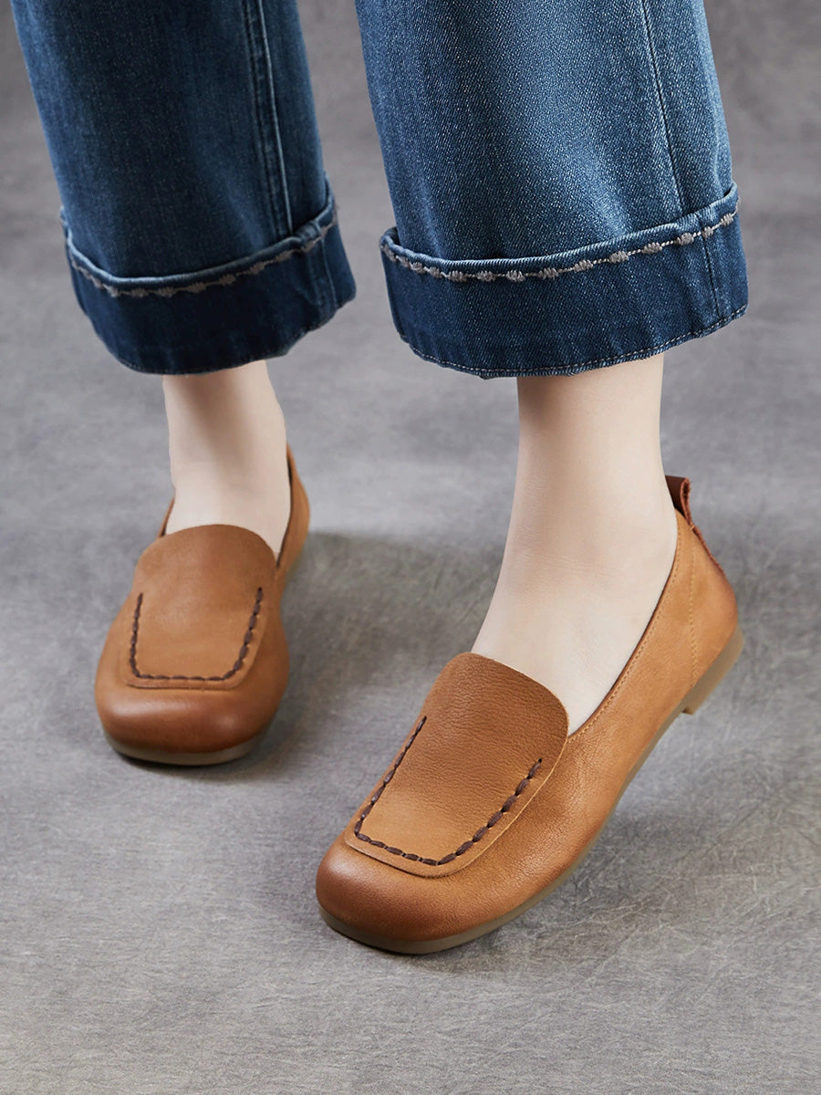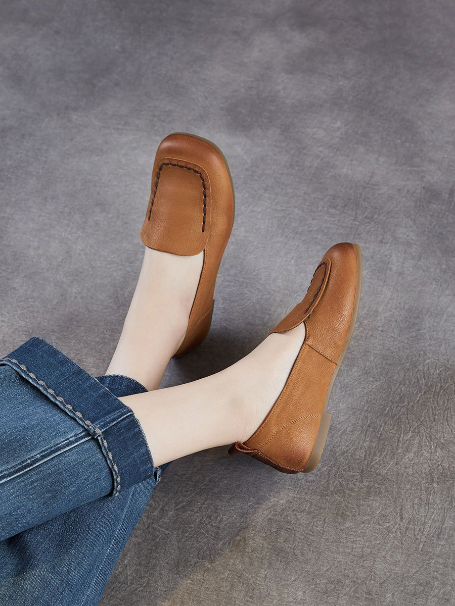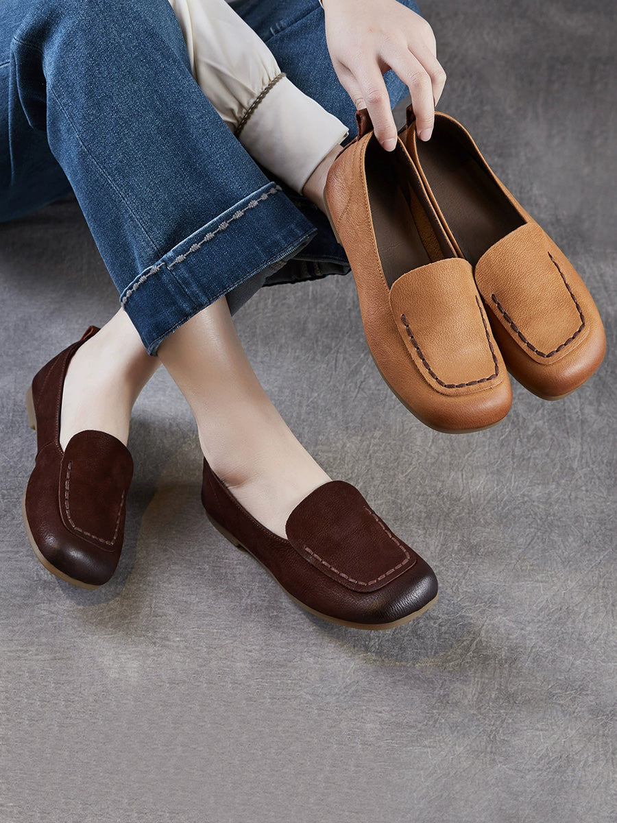 Dámské vintage boty z pravé kůže s hranatou špičkou