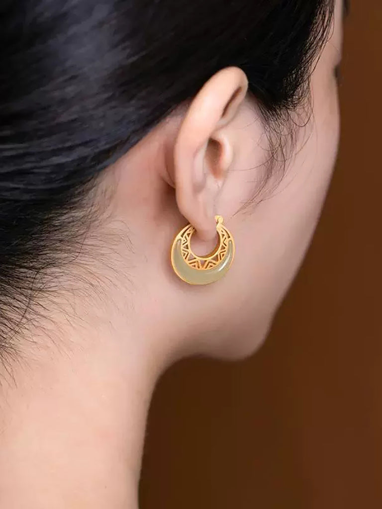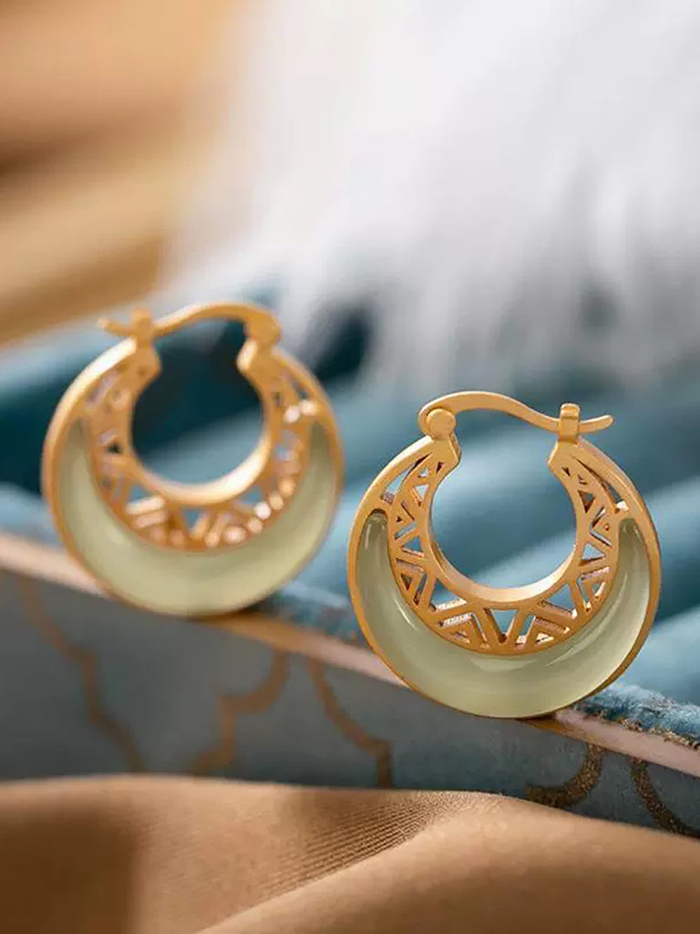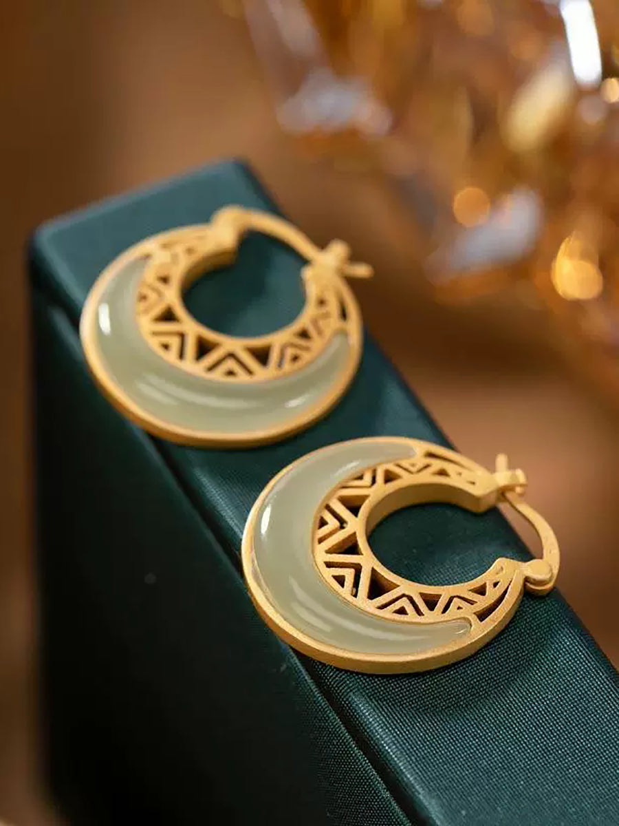 Dámské vintage nefritové náušnice z měsíční slitiny