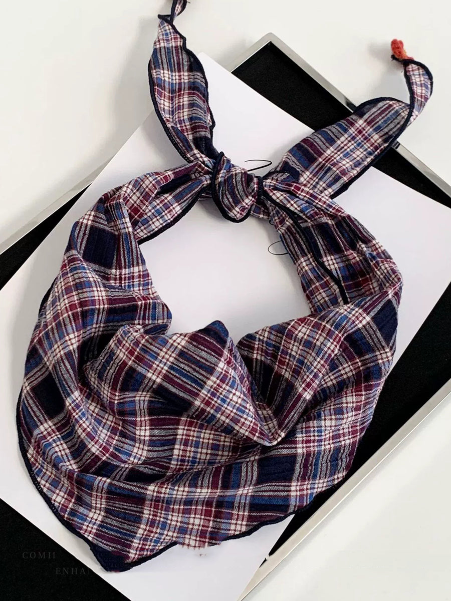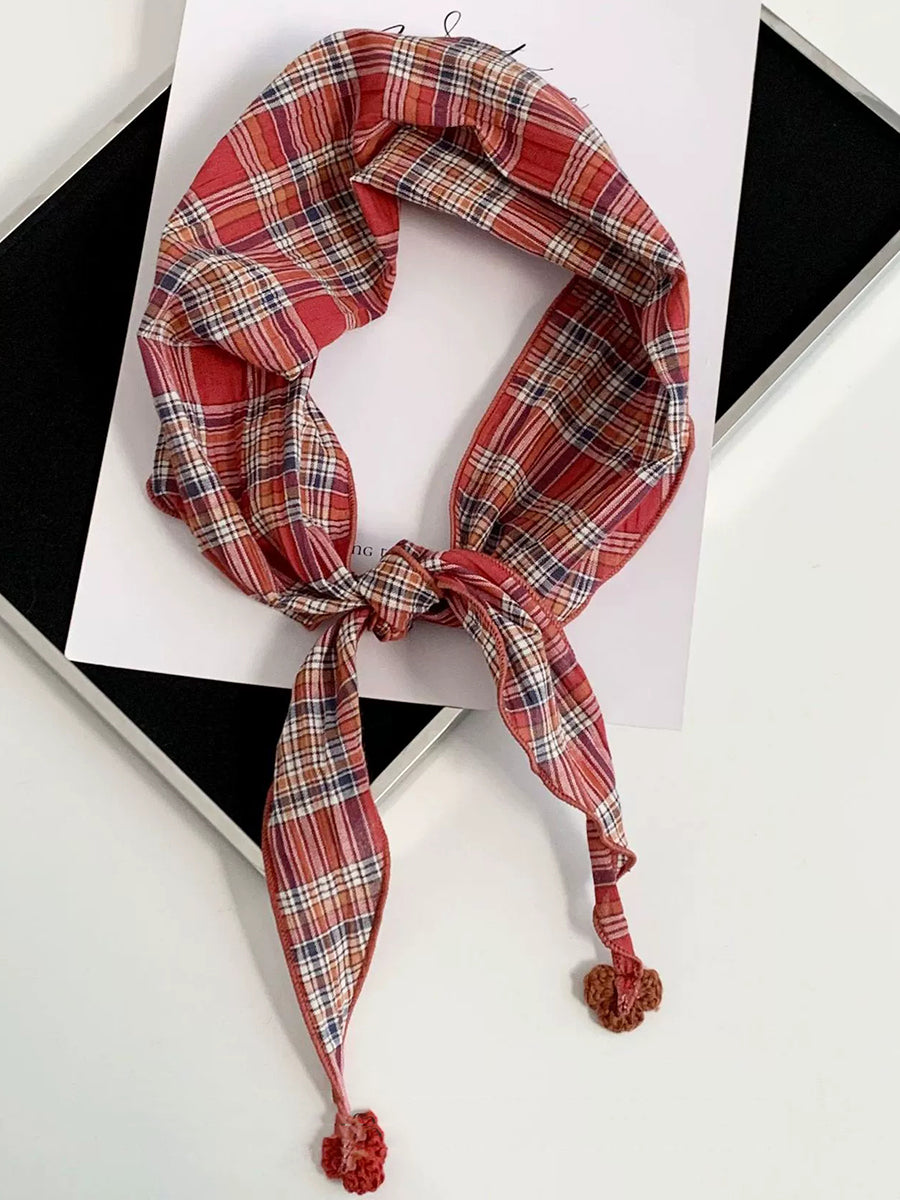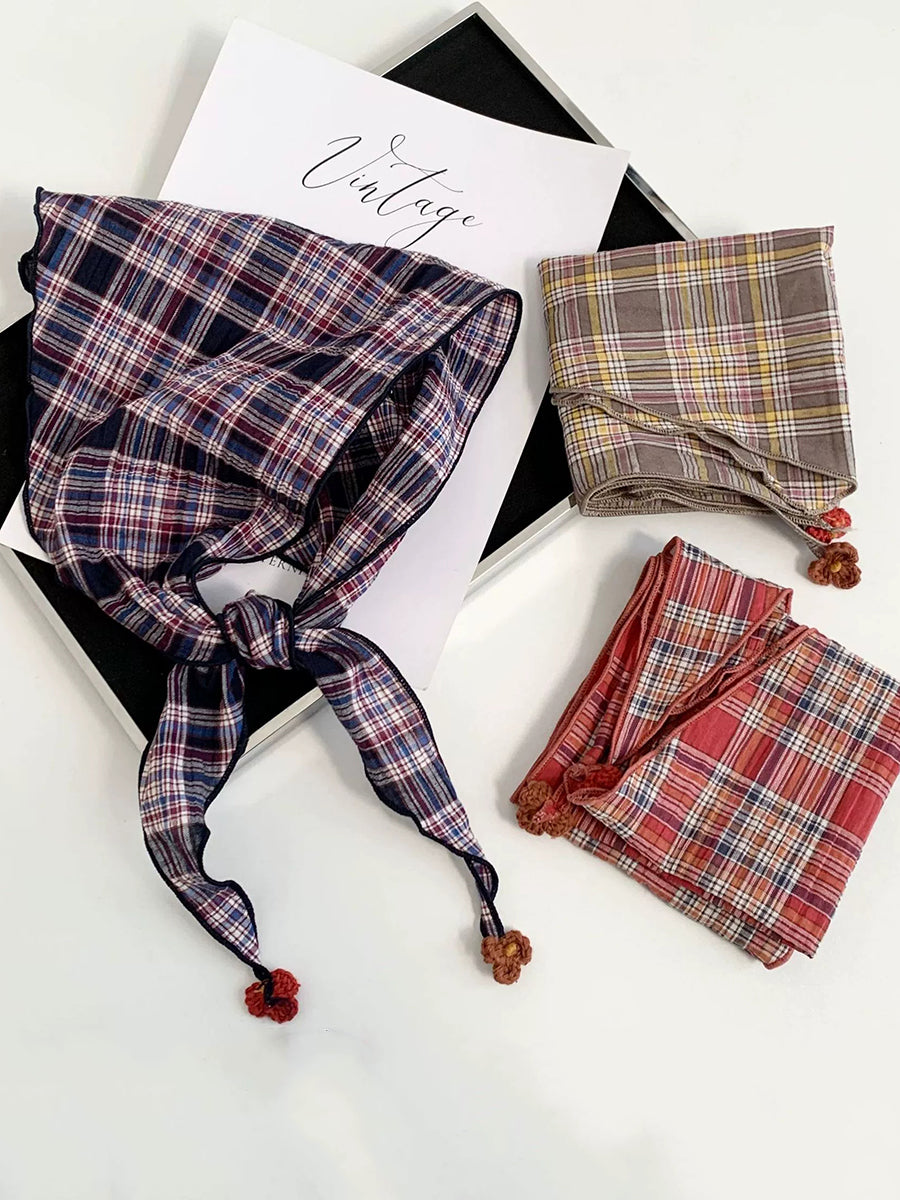 Dámský vintage kostkovaný trojúhelníkový šátek