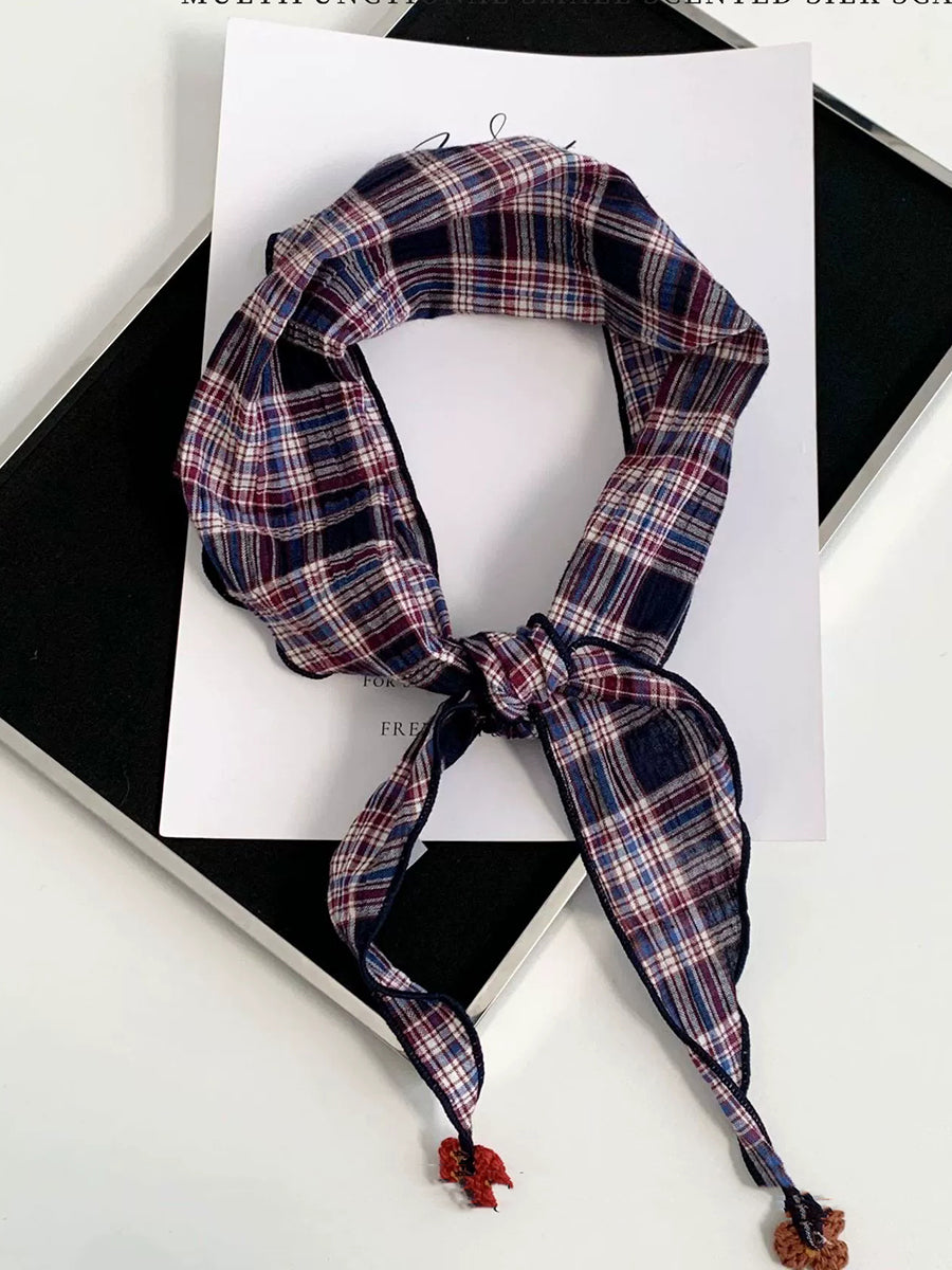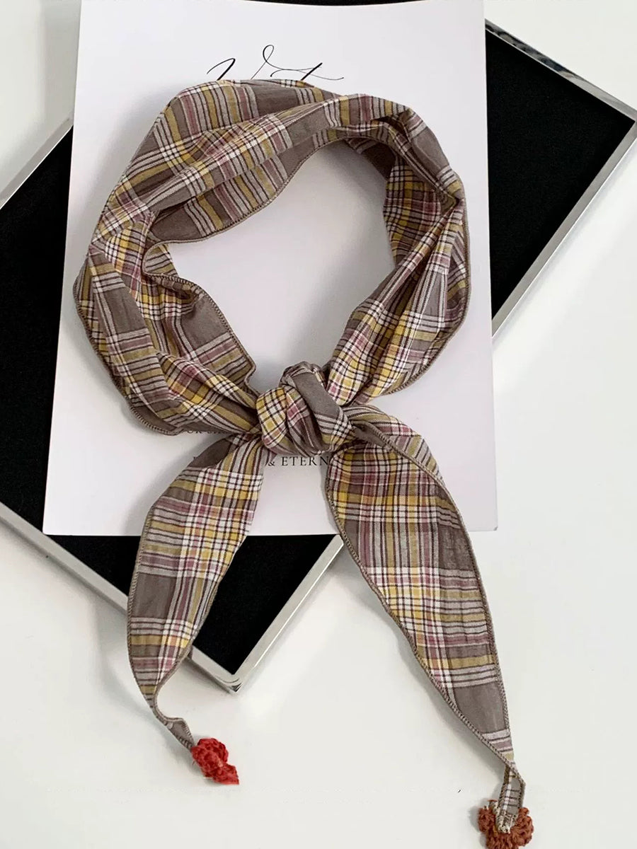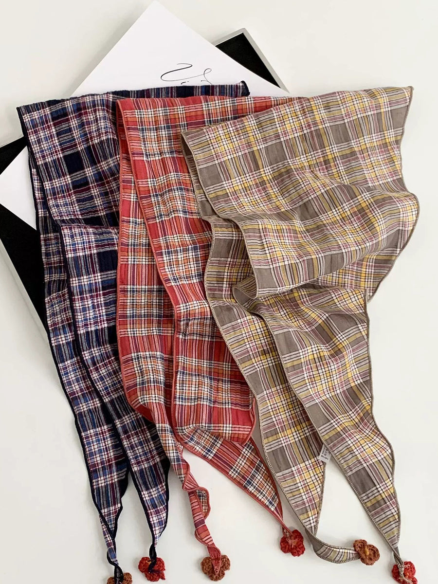 Dámský vintage kostkovaný trojúhelníkový šátek