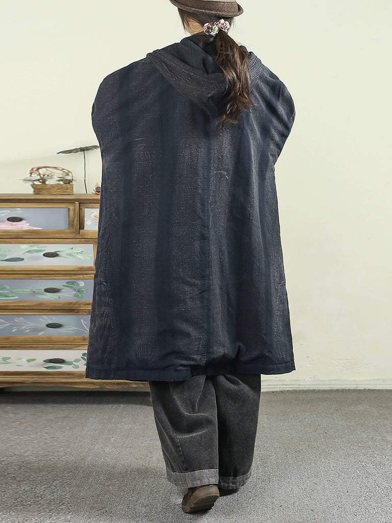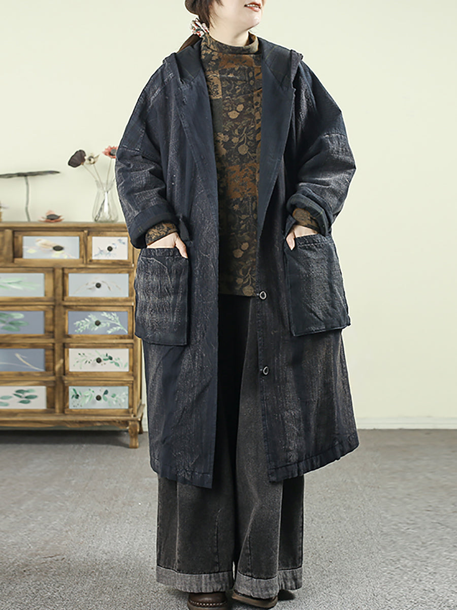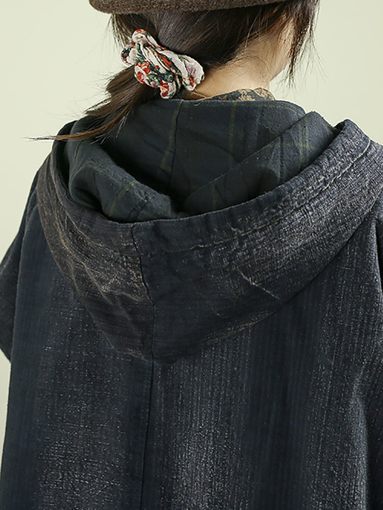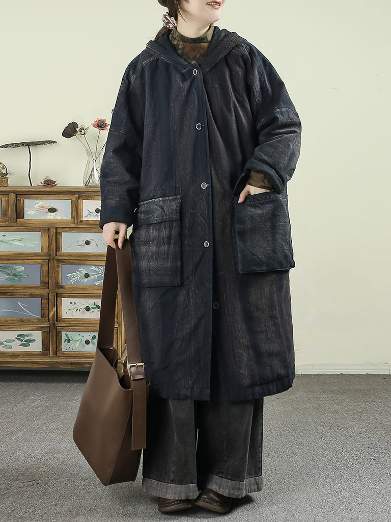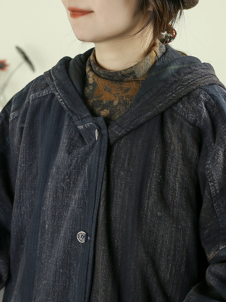 Dámský vintage sepraný džínový prošívaný kabát s kapucí
