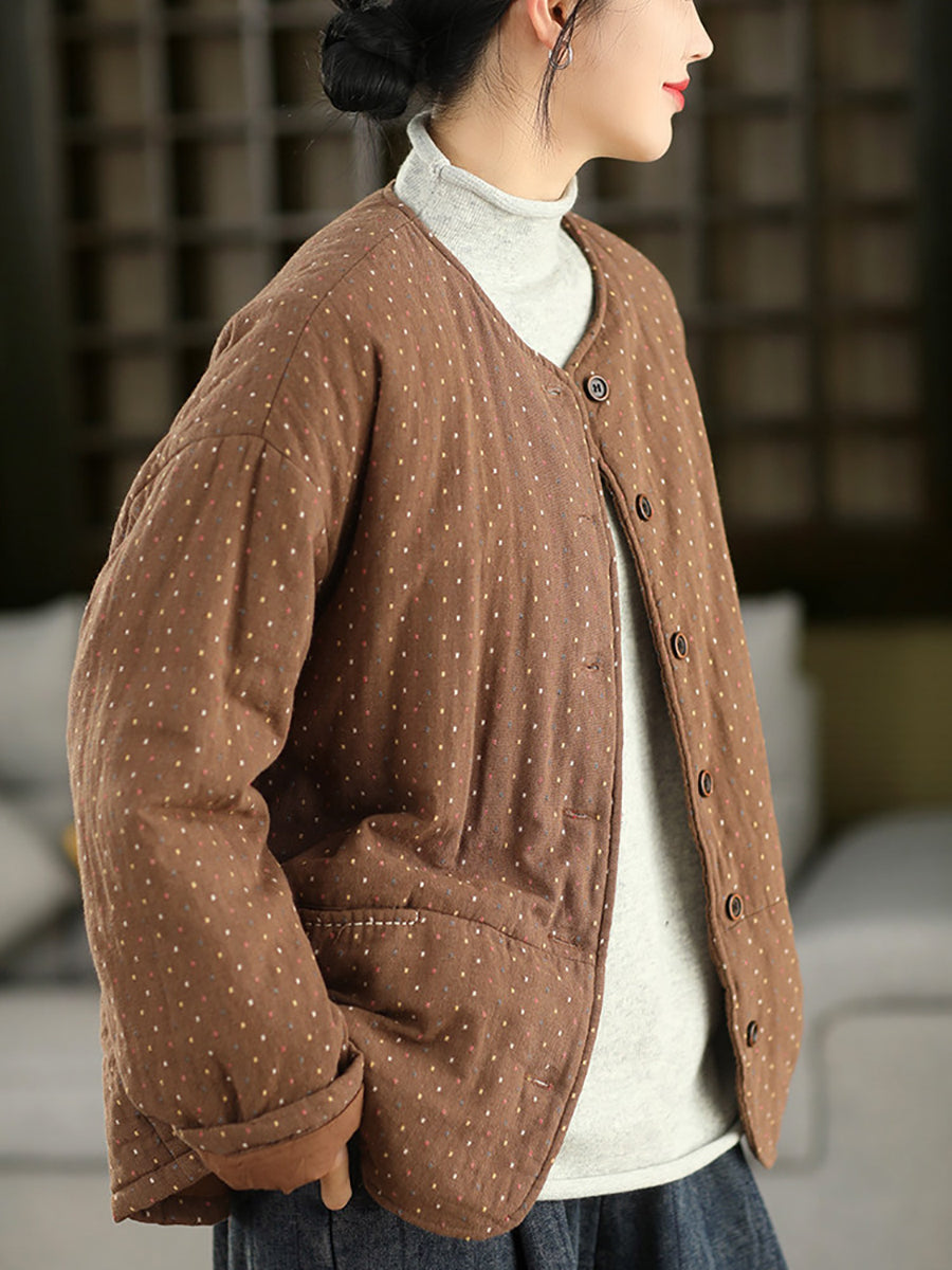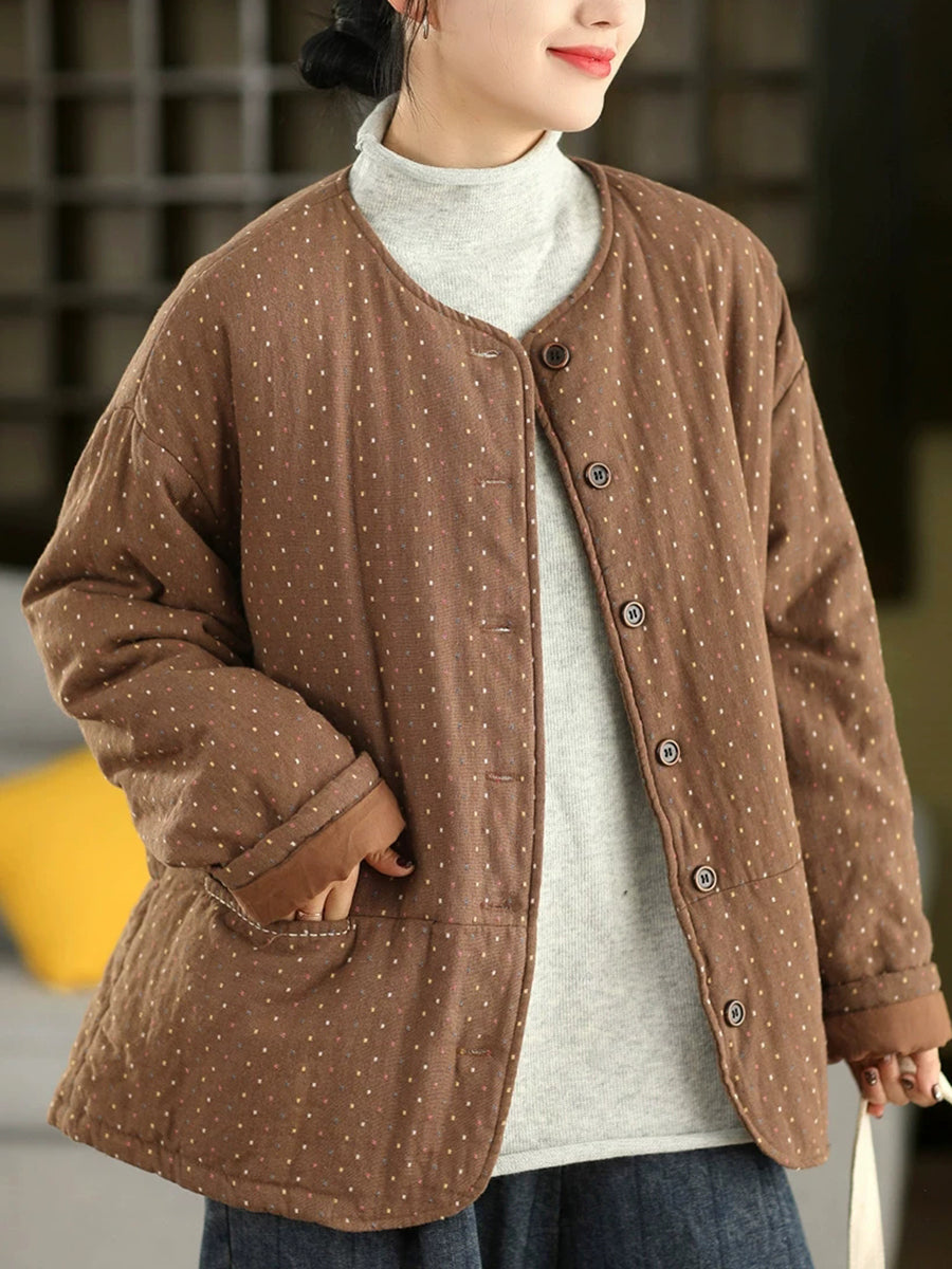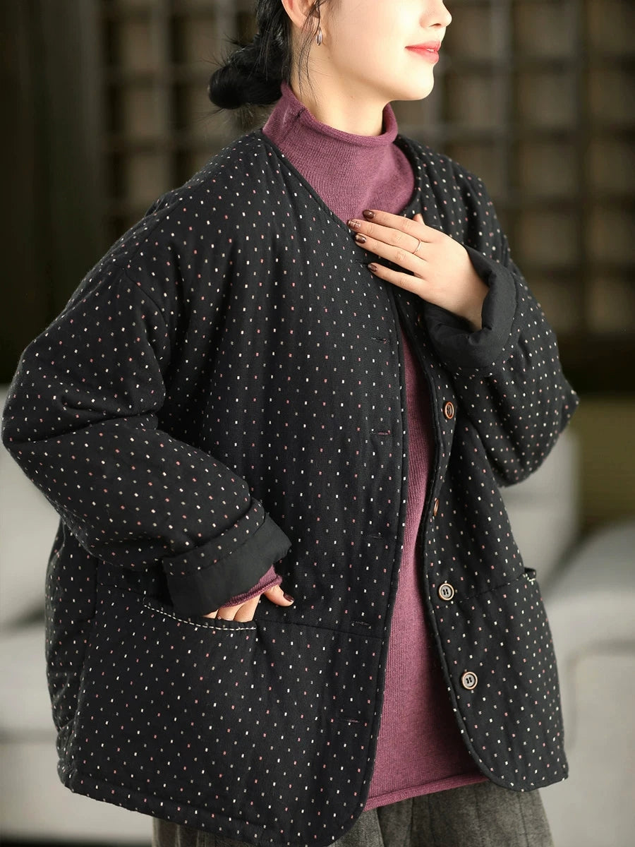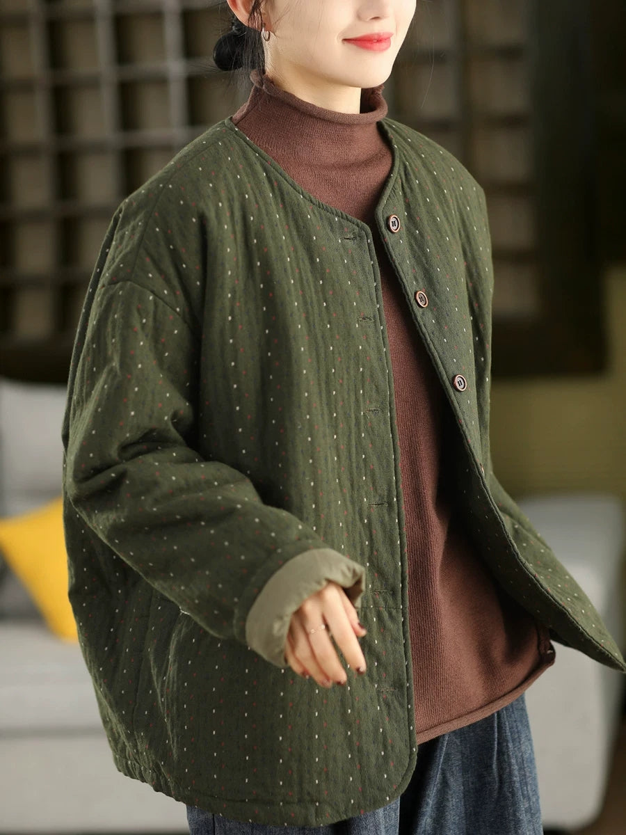 Dámský zimní prošívaný kabát Artsy Dot s výstřihem do O-kroju, 100% bavlna