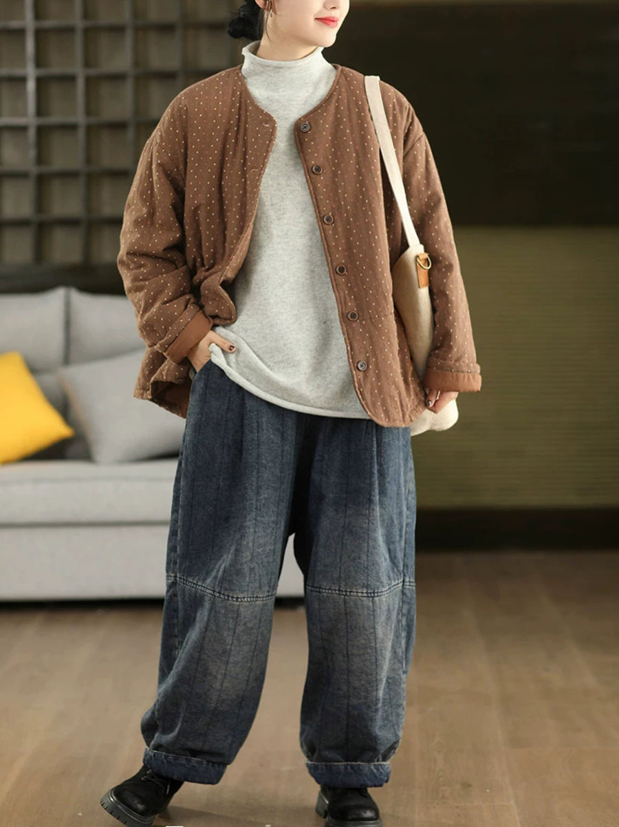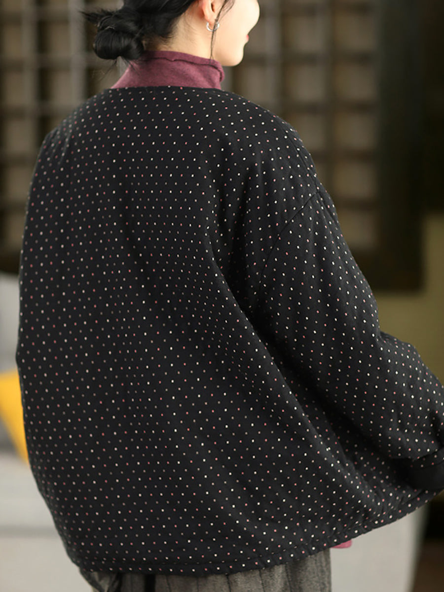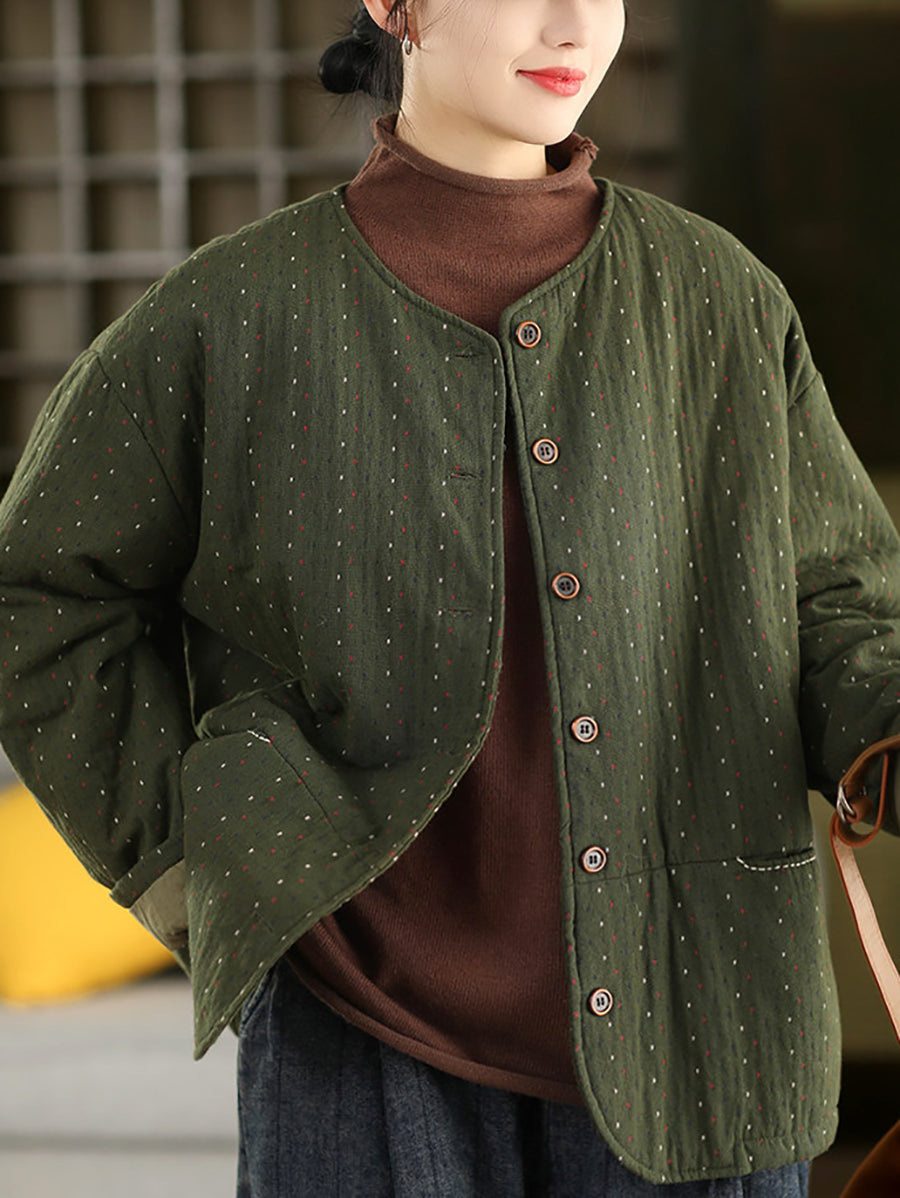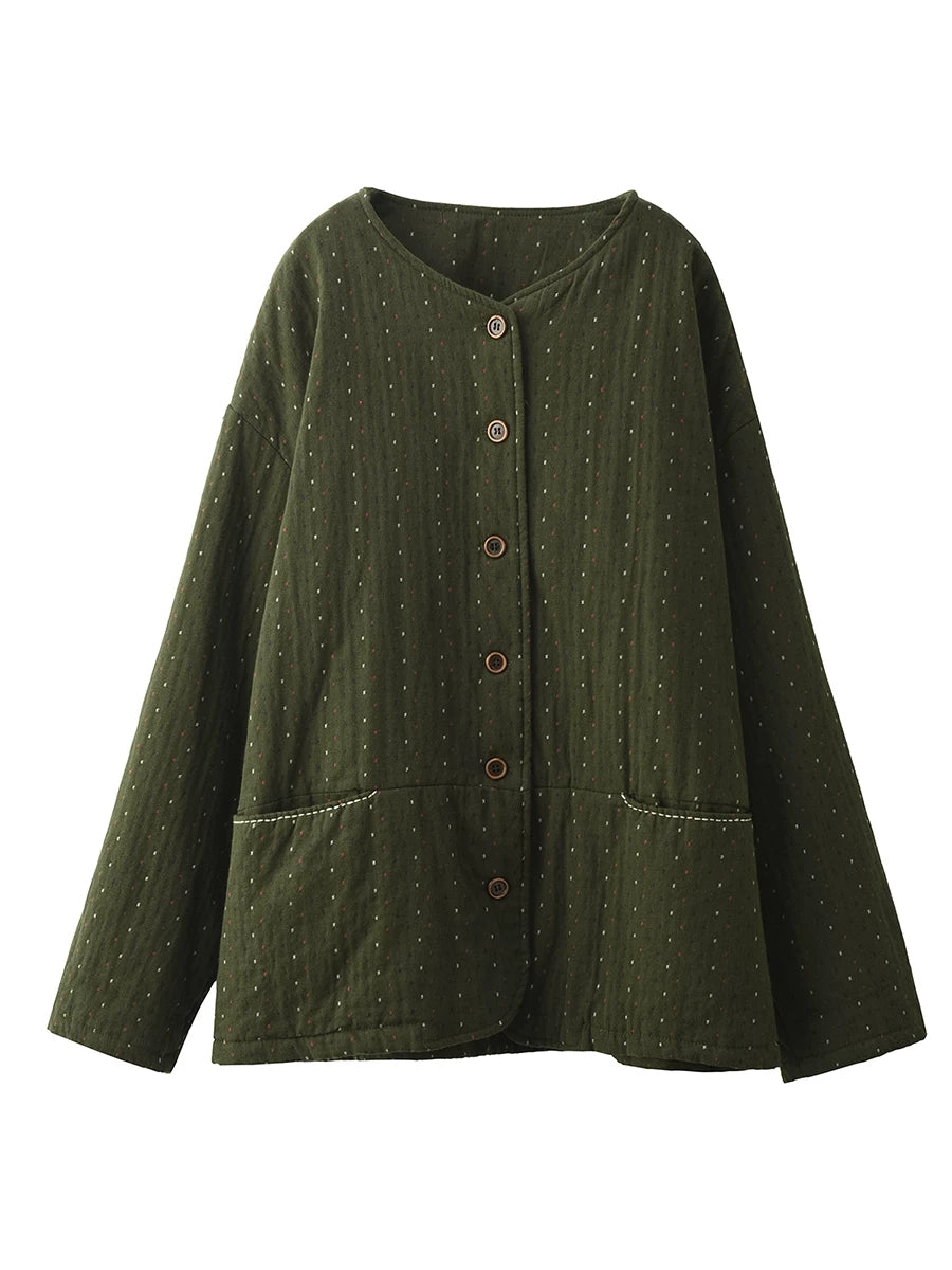 Dámský zimní prošívaný kabát Artsy Dot s výstřihem do O-kroju, 100% bavlna