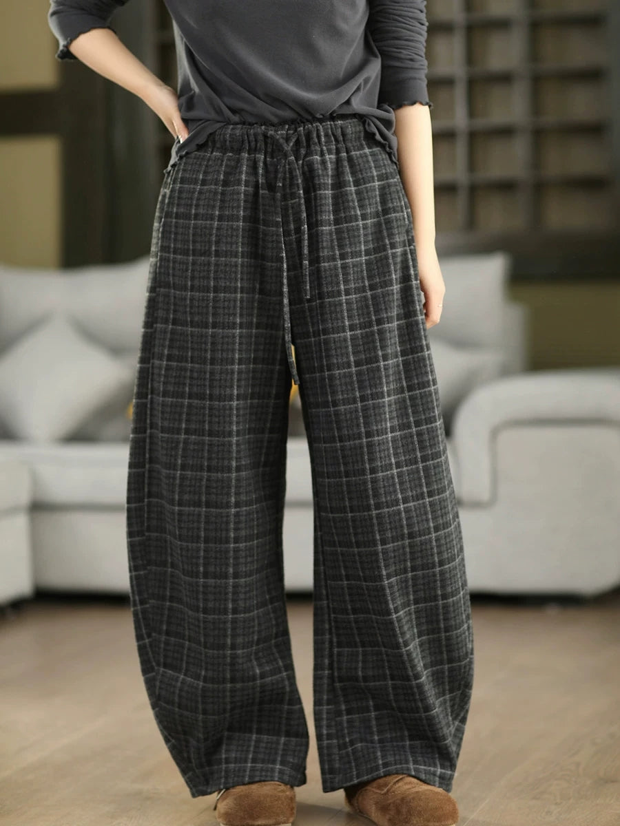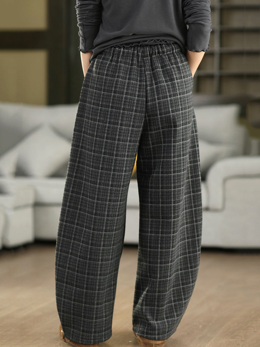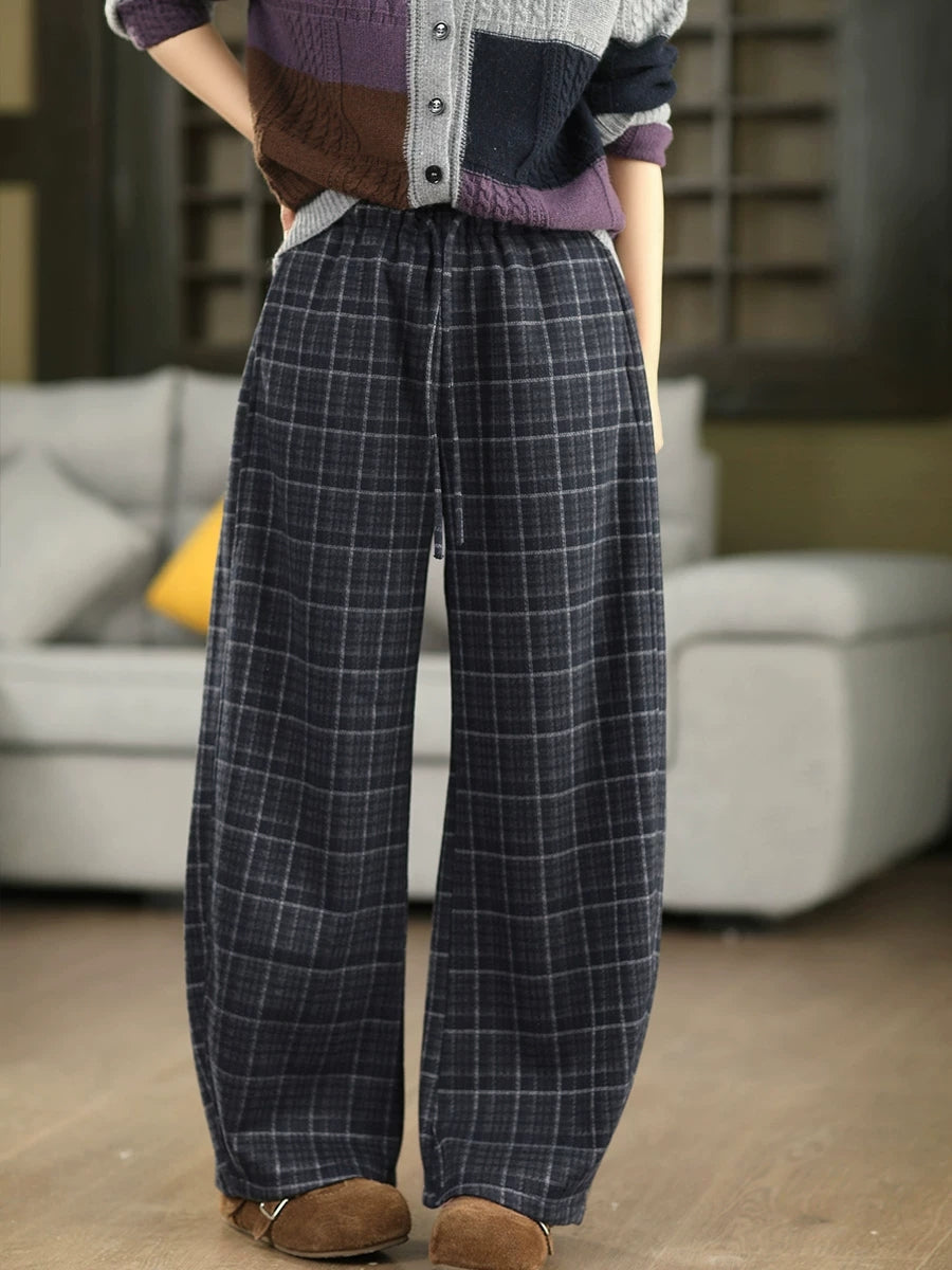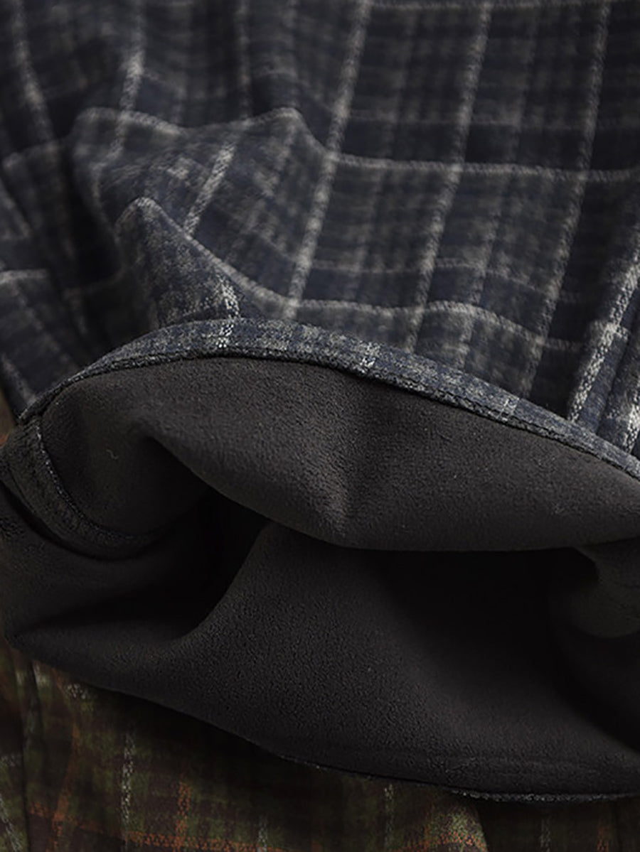 Dámské zimní umělecké kostkované rovné kalhoty s fleecovou podšívkou