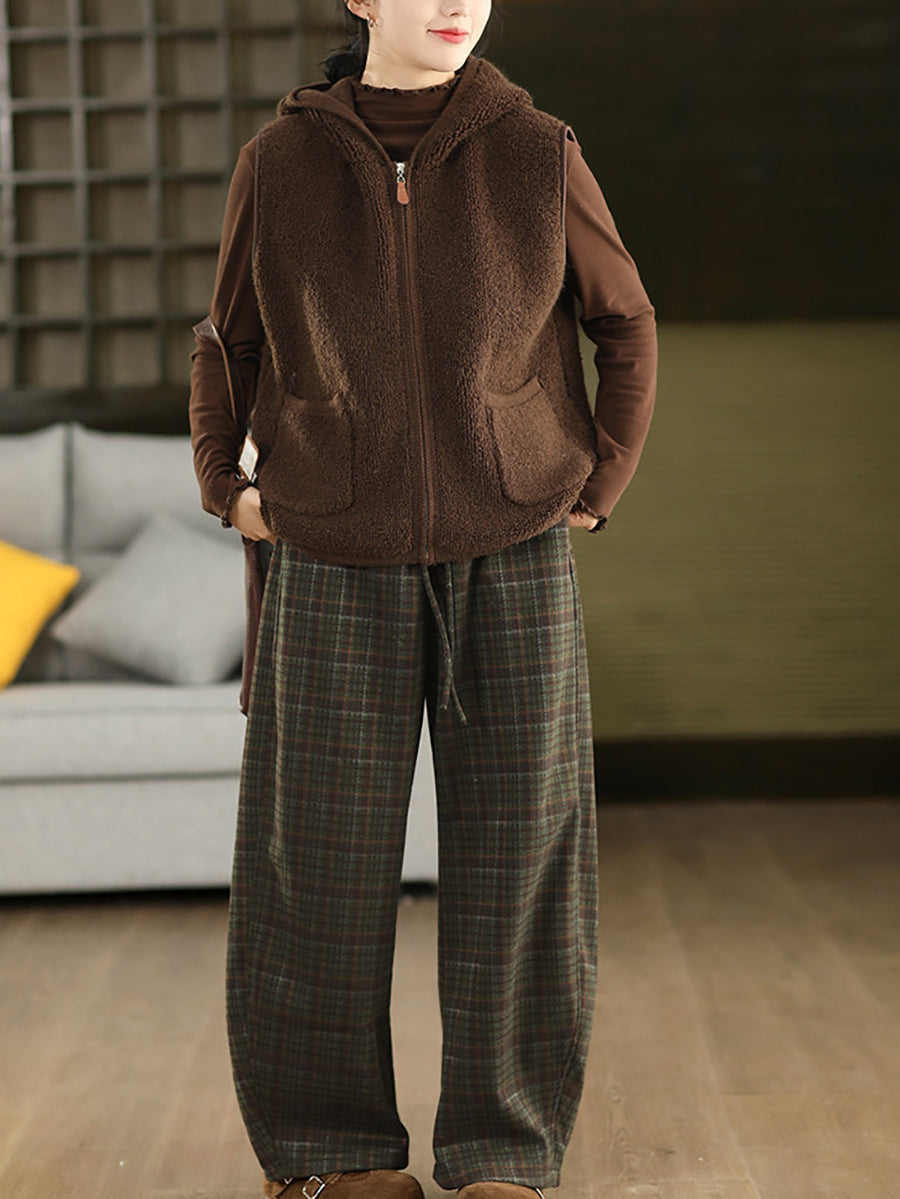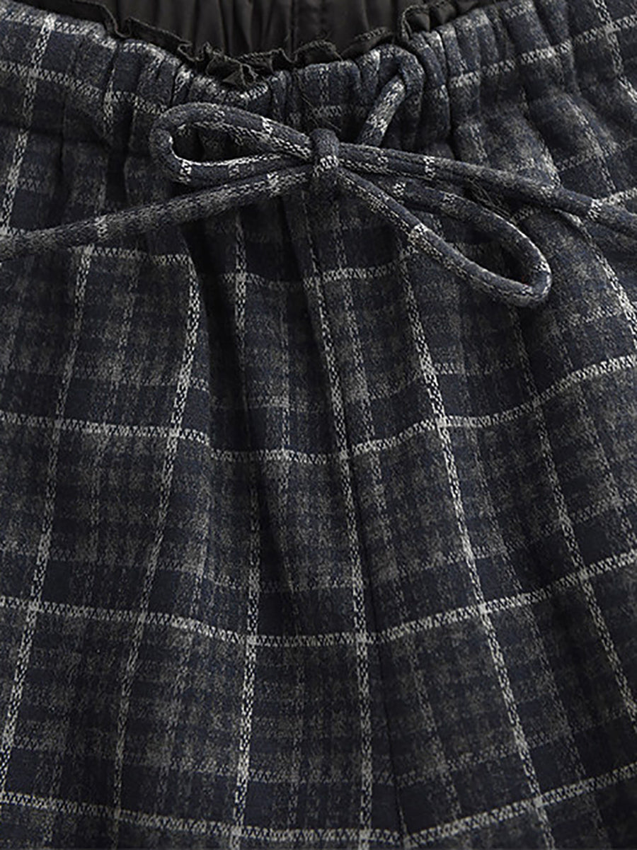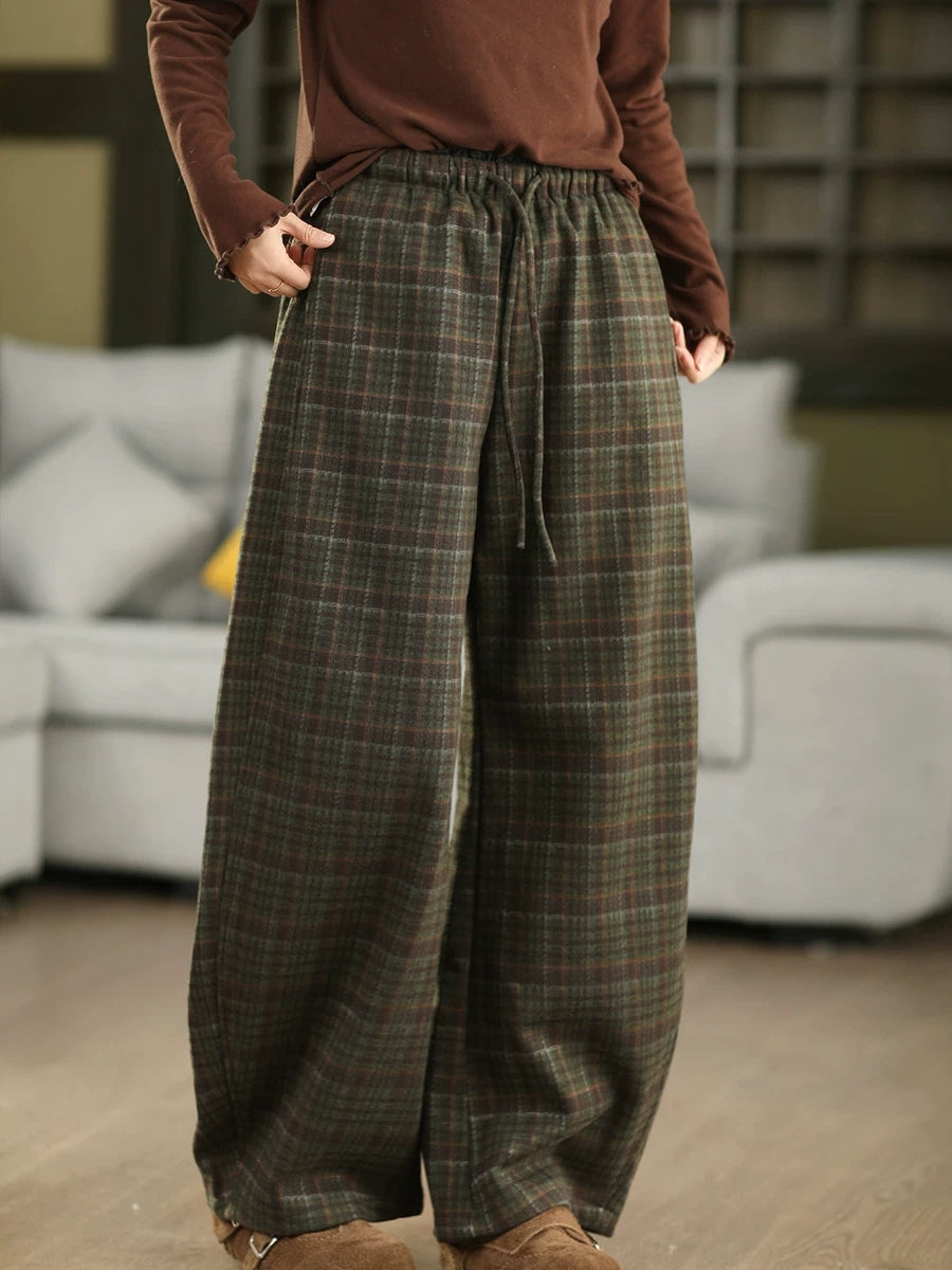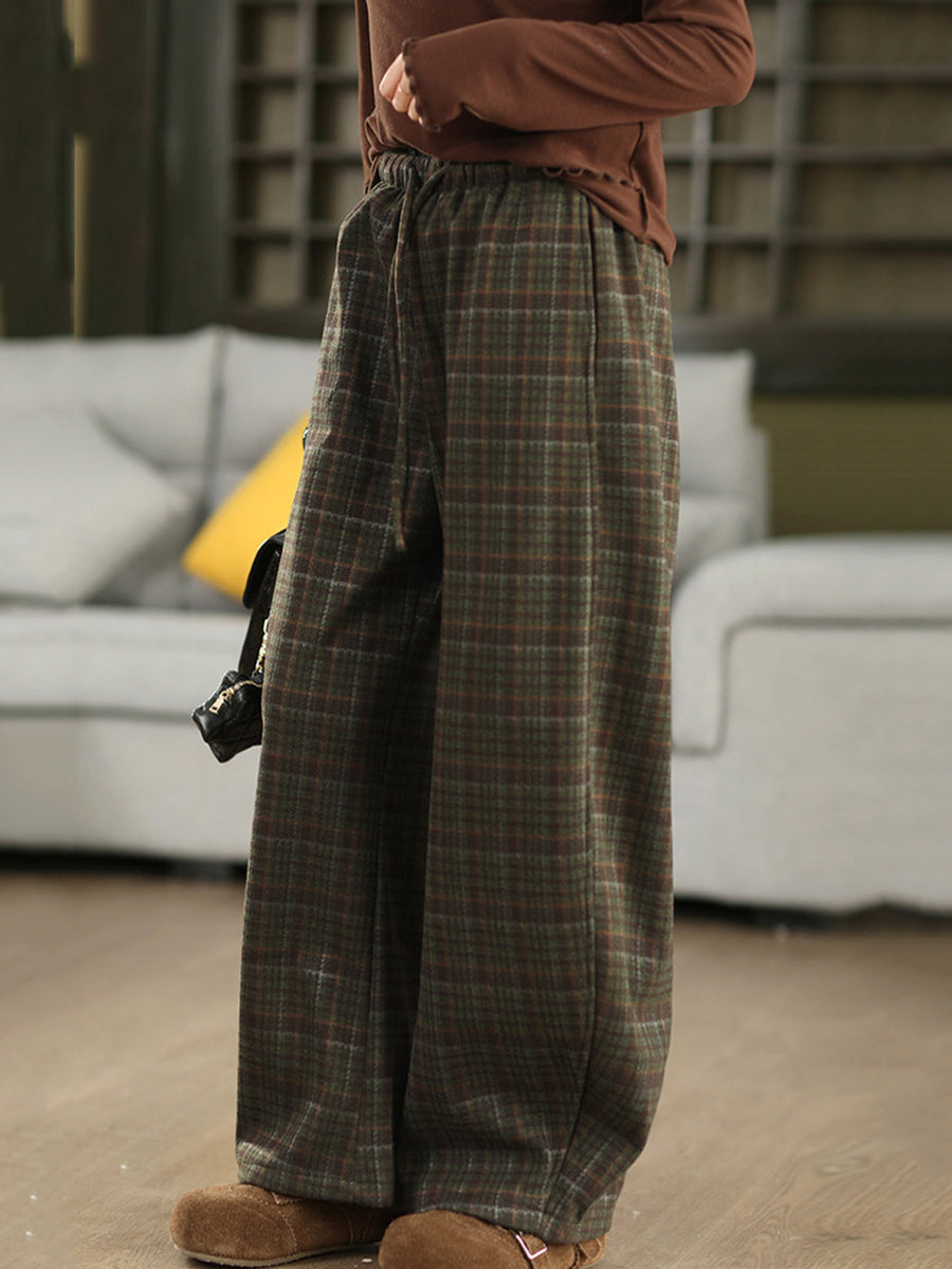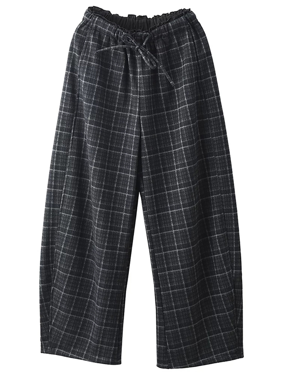 Dámské zimní umělecké kostkované rovné kalhoty s fleecovou podšívkou