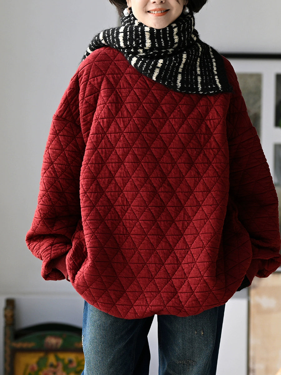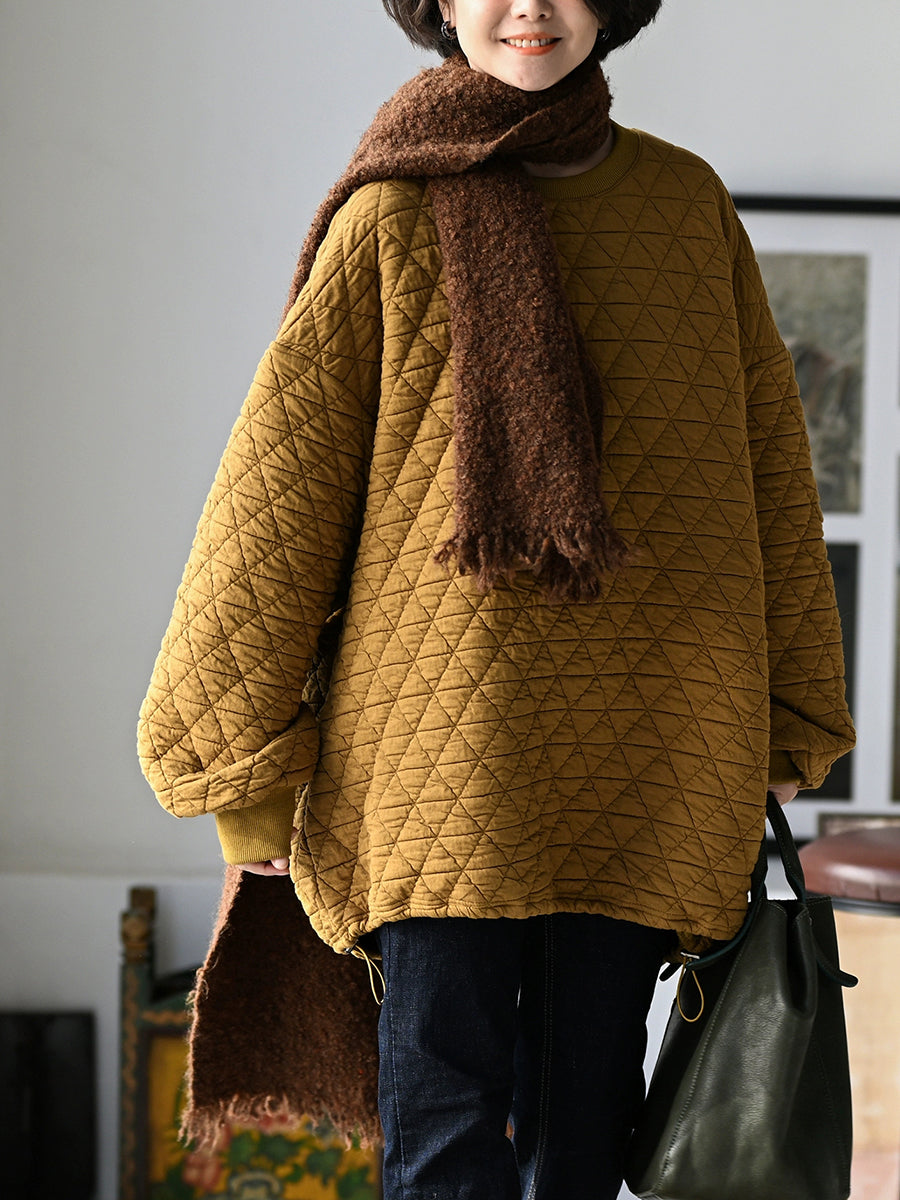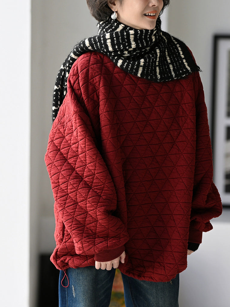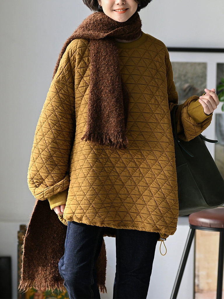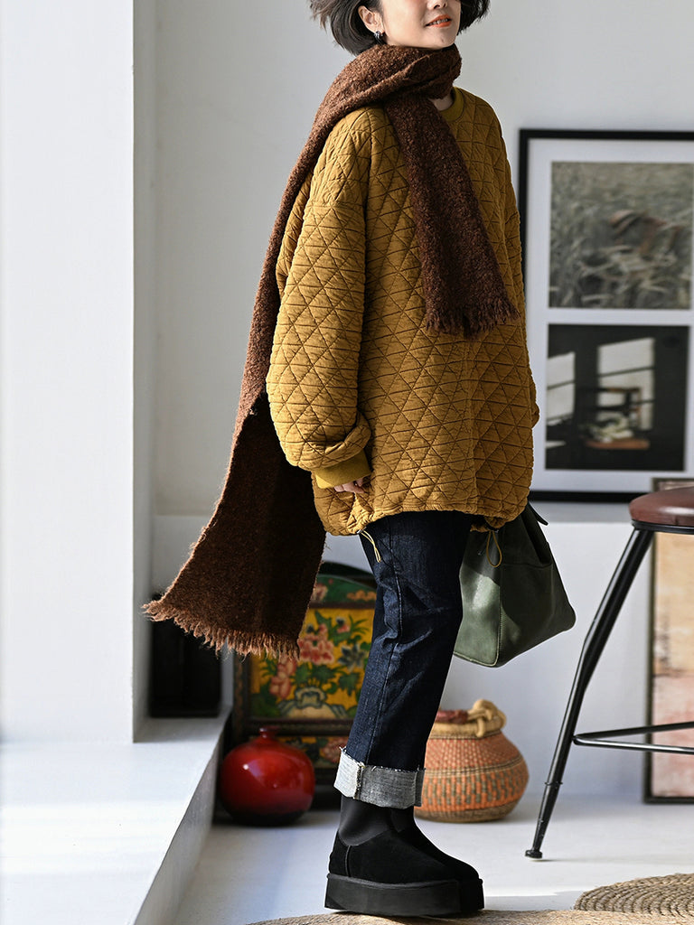 Dámský zimní umělecký prošívaný kabát s výstřihem do O-neck v čistých barvách