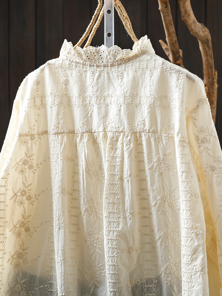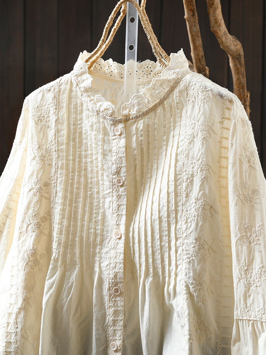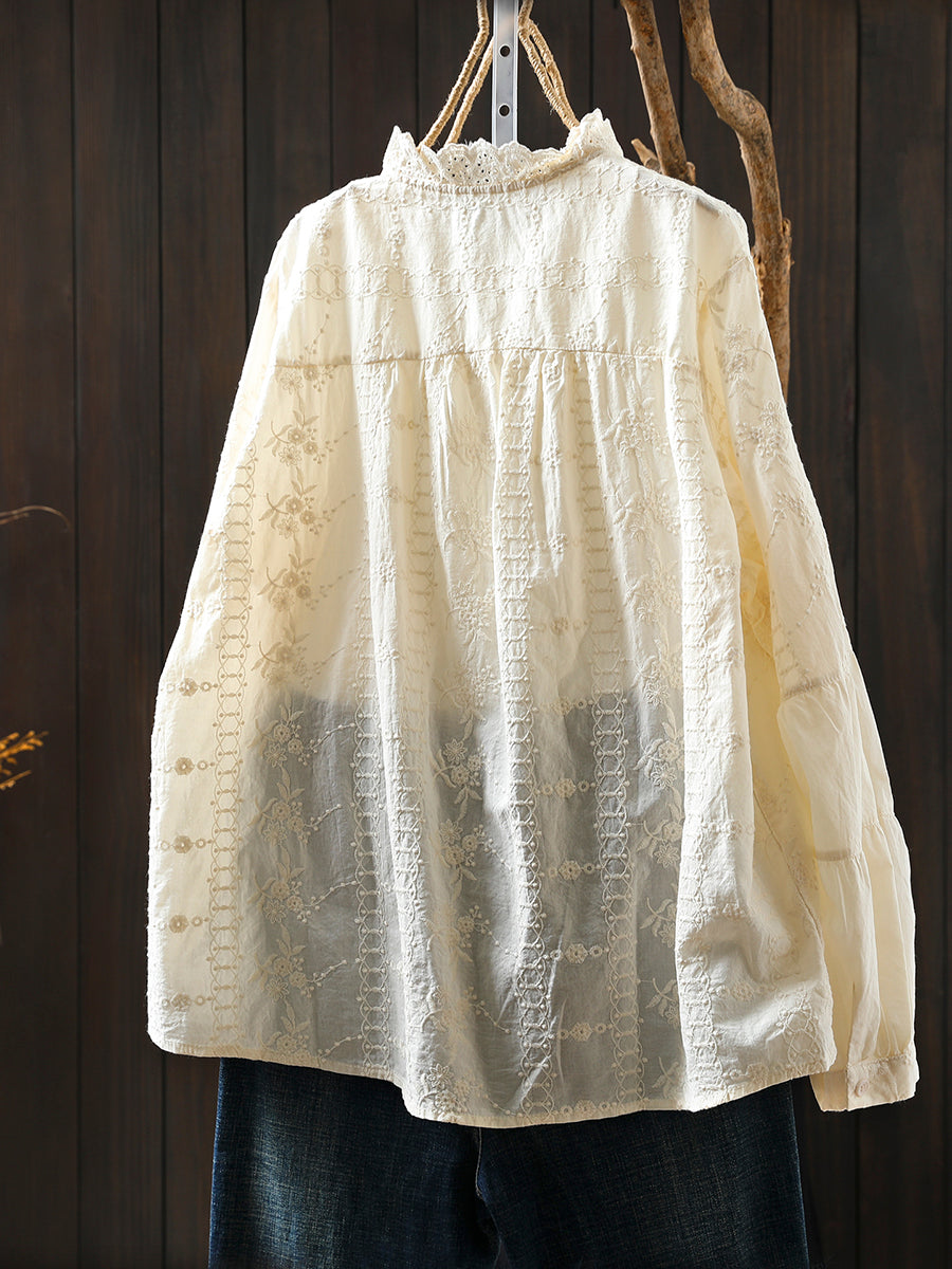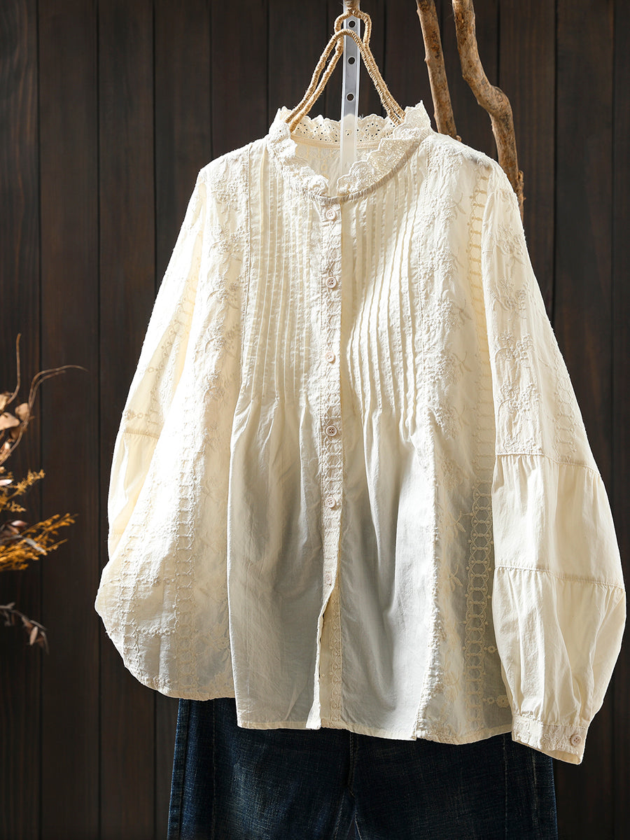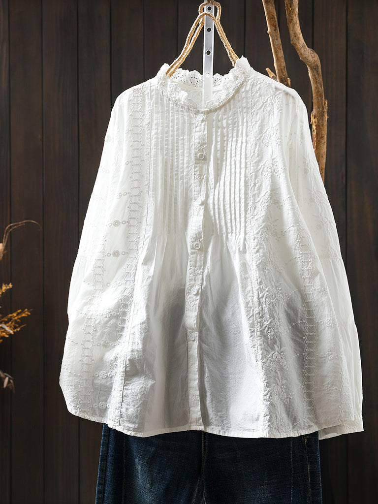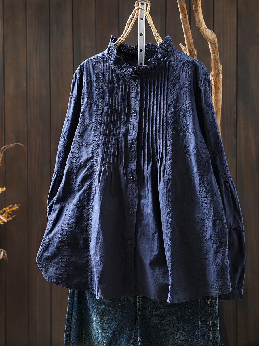Dámská zimní košile s uměleckým stojáčkem a výšivkou, 100% bavlna