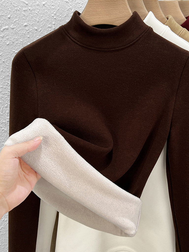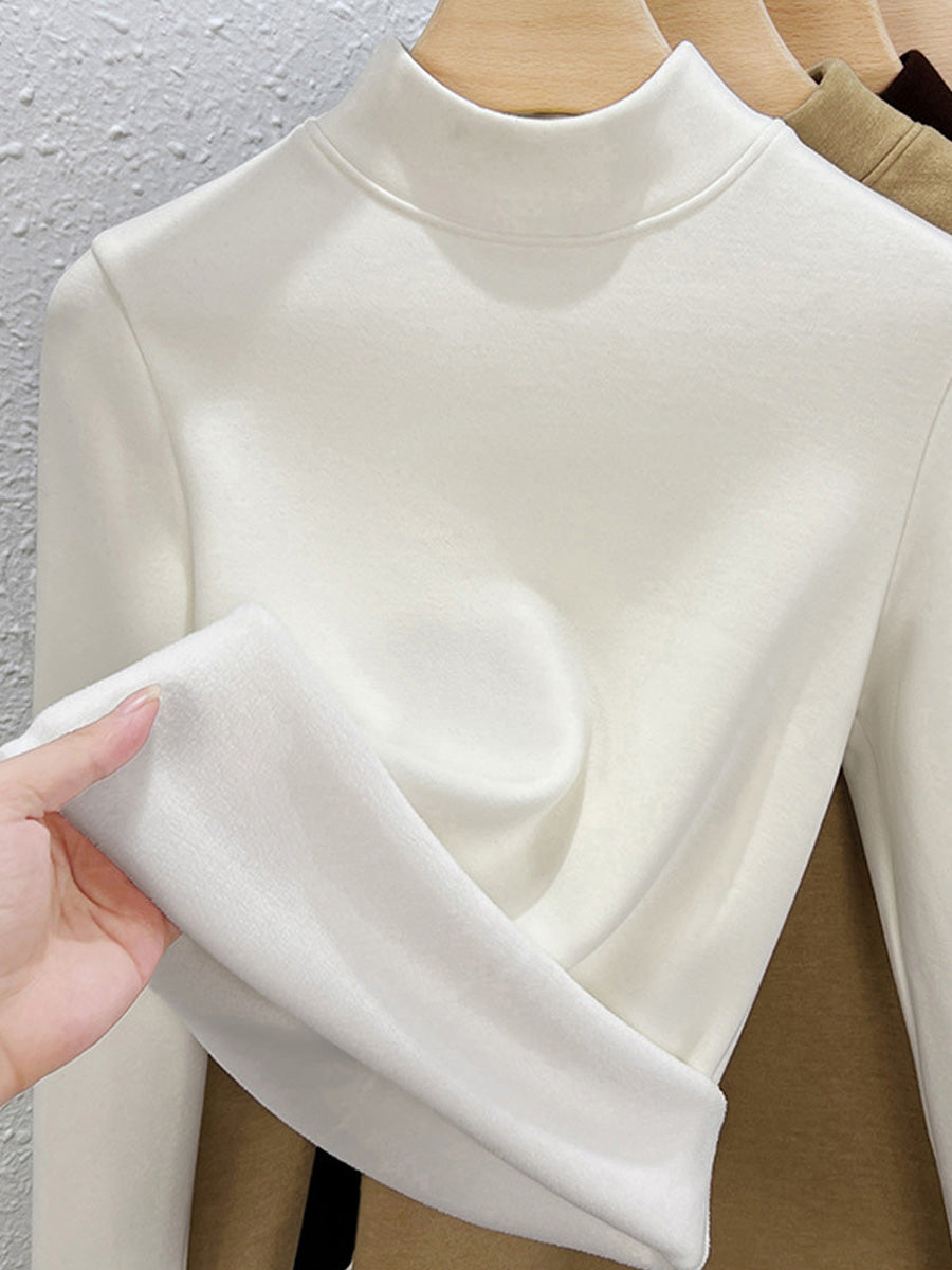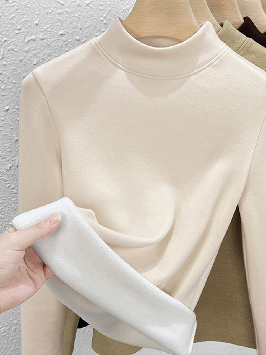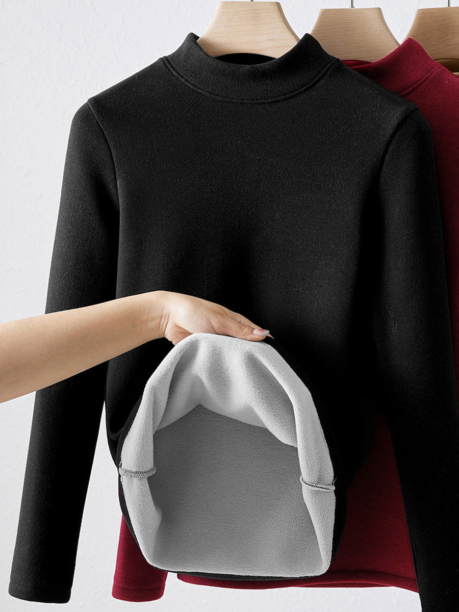 Dámská zimní ležérní halenka s fleecovou podšívkou a rolákovým výstřihem