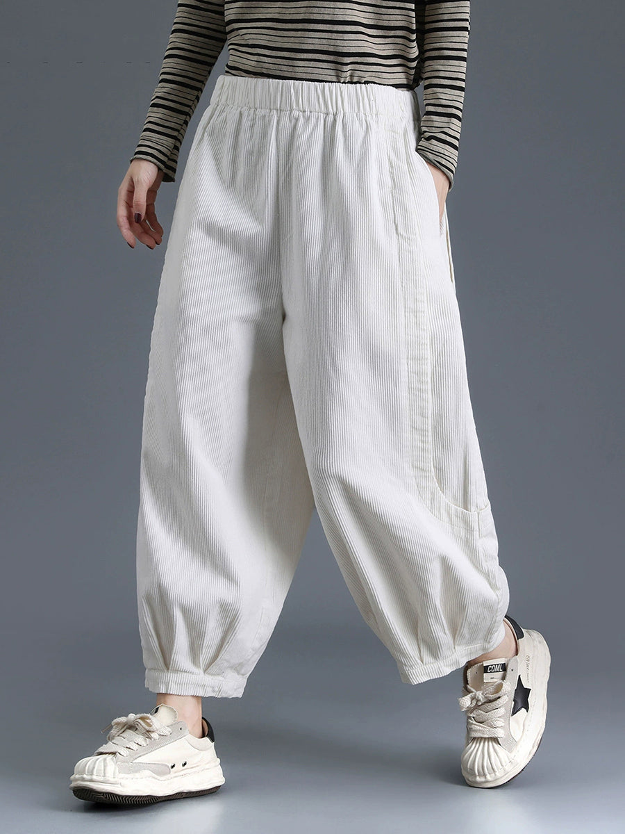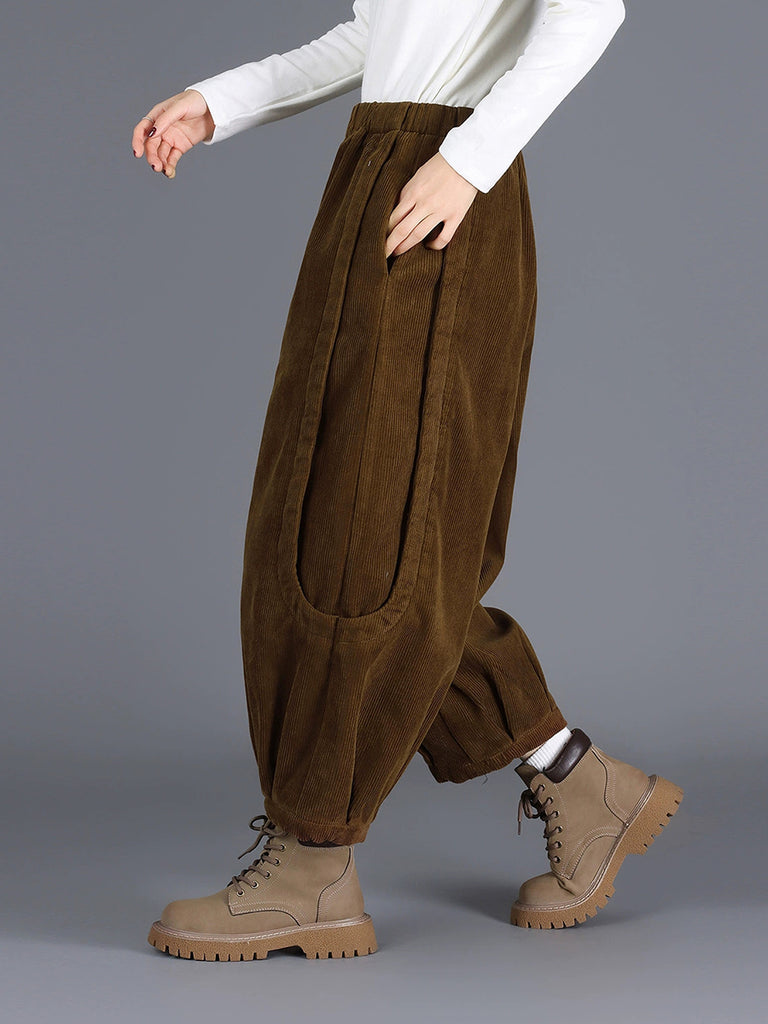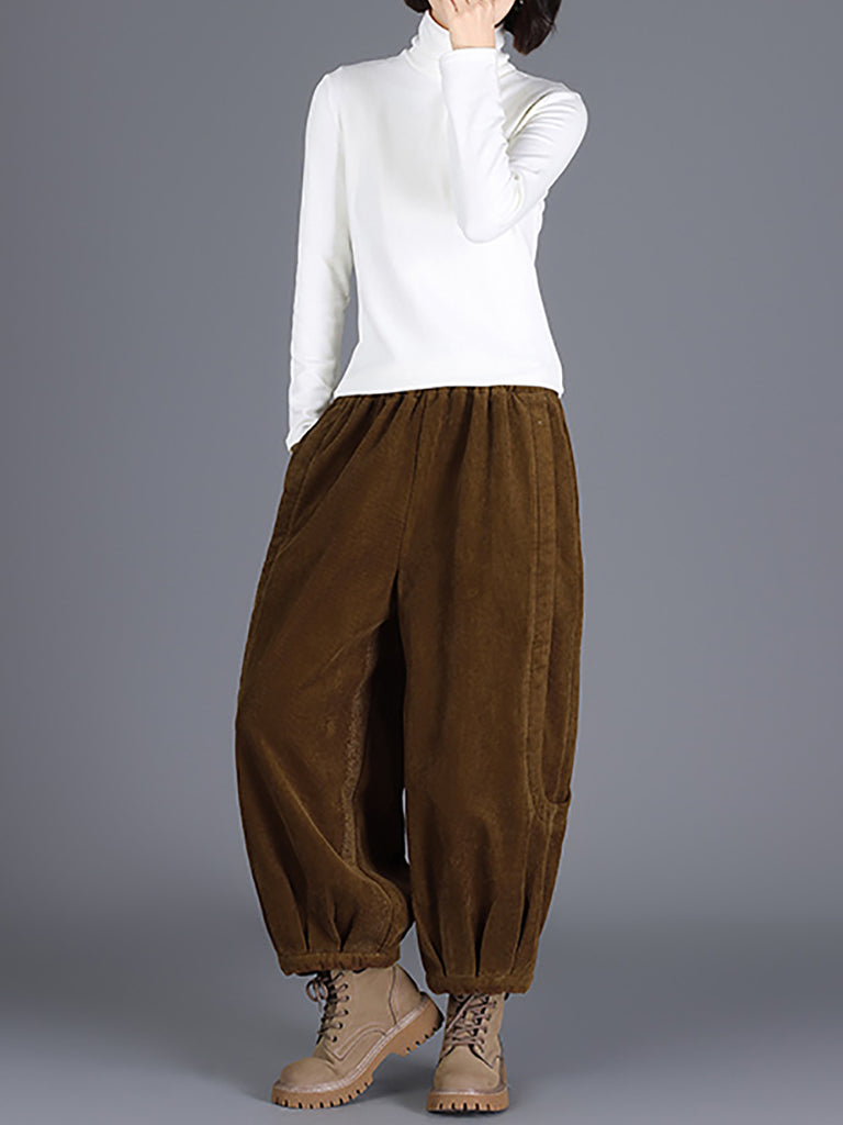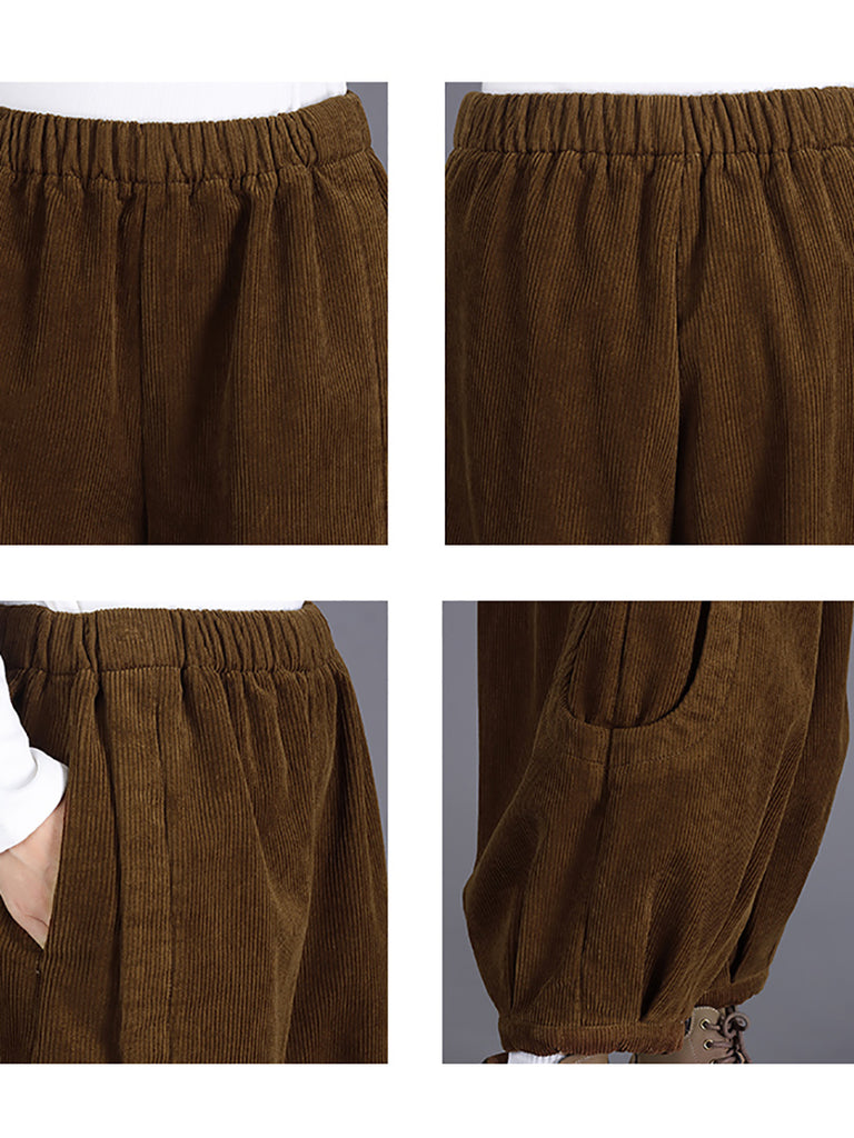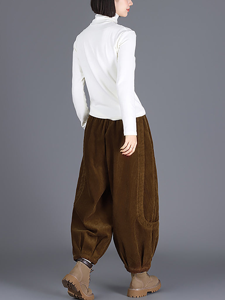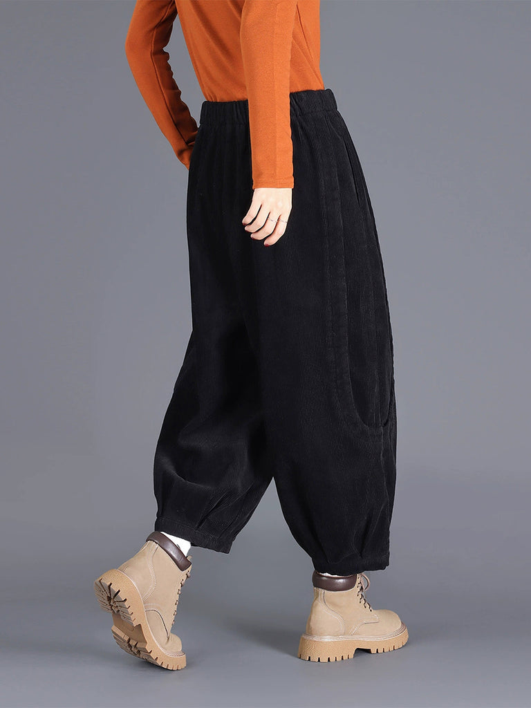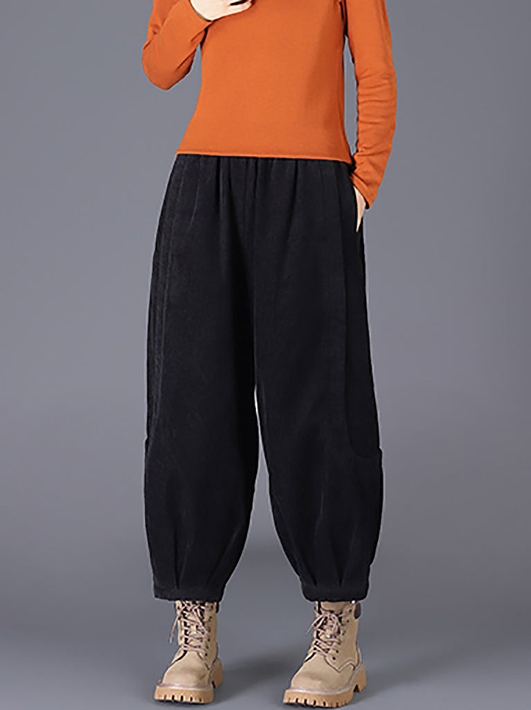 Dámské zimní ležérní manšestrové harémové kalhoty v čistě barevných barvách