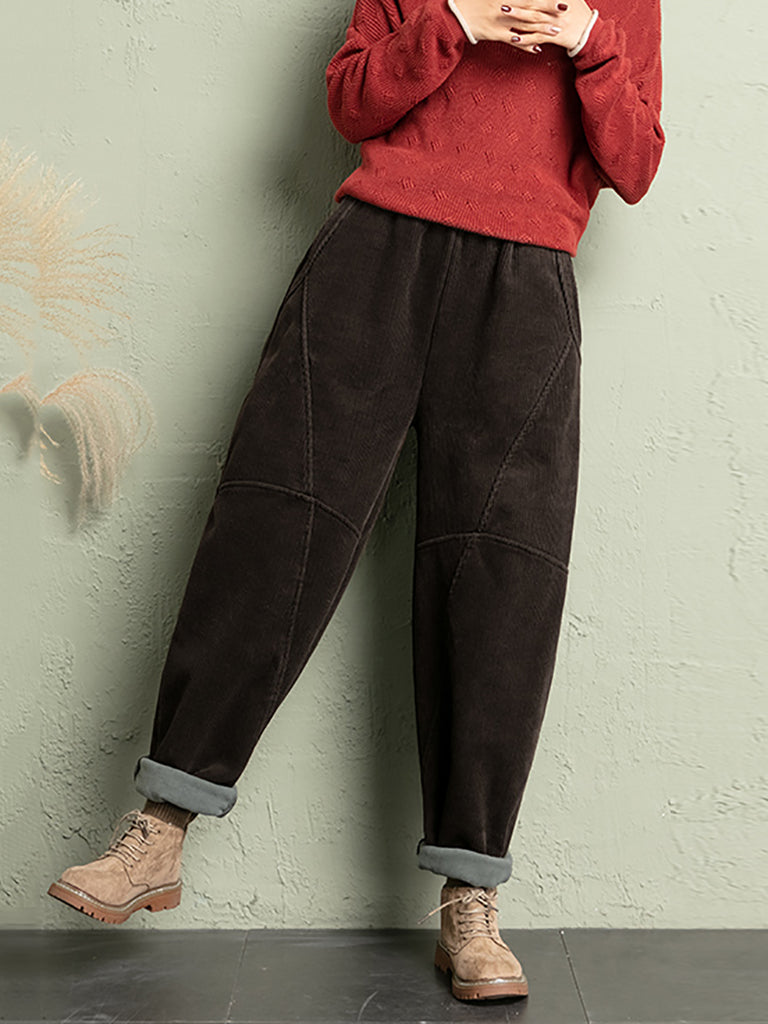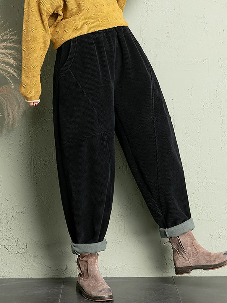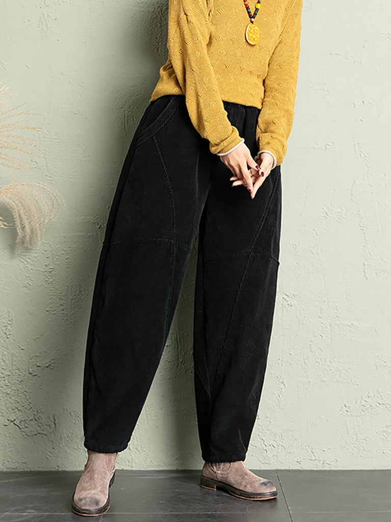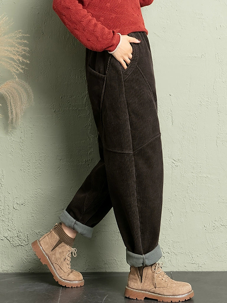 Dámské zimní ležérní manšestrové harémové kalhoty v čistě barevných barvách
