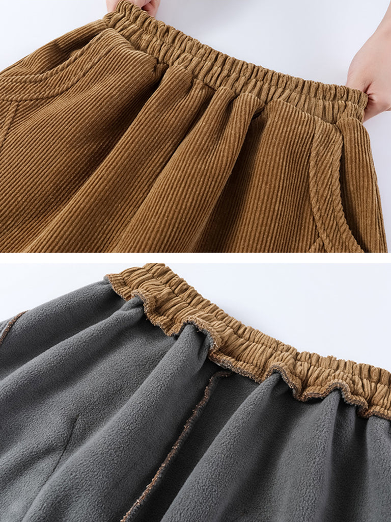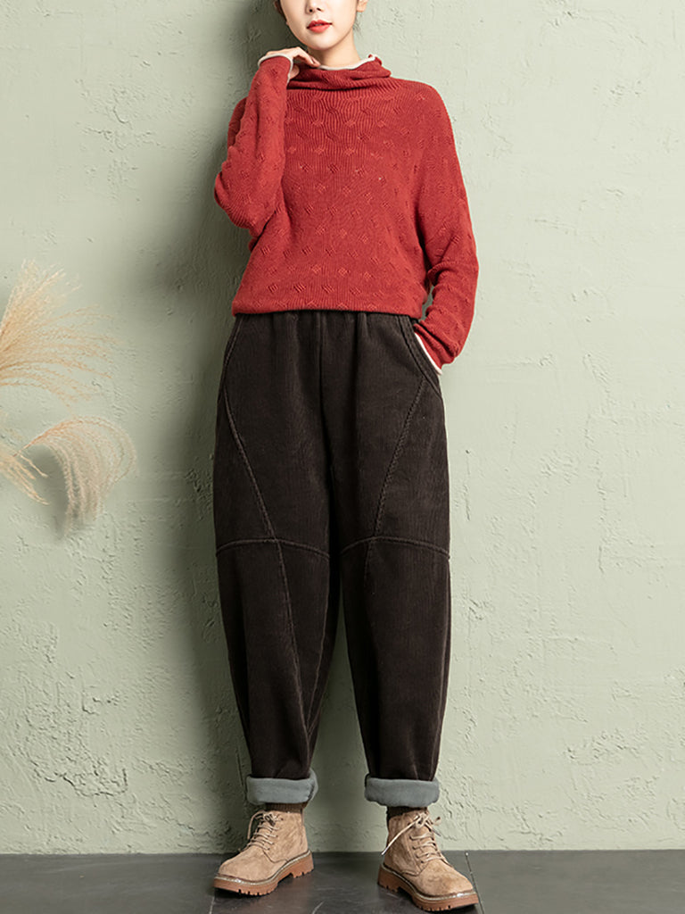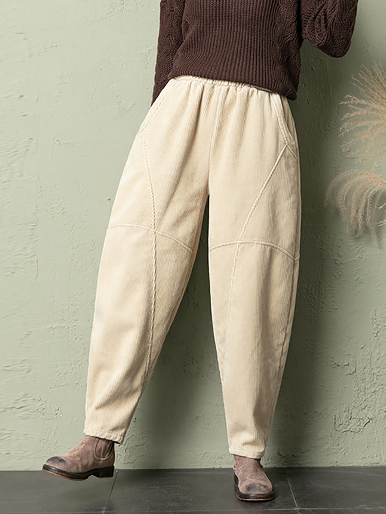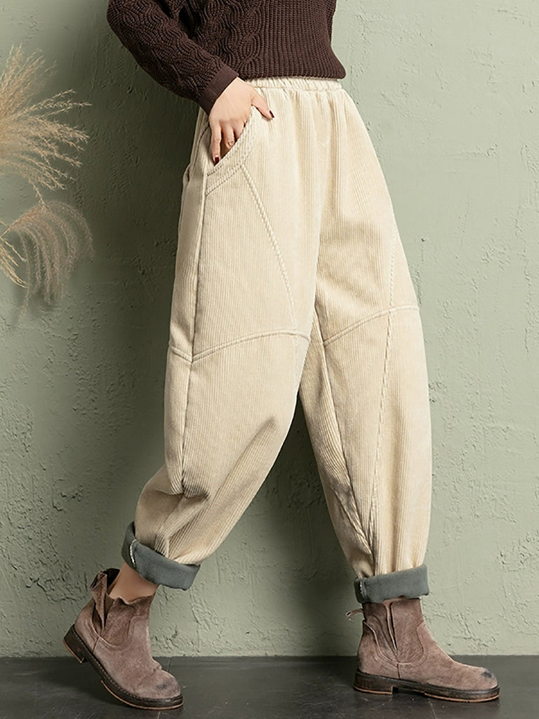 Dámské zimní ležérní manšestrové harémové kalhoty v čistě barevných barvách