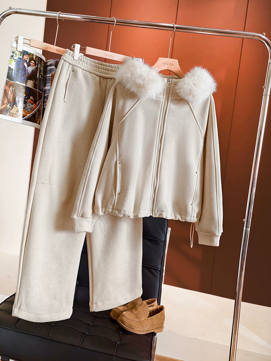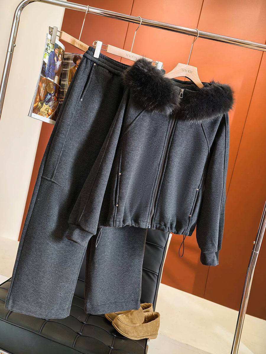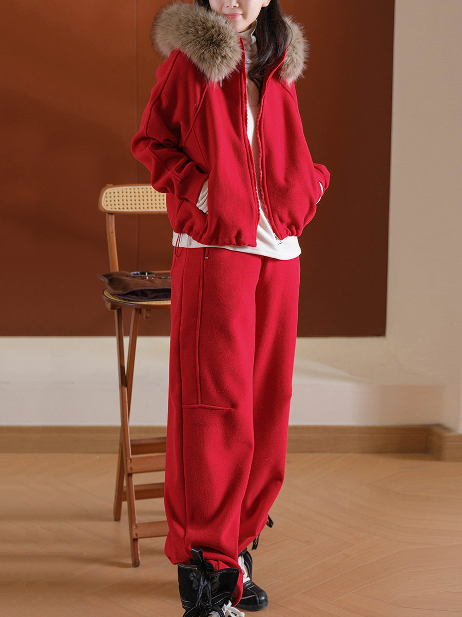 Dámské zimní ležérní obleky s kapucí v čistých barvách