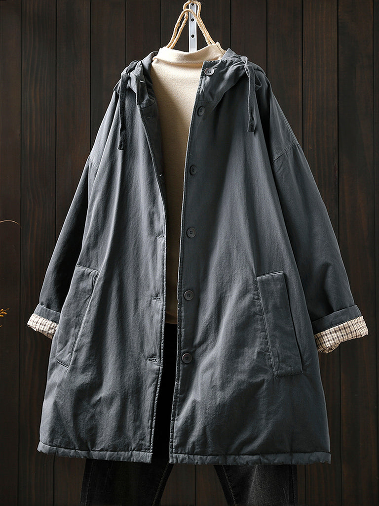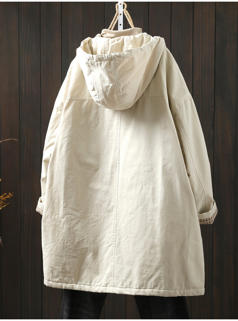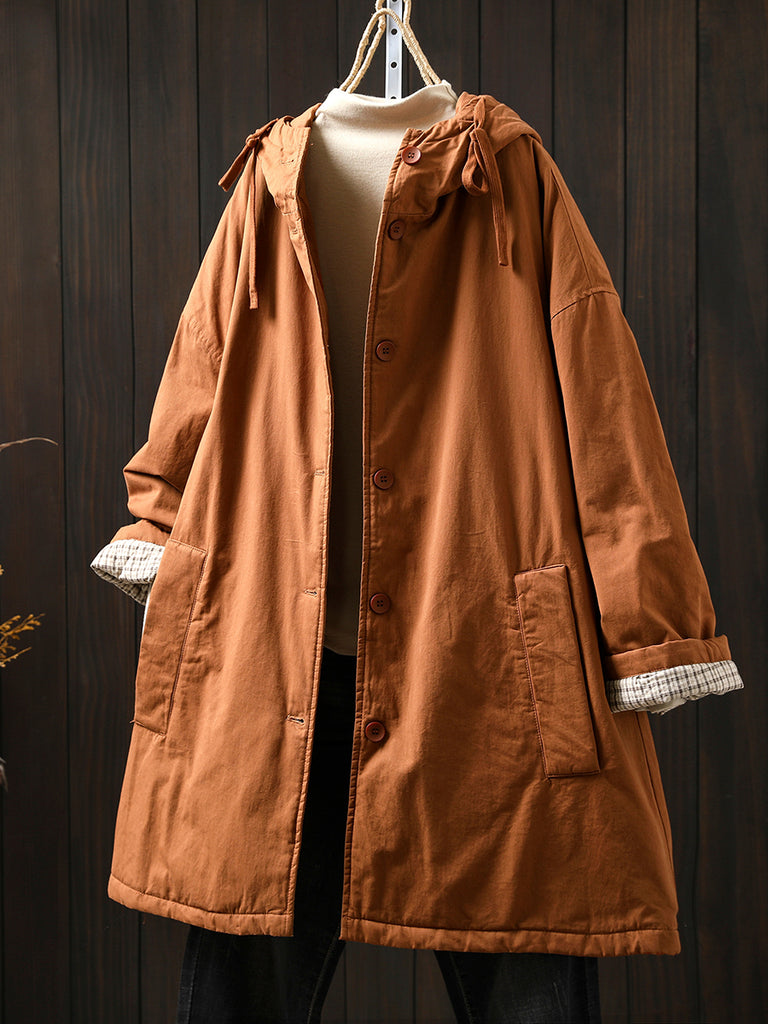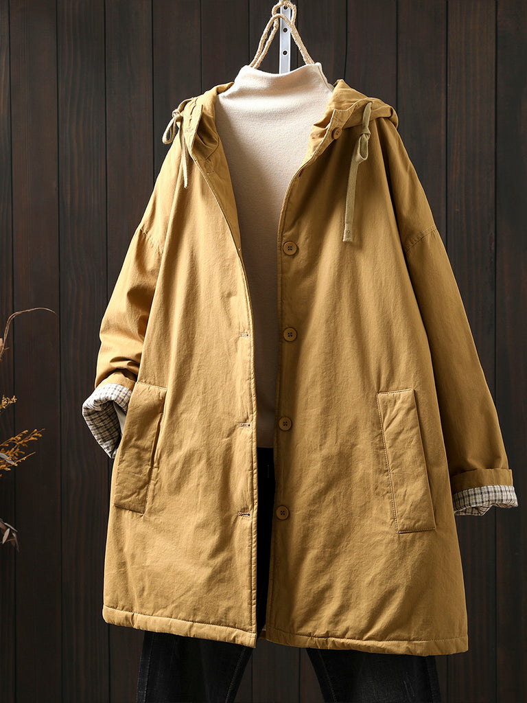Dámský zimní ležérní čistě barevný prošívaný kabát s kapucí