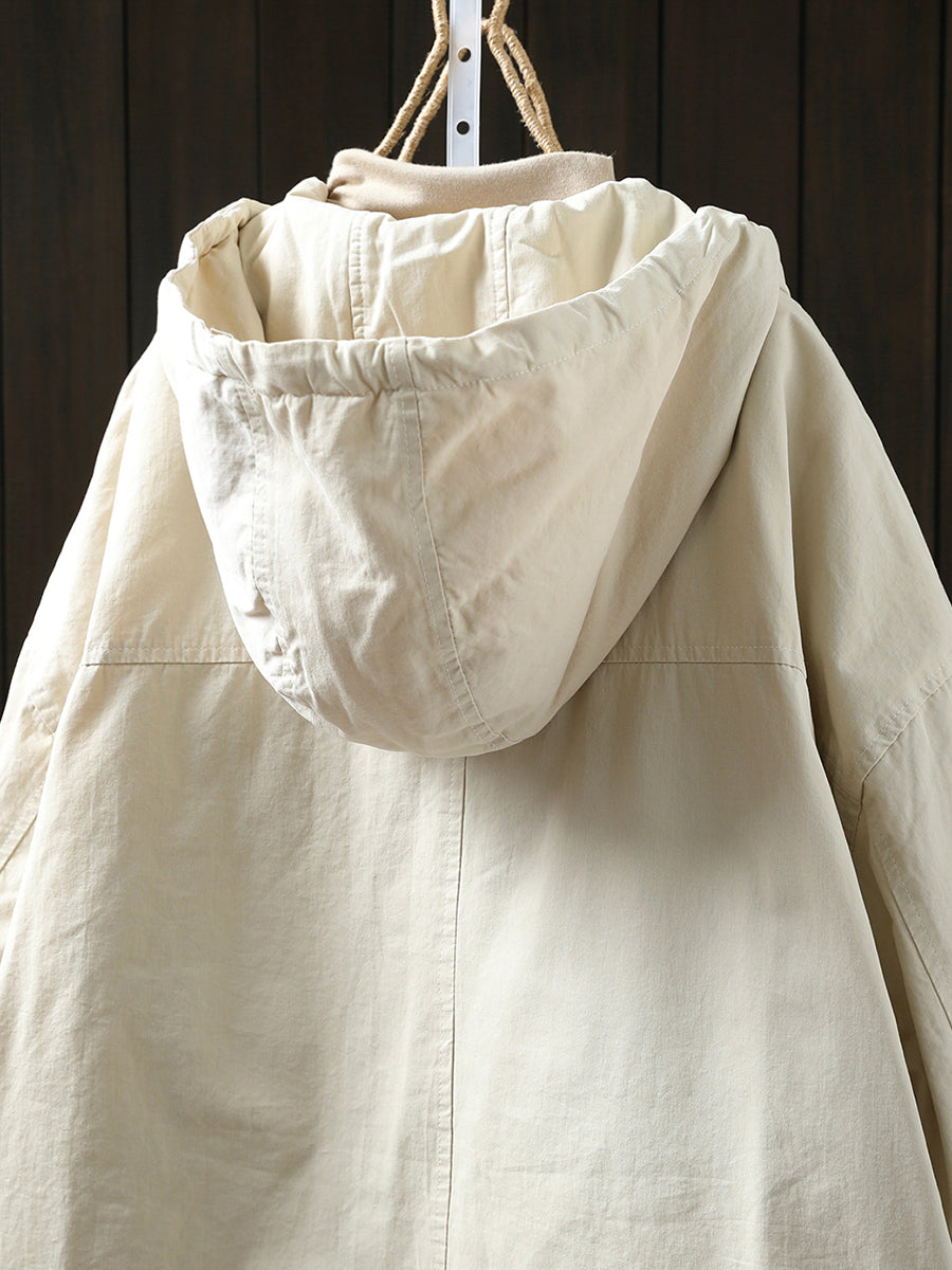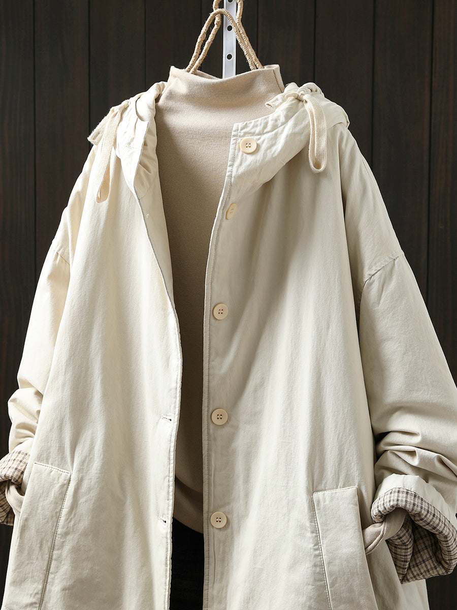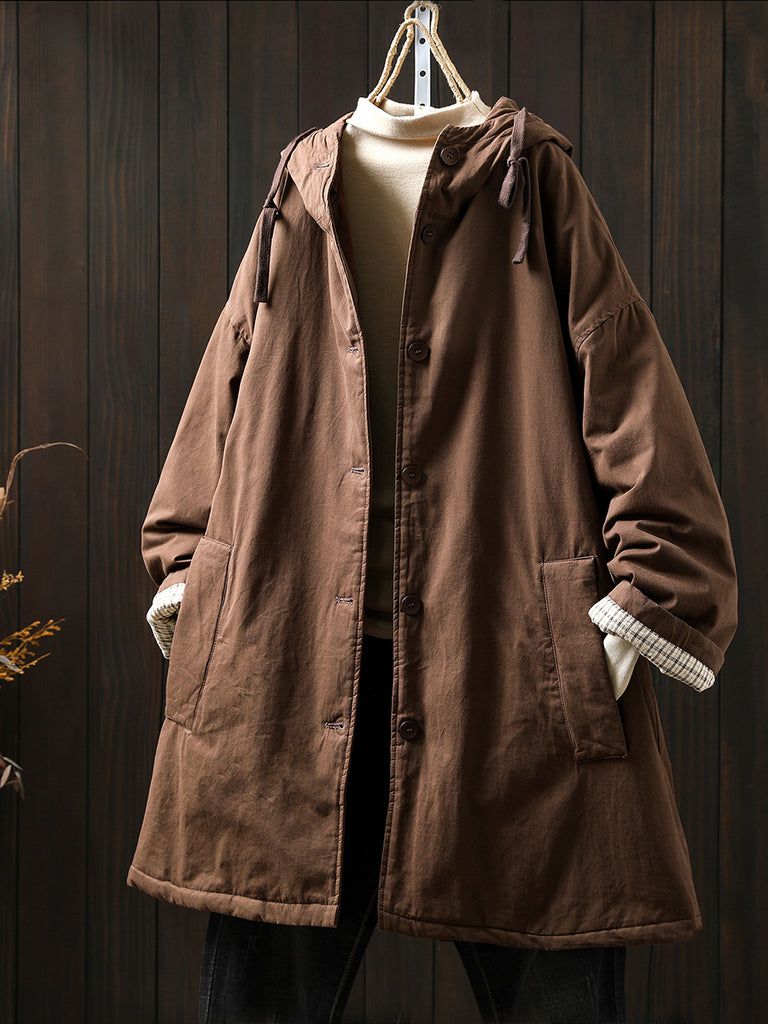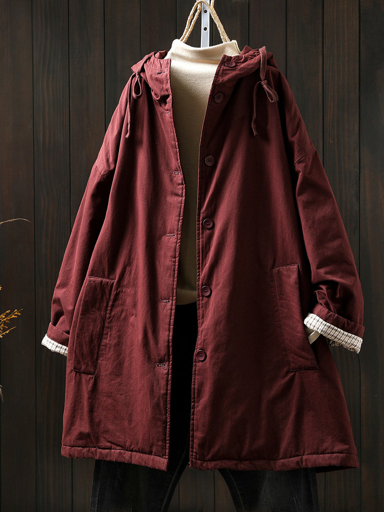 Dámský zimní ležérní čistě barevný prošívaný kabát s kapucí