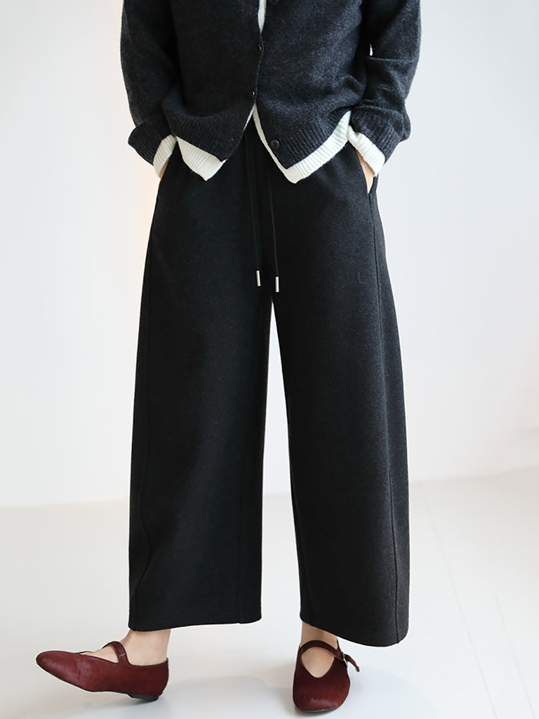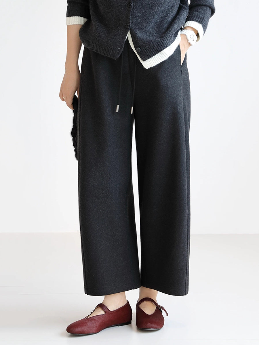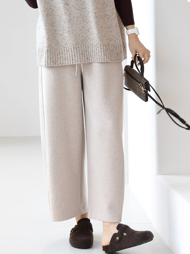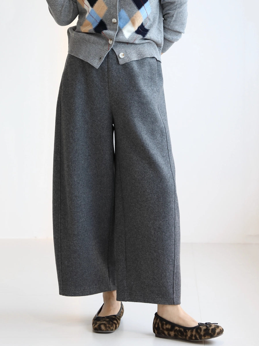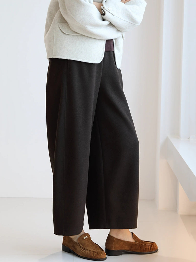 Dámské zimní ležérní kalhoty s širokými nohavicemi v čistých barvách