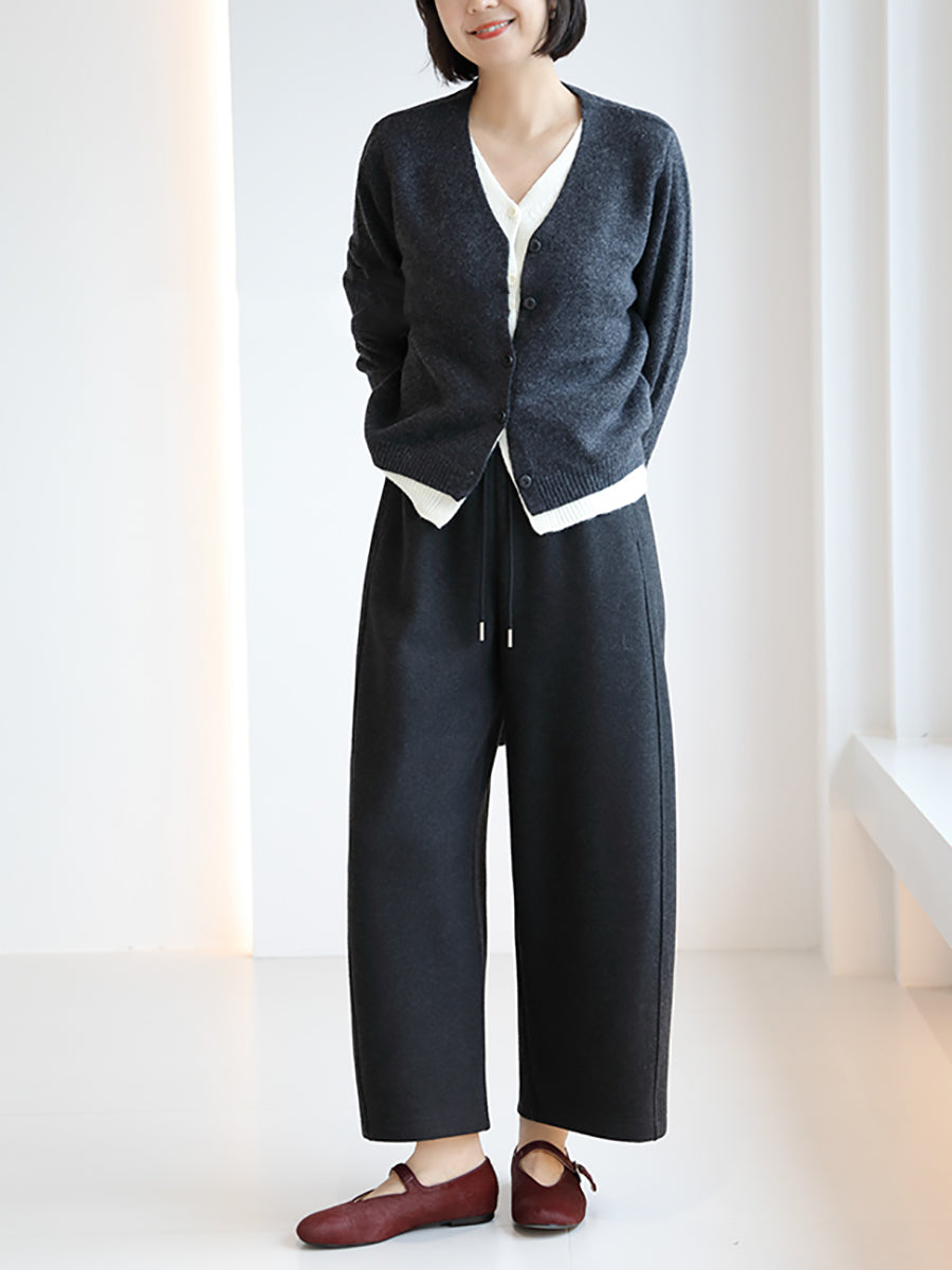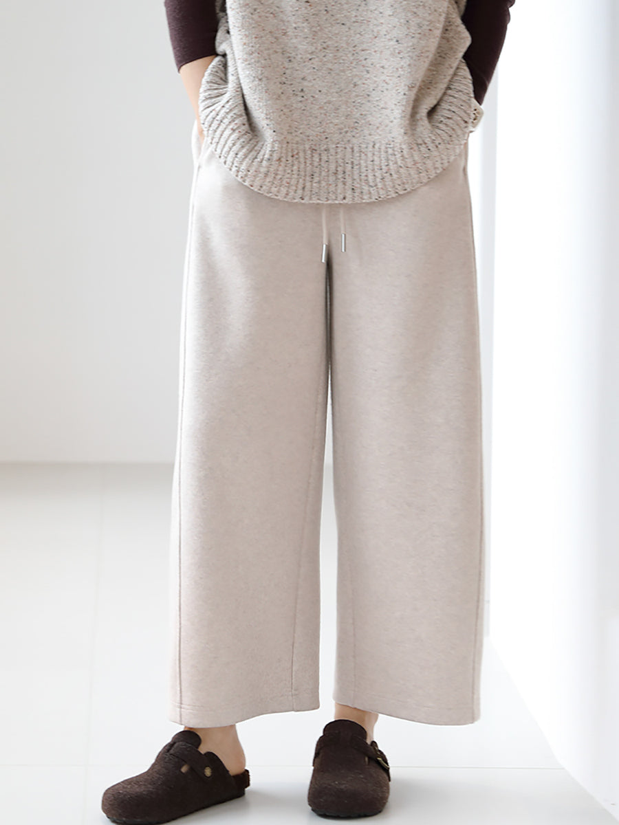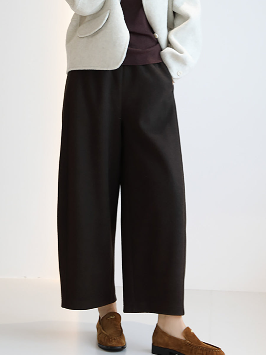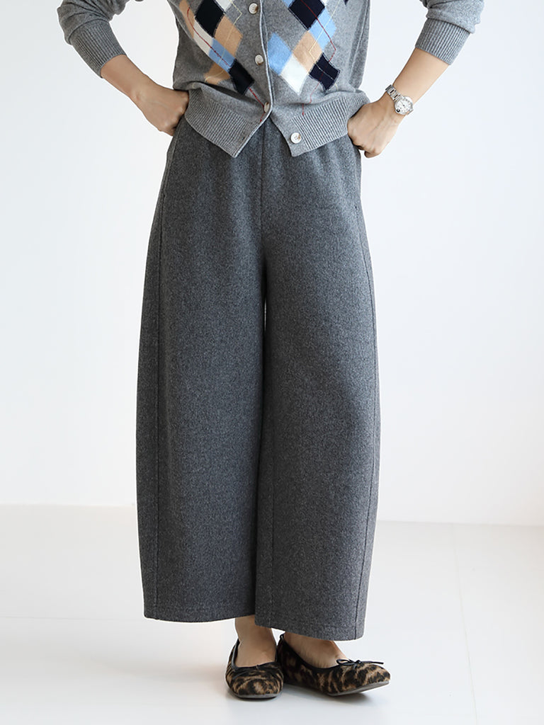 Dámské zimní ležérní kalhoty s širokými nohavicemi v čistých barvách