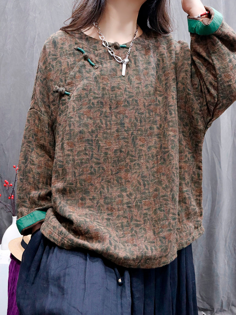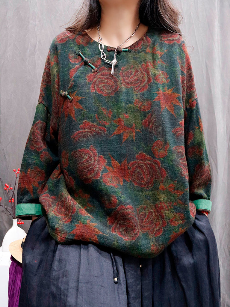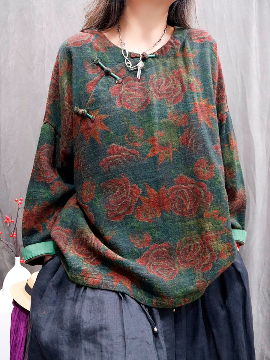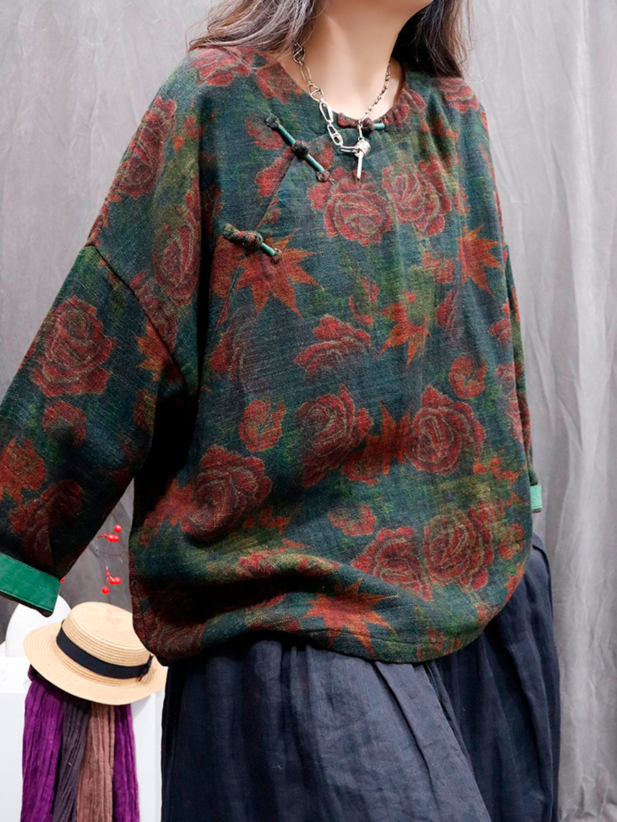 Dámská zimní etnická květinová halenka s výstřihem do O-neck