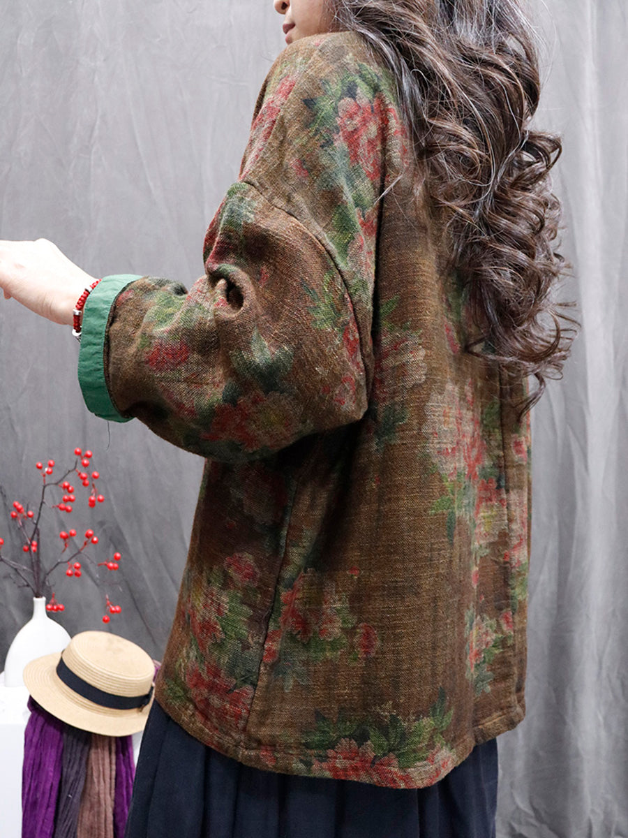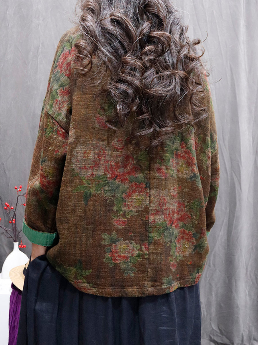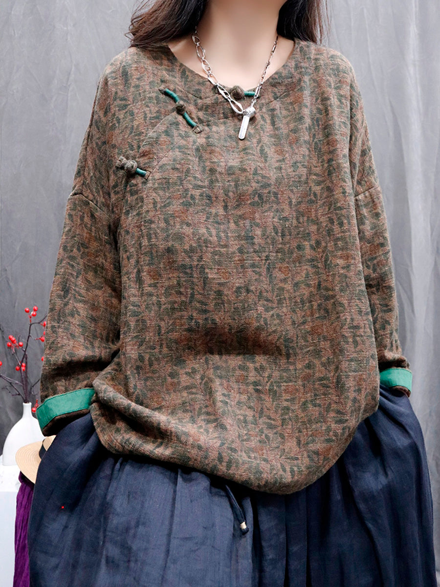 Dámská zimní etnická květinová halenka s výstřihem do O-neck