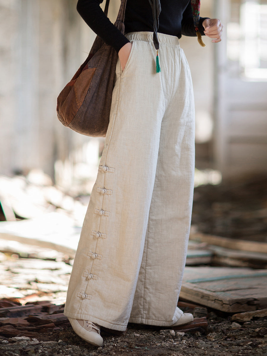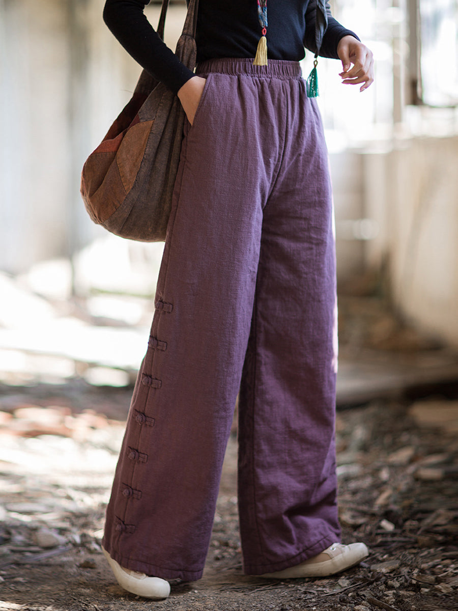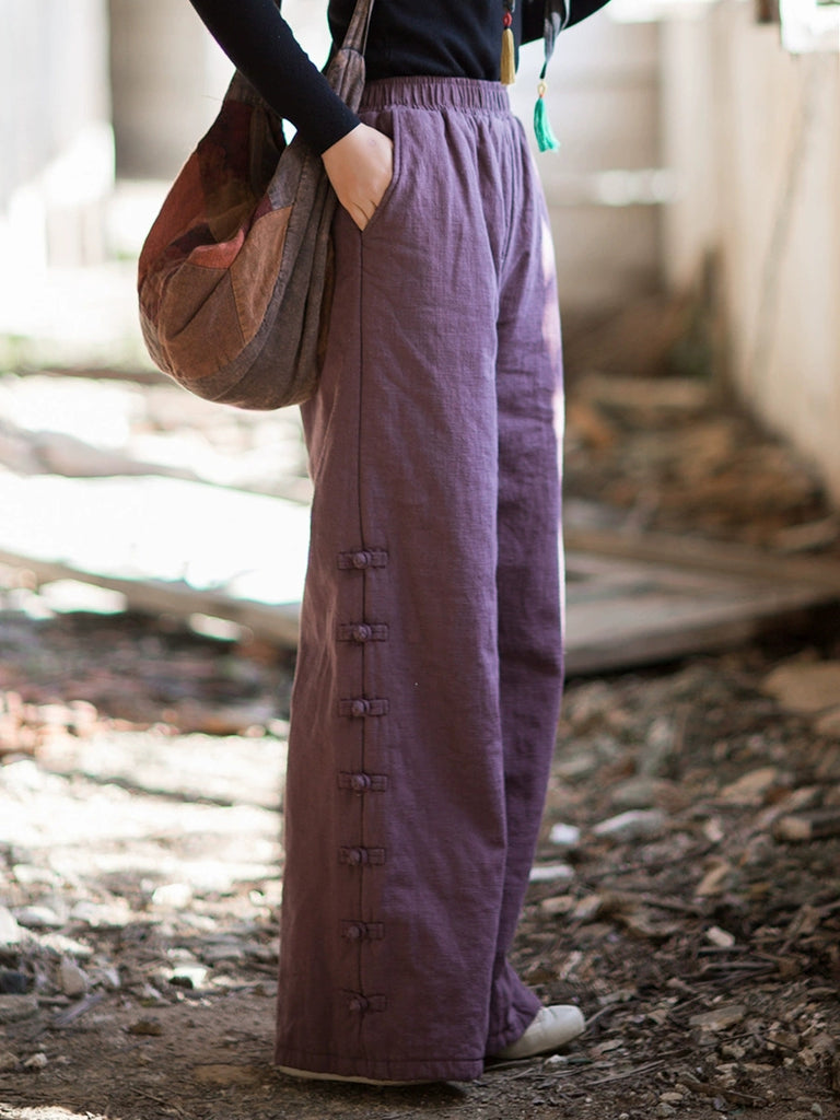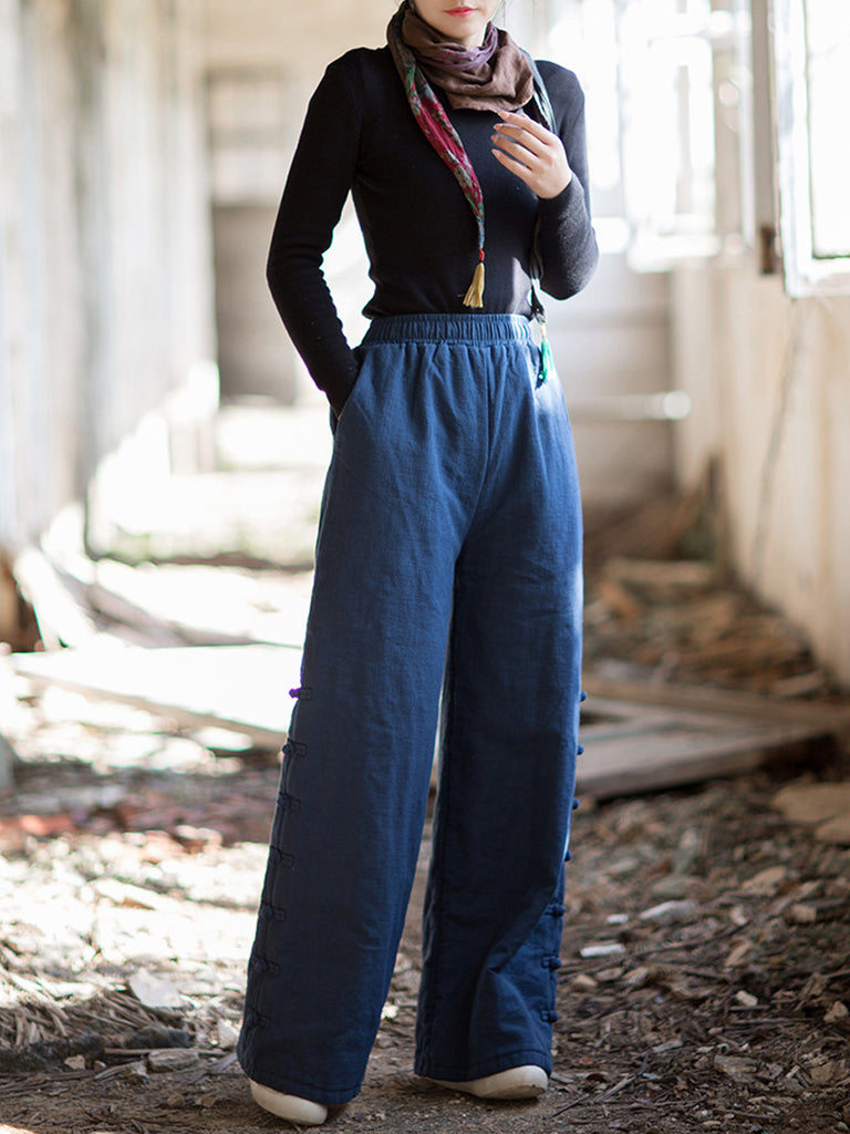 Dámské zimní etnické čisté barvy rovné kalhoty
