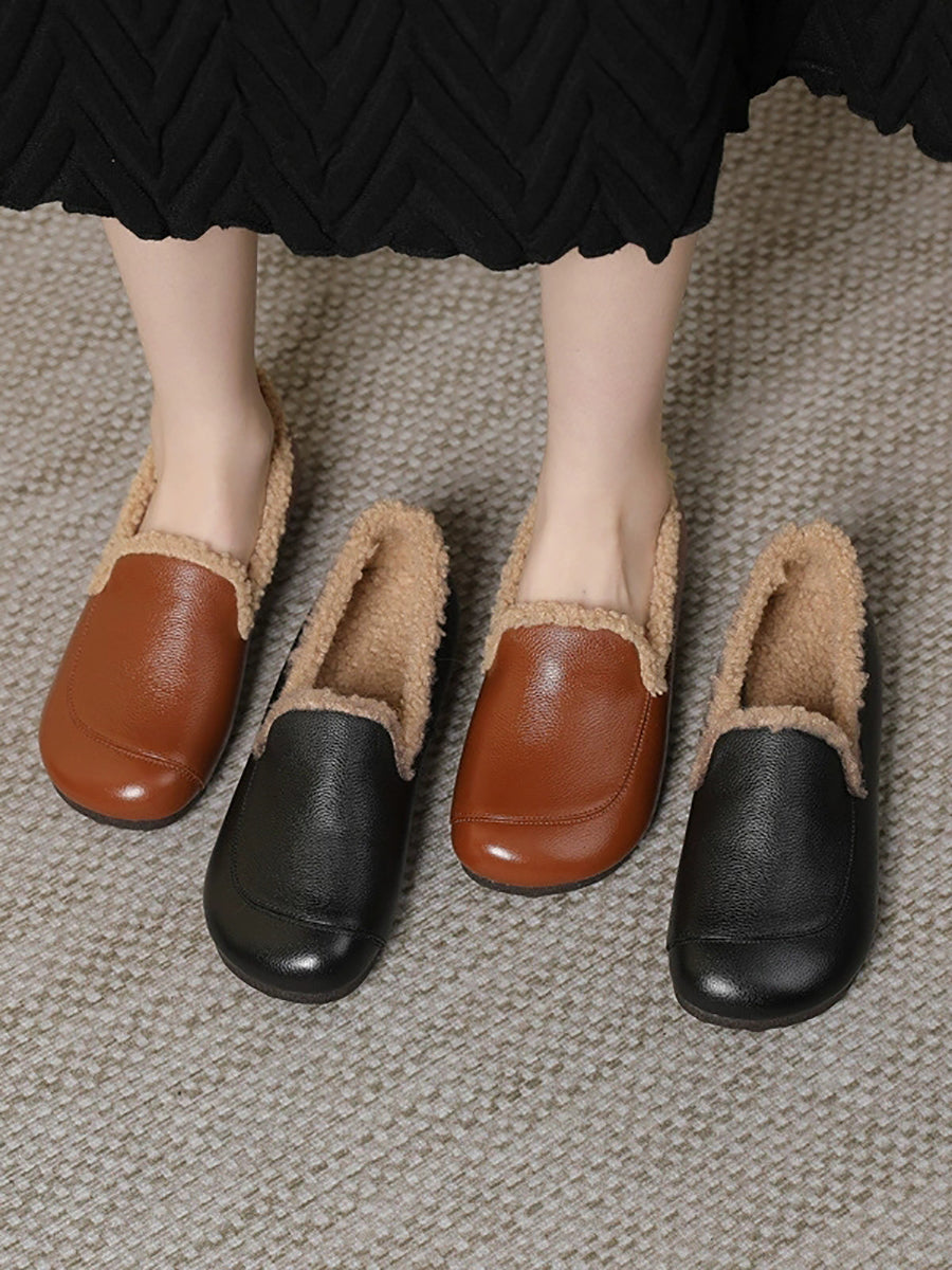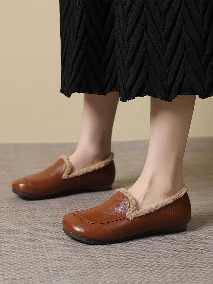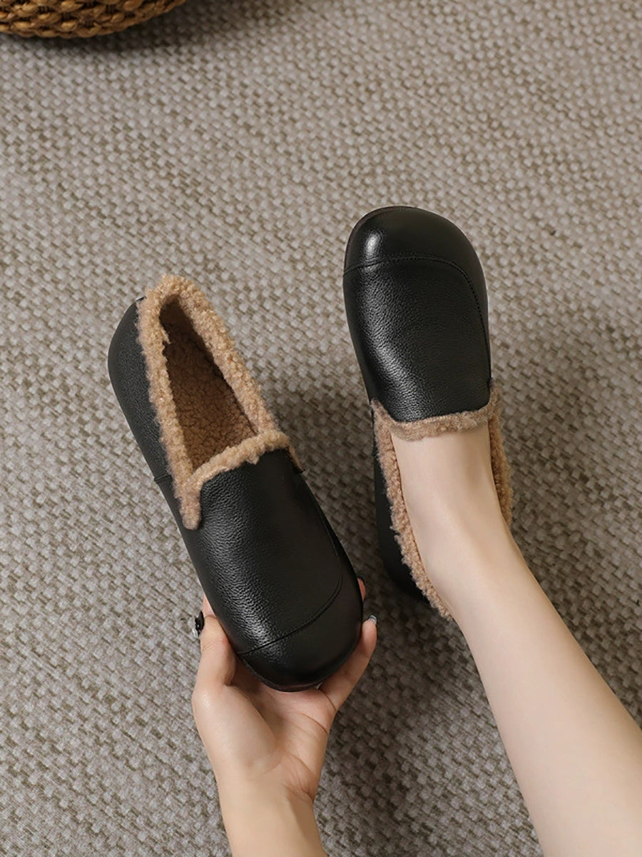 Dámské zimní boty na nízkém podpatku z pravé kůže s fleecovou podšívkou