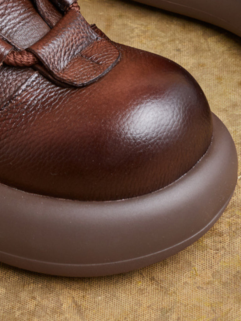 Dámské zimní kotníkové boty na platformě z pravé kůže