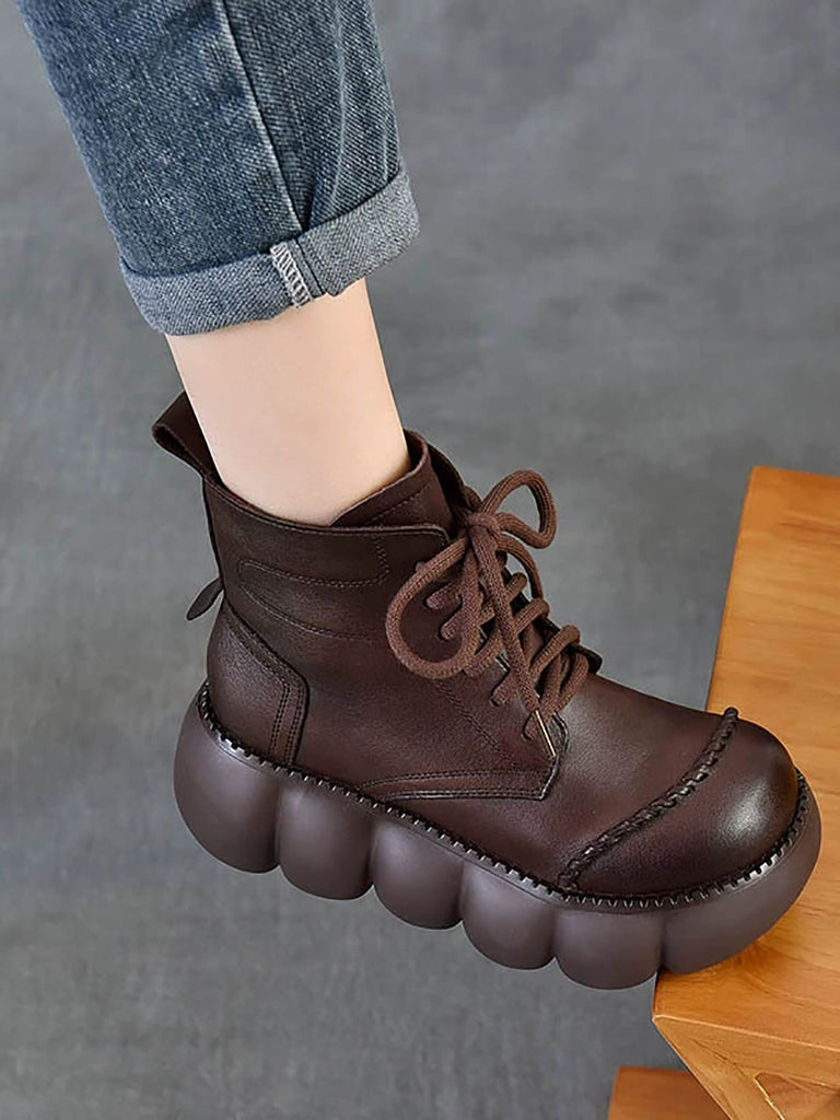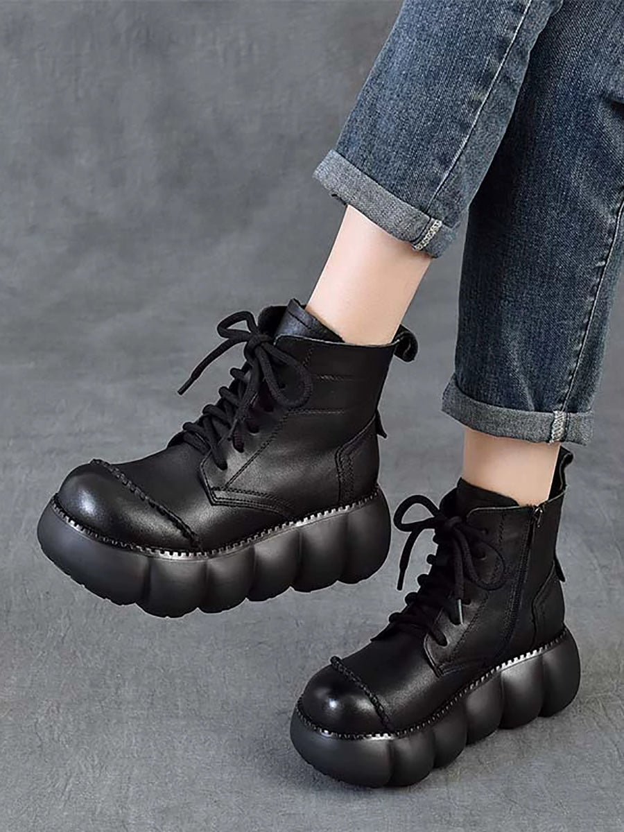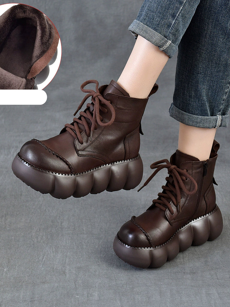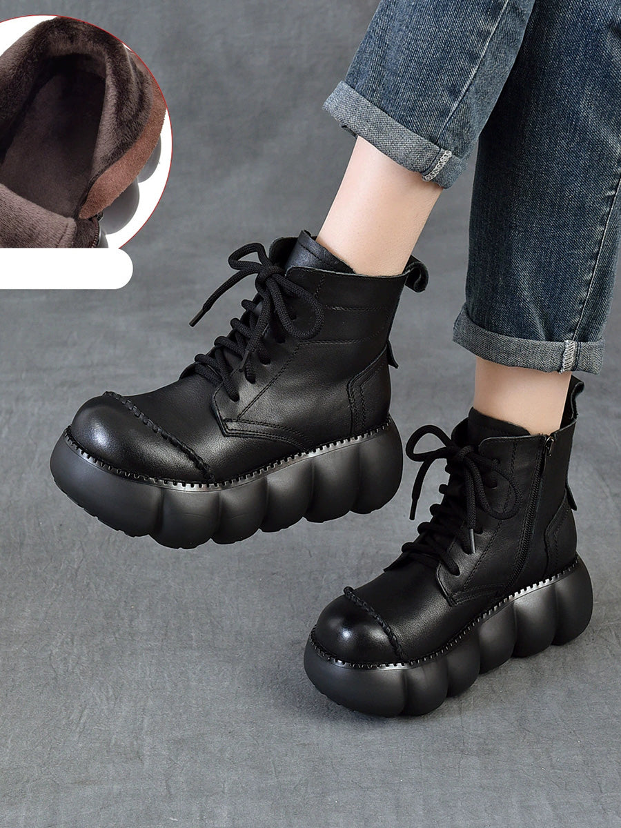 Dámské zimní kotníkové boty na platformě z pravé kůže