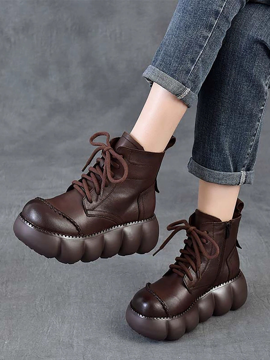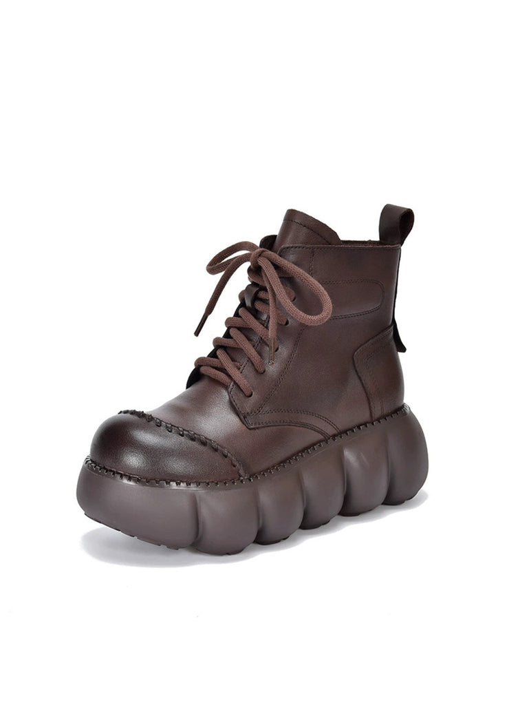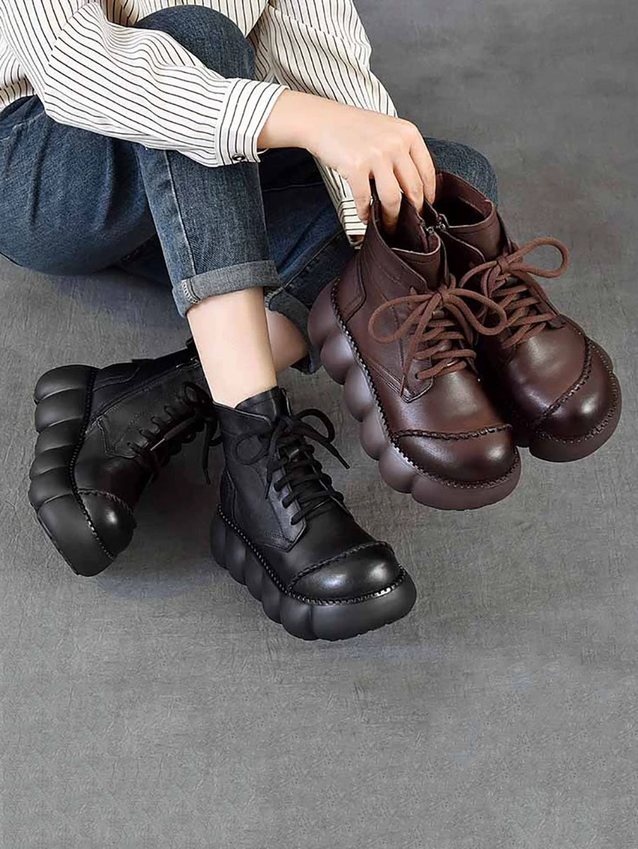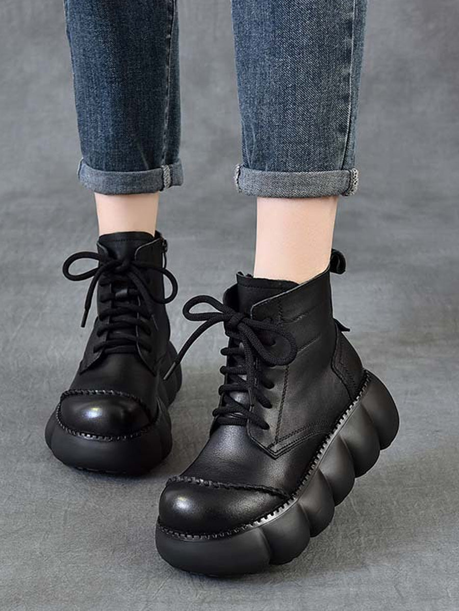 Dámské zimní kotníkové boty na platformě z pravé kůže
