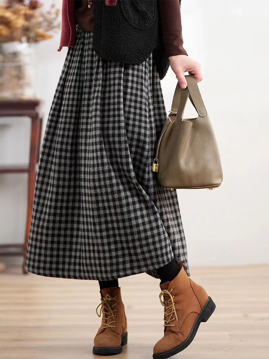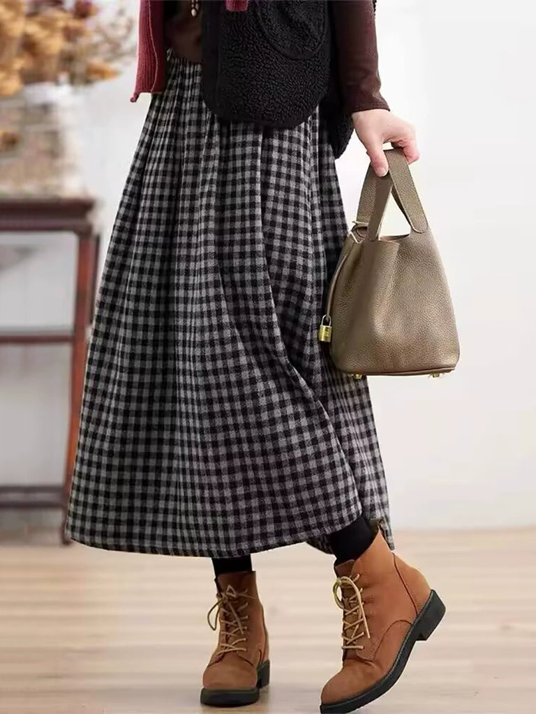 Dámská zimní kostkovaná silná sukně ve tvaru A