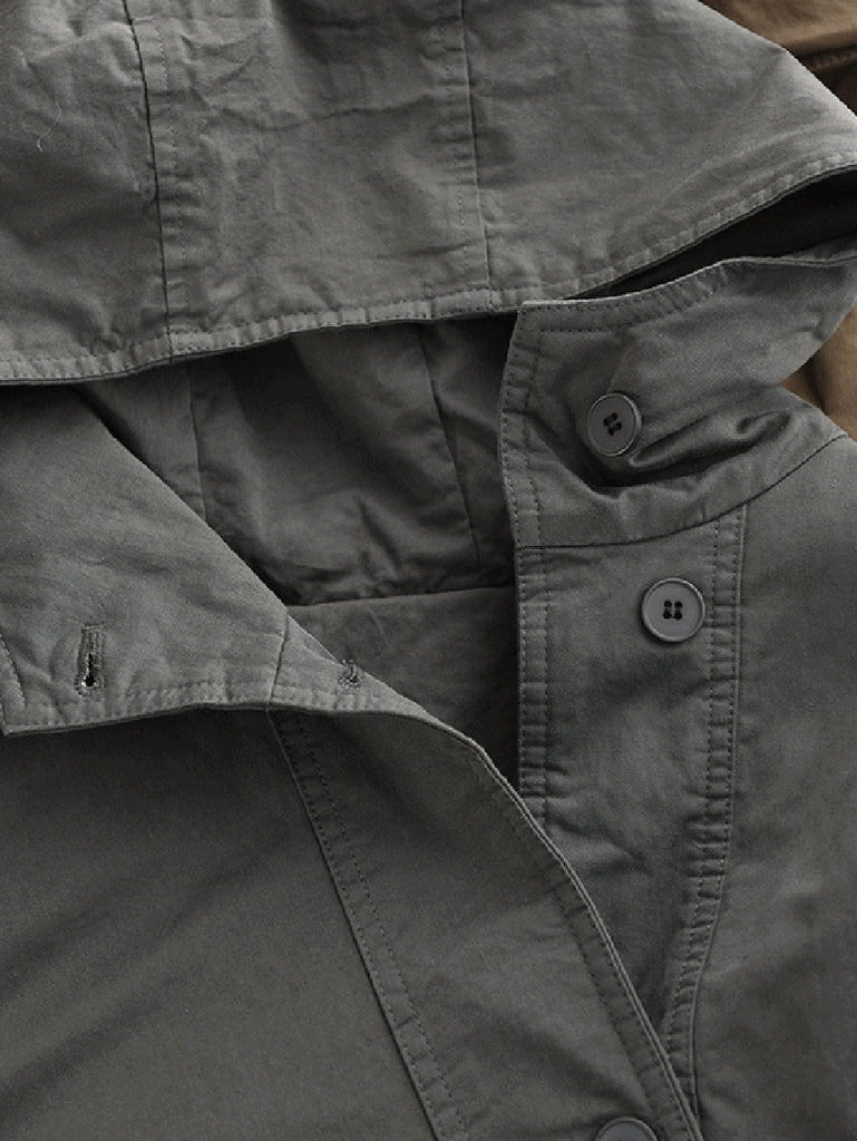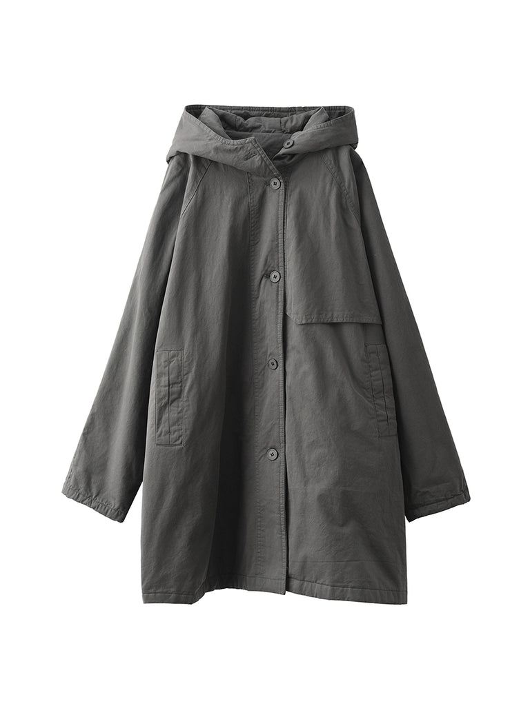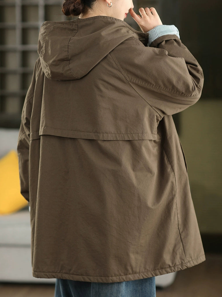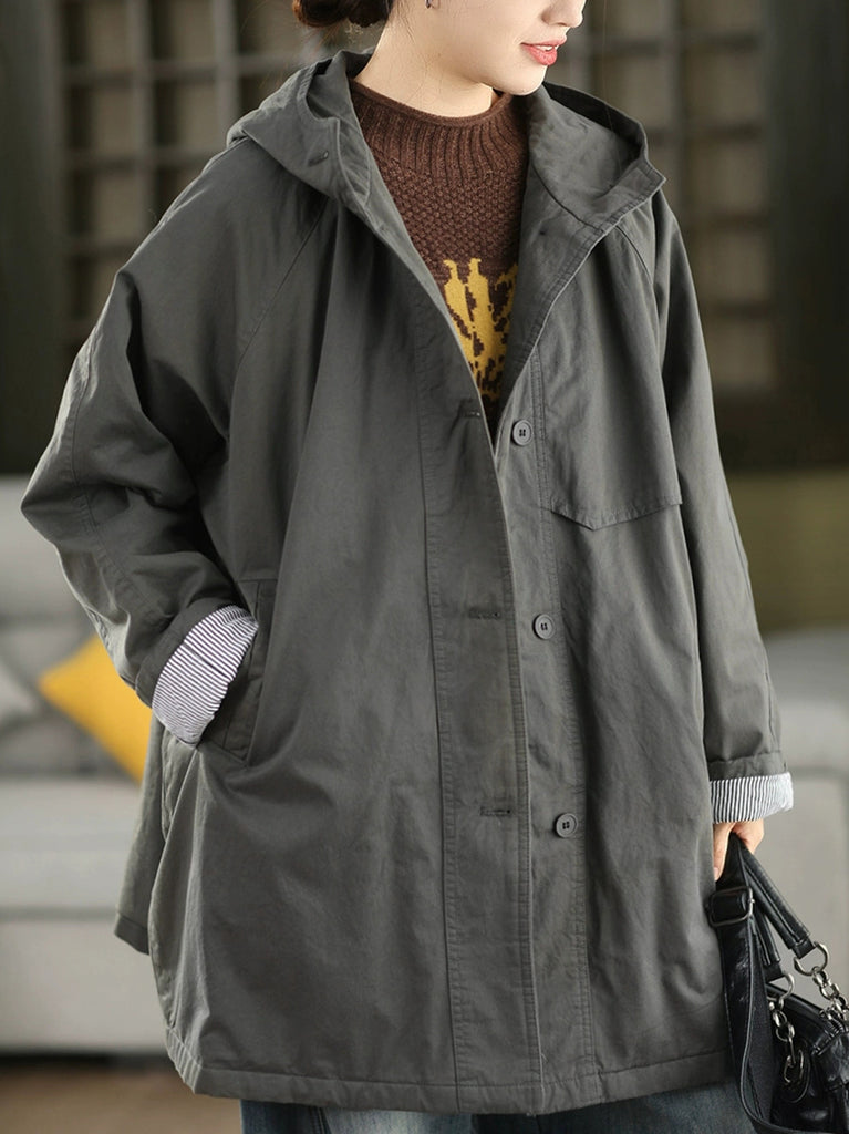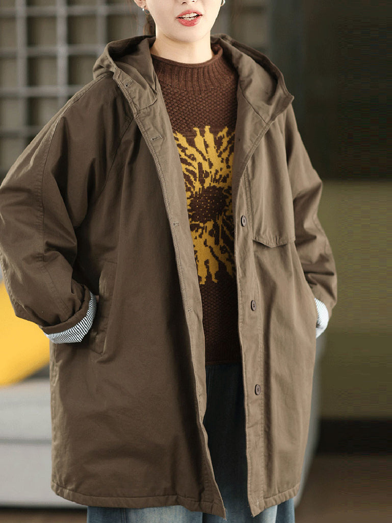 Dámský zimní čistě barevný 100% bavlněný prošívaný kabát s kapucí
