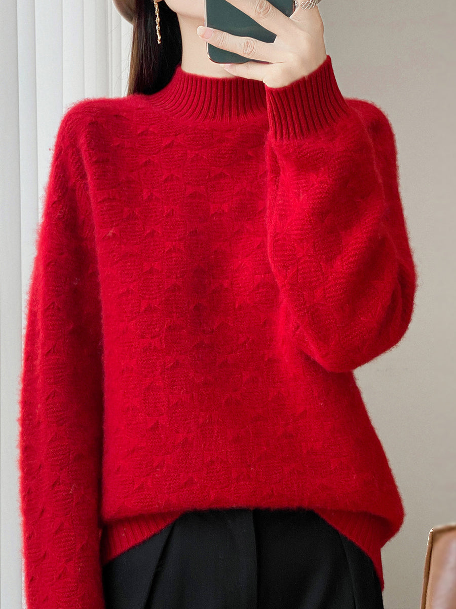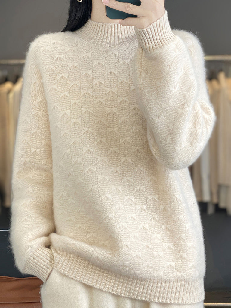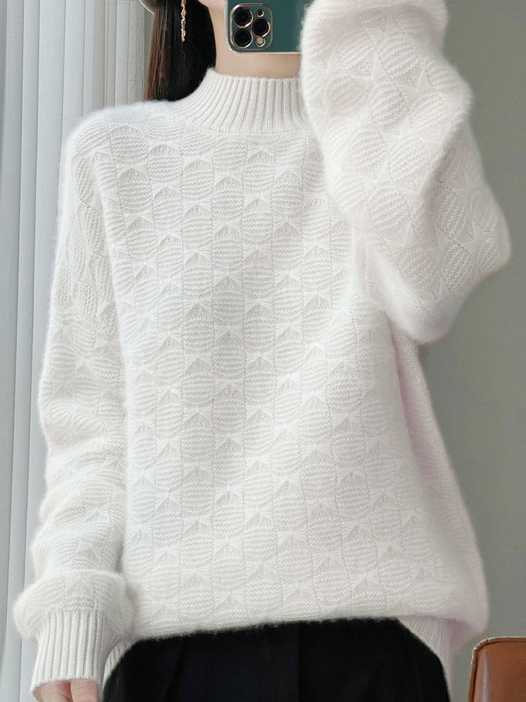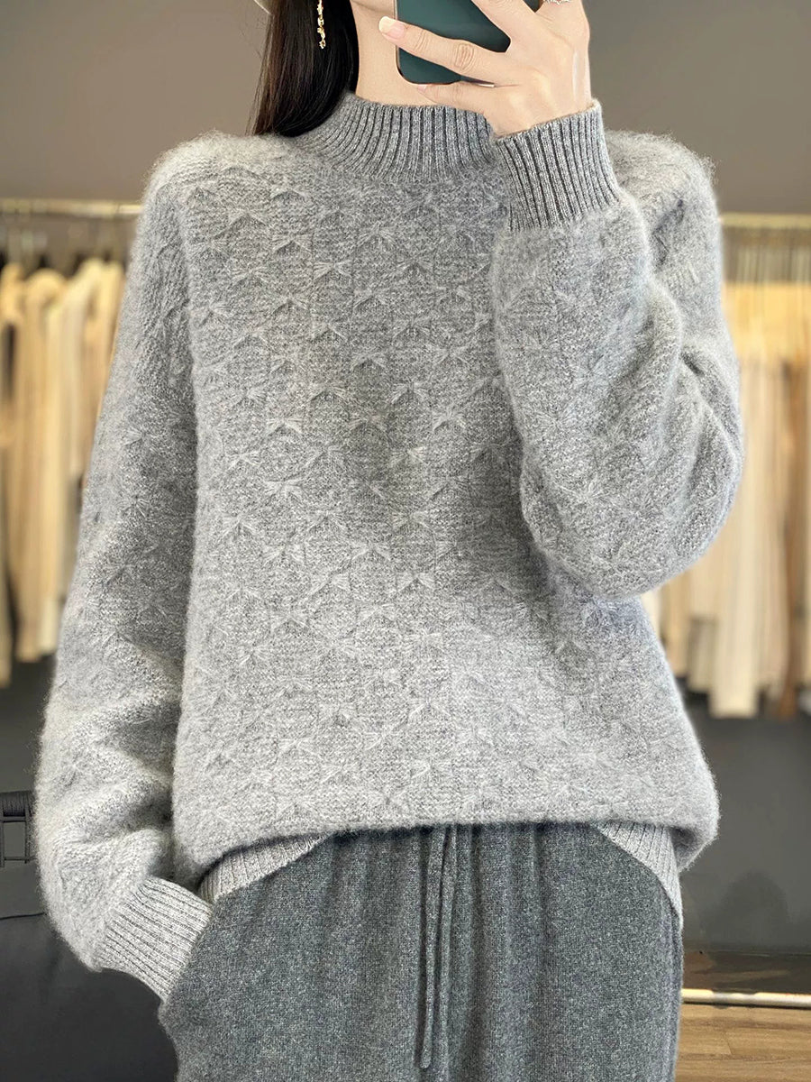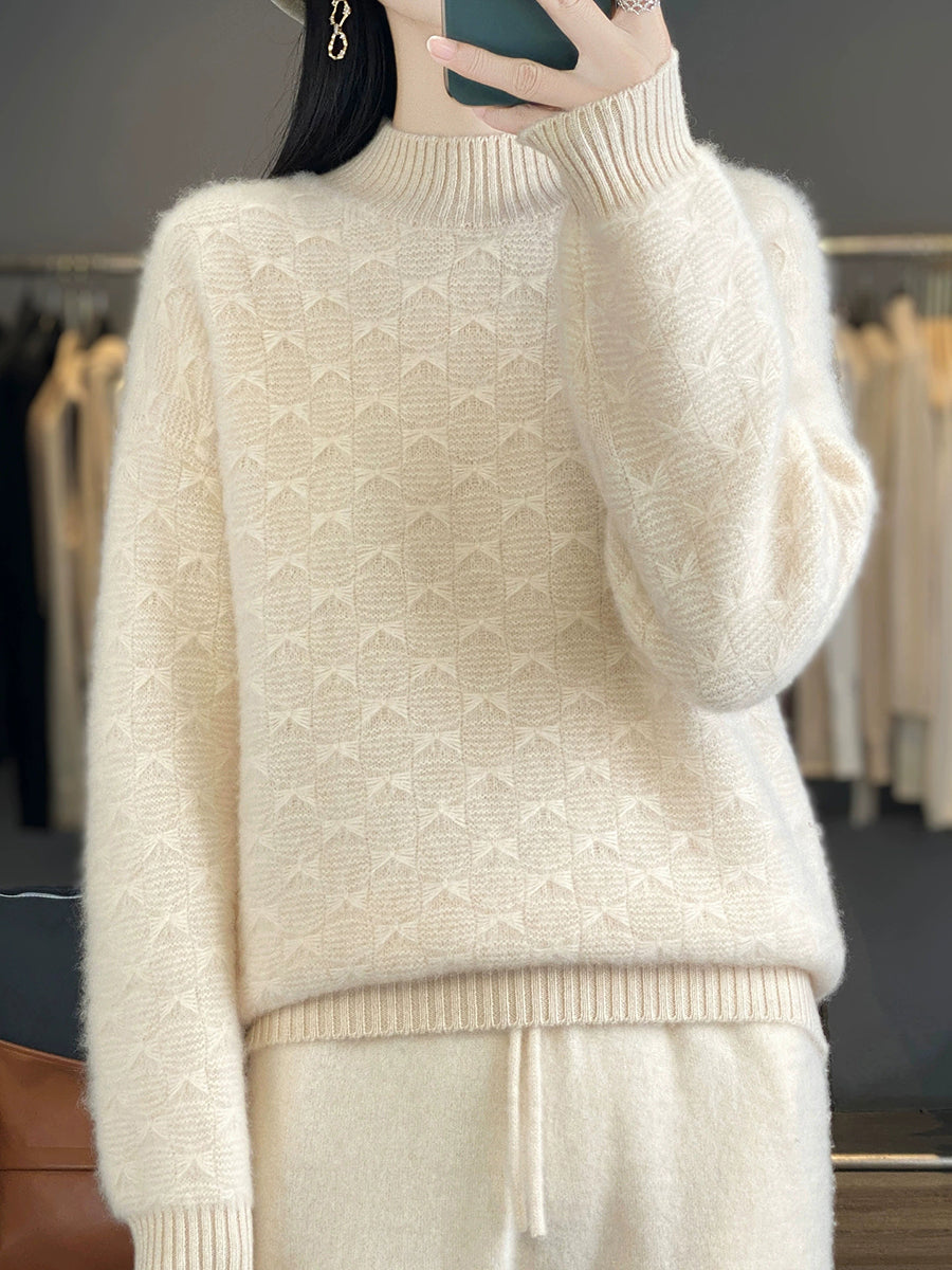 Dámský zimní pletený svetr s mašlí v čisté barvě a polovičním rolákem