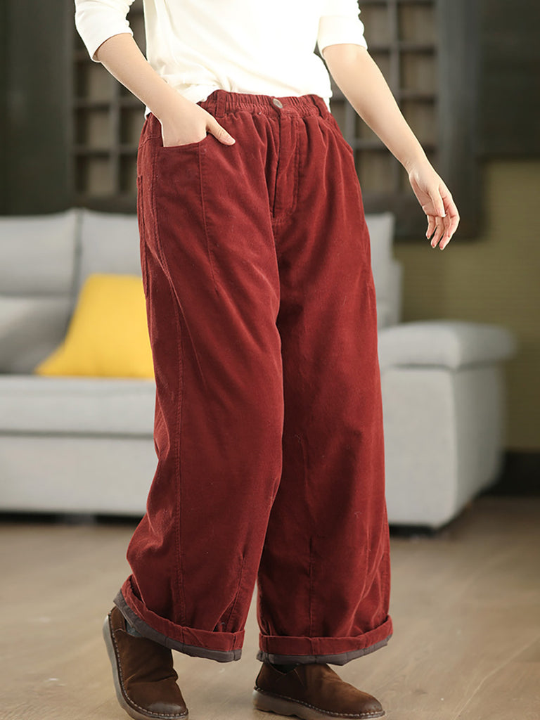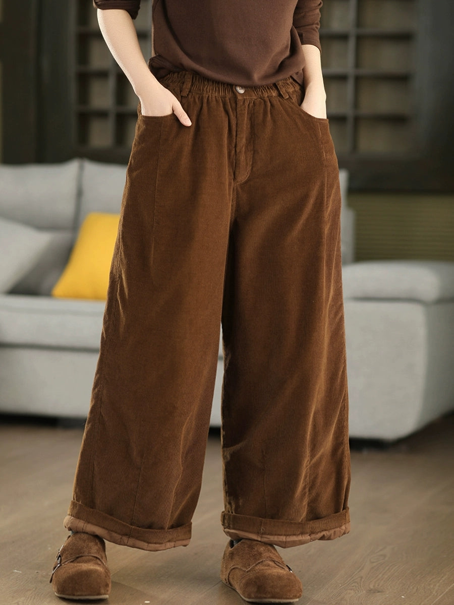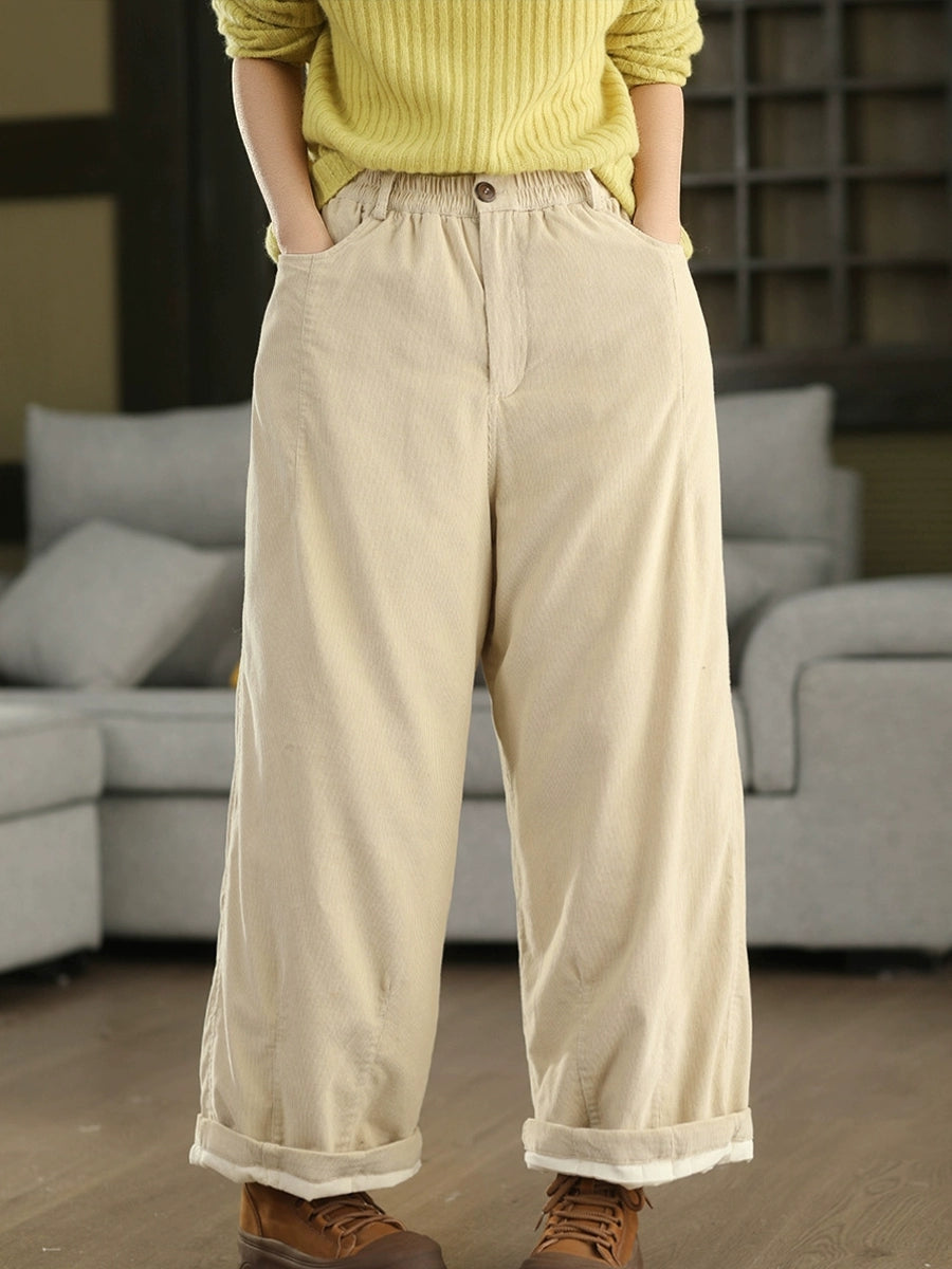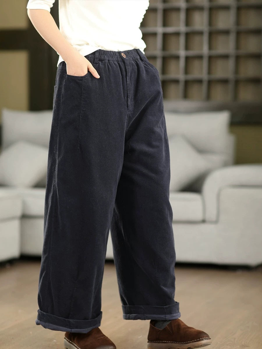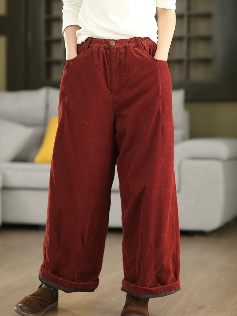 Dámské zimní manšestrové polstrované harémové kalhoty v čisté barvě