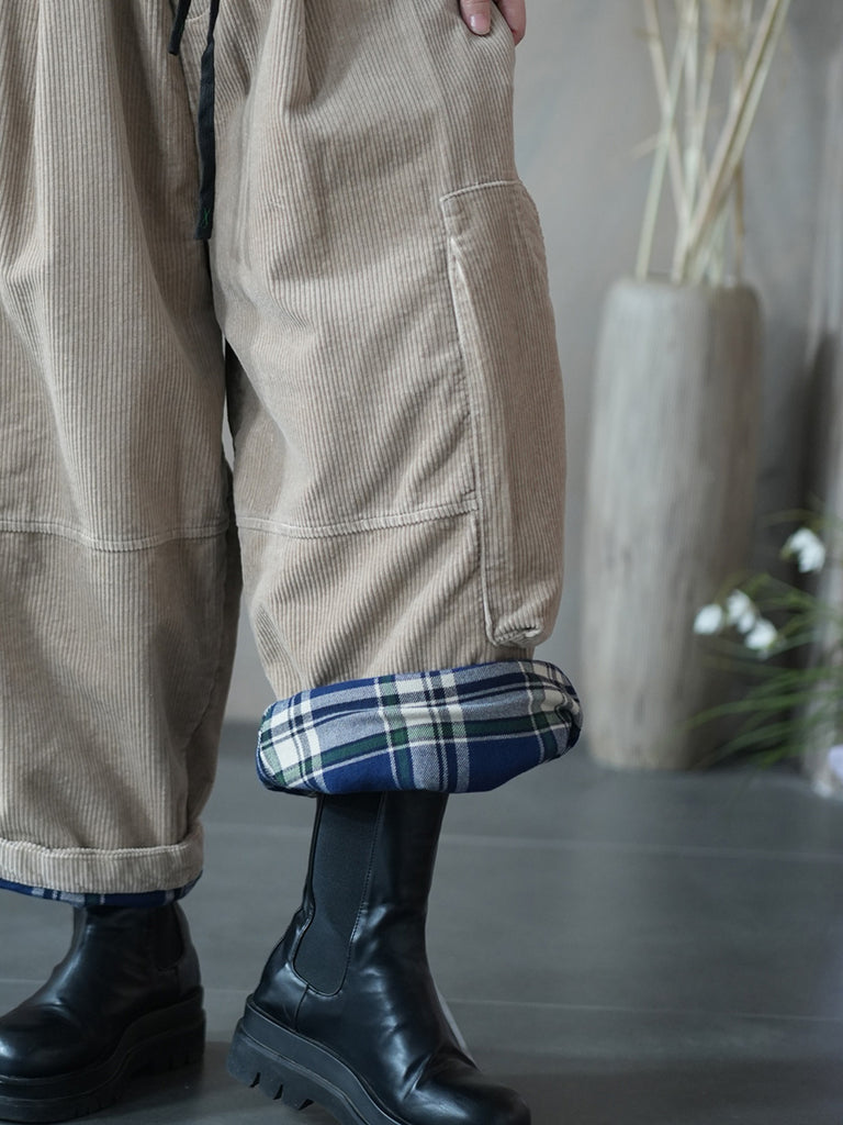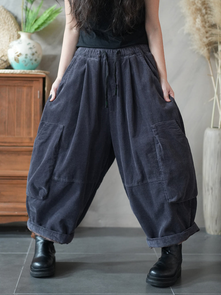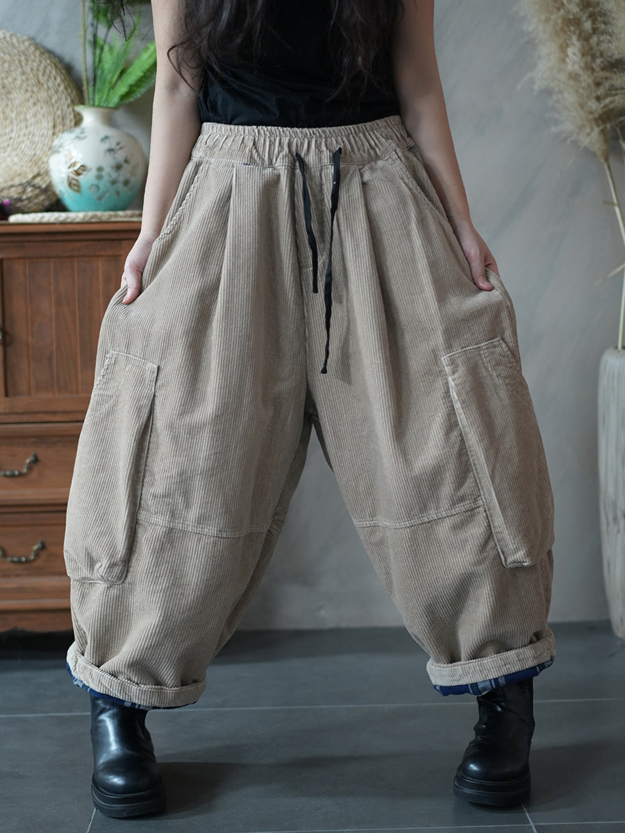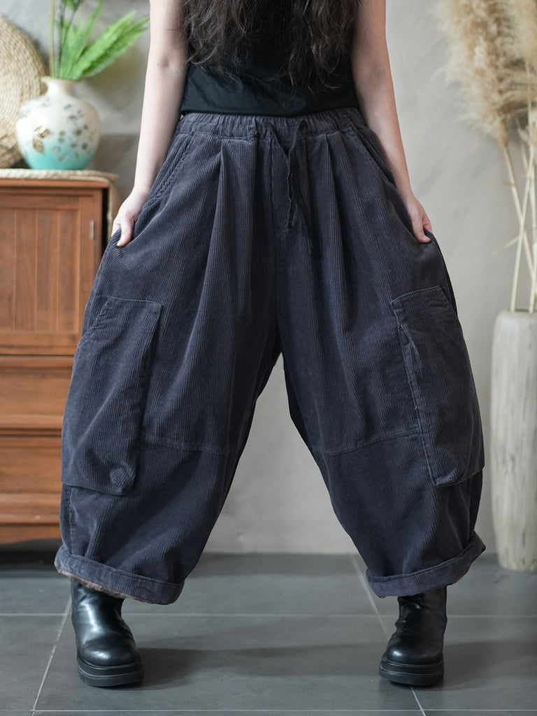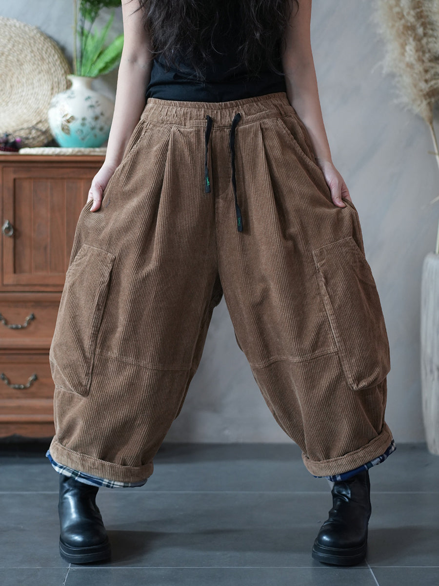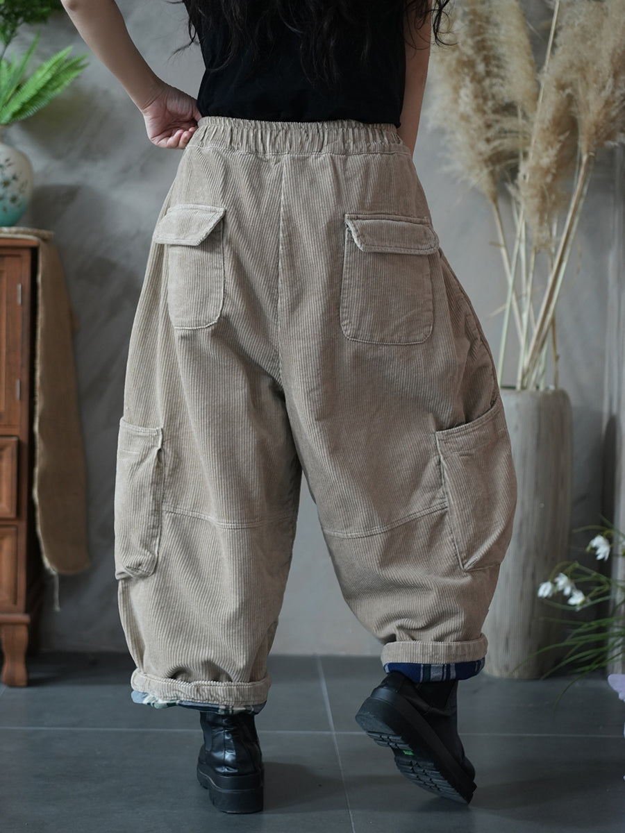 Dámské zimní manšestrové polstrované harémové kalhoty v čisté barvě