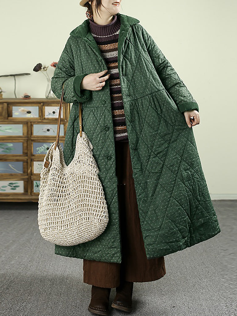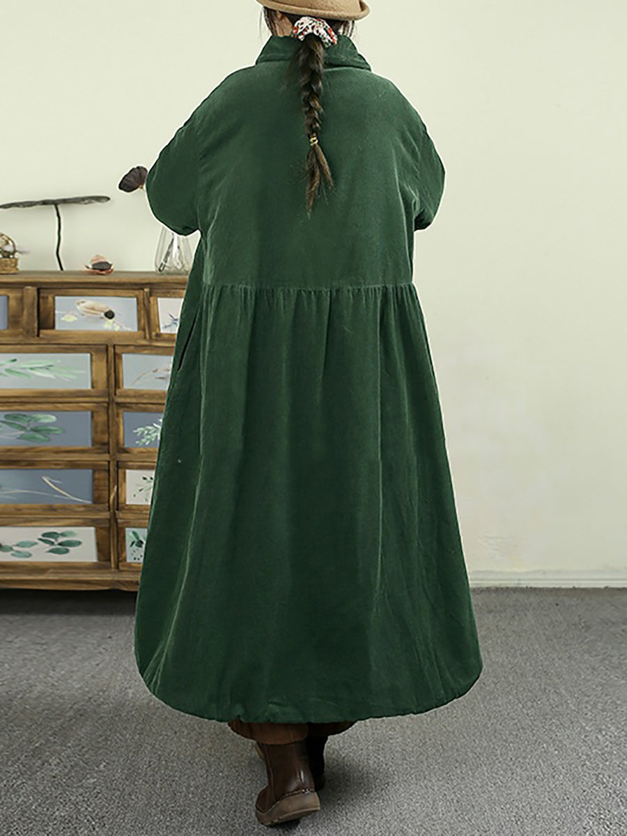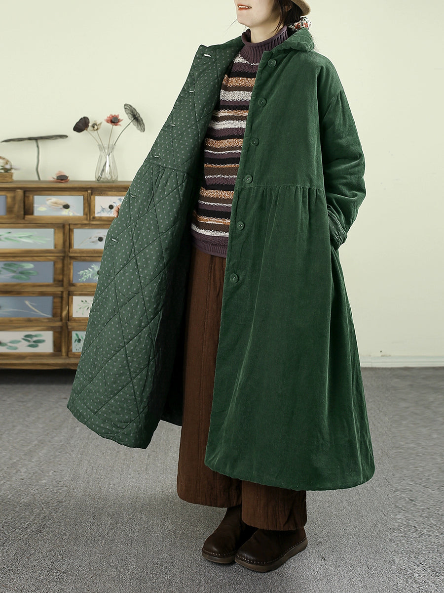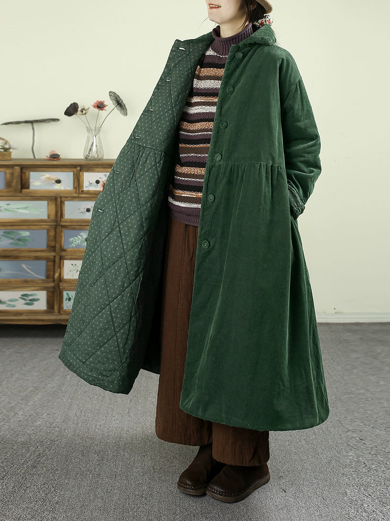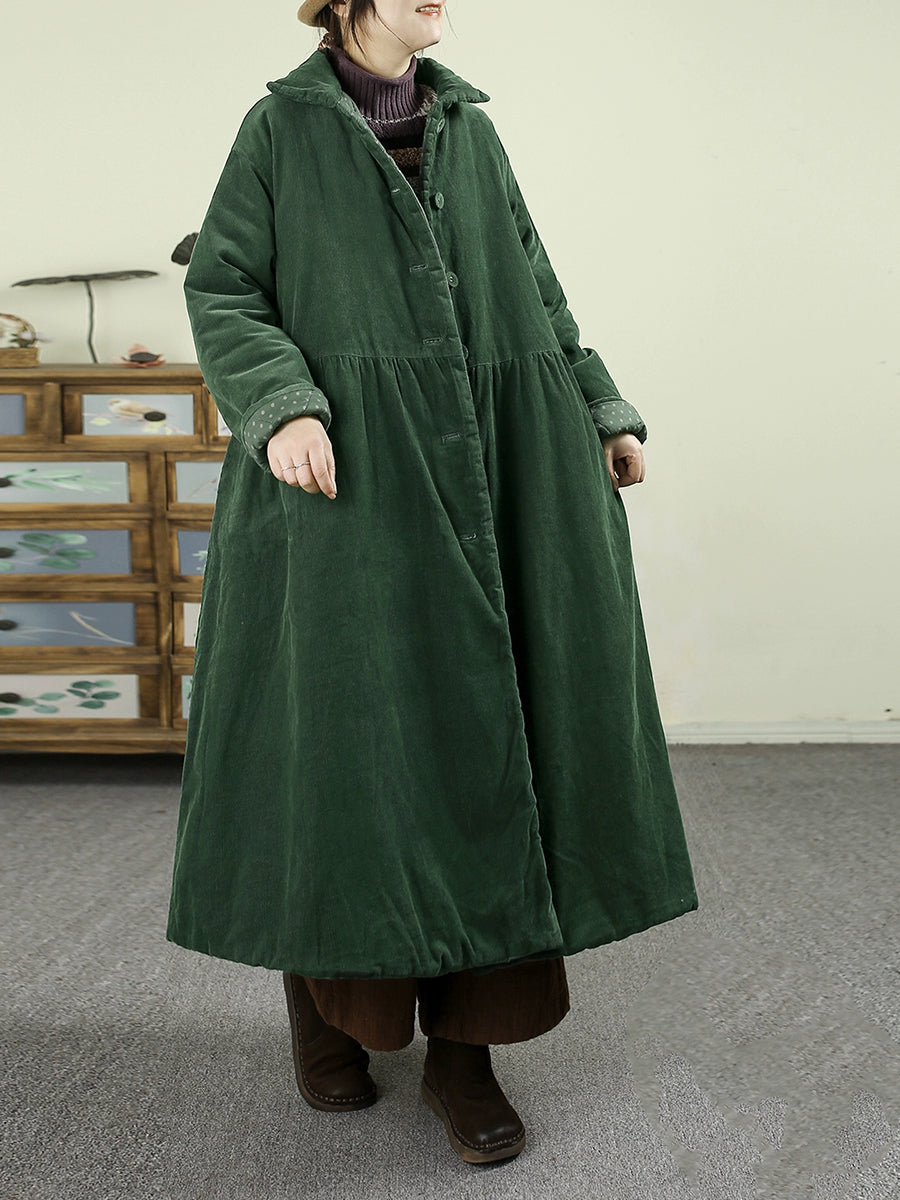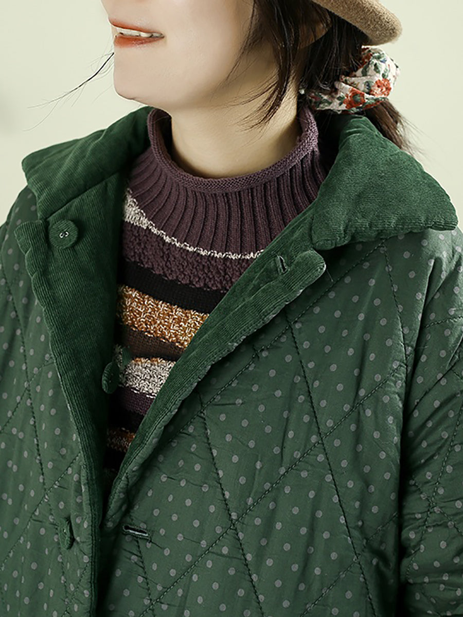 Dámský zimní čistě barevný oboustranný prošívaný manšestrový kabát